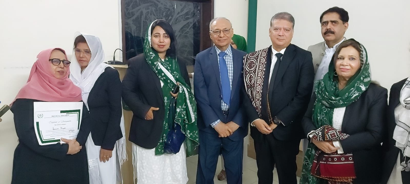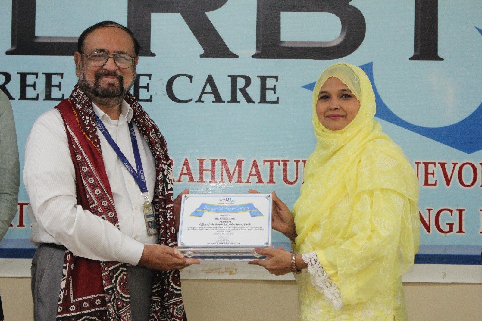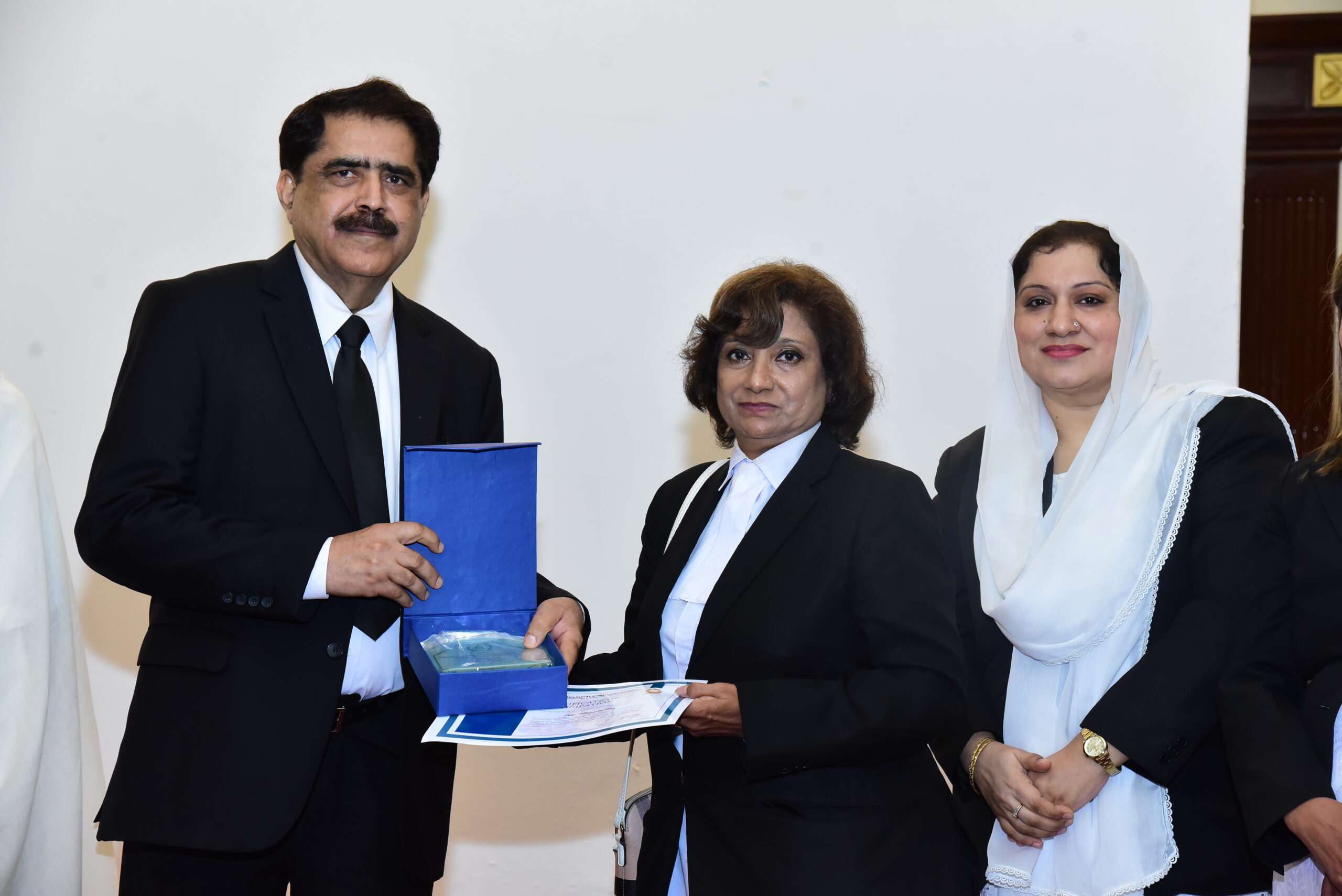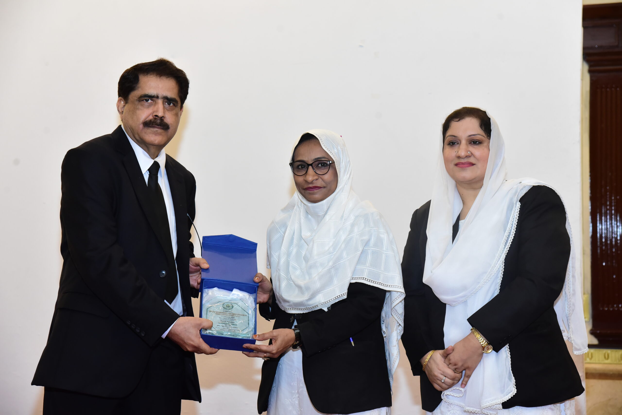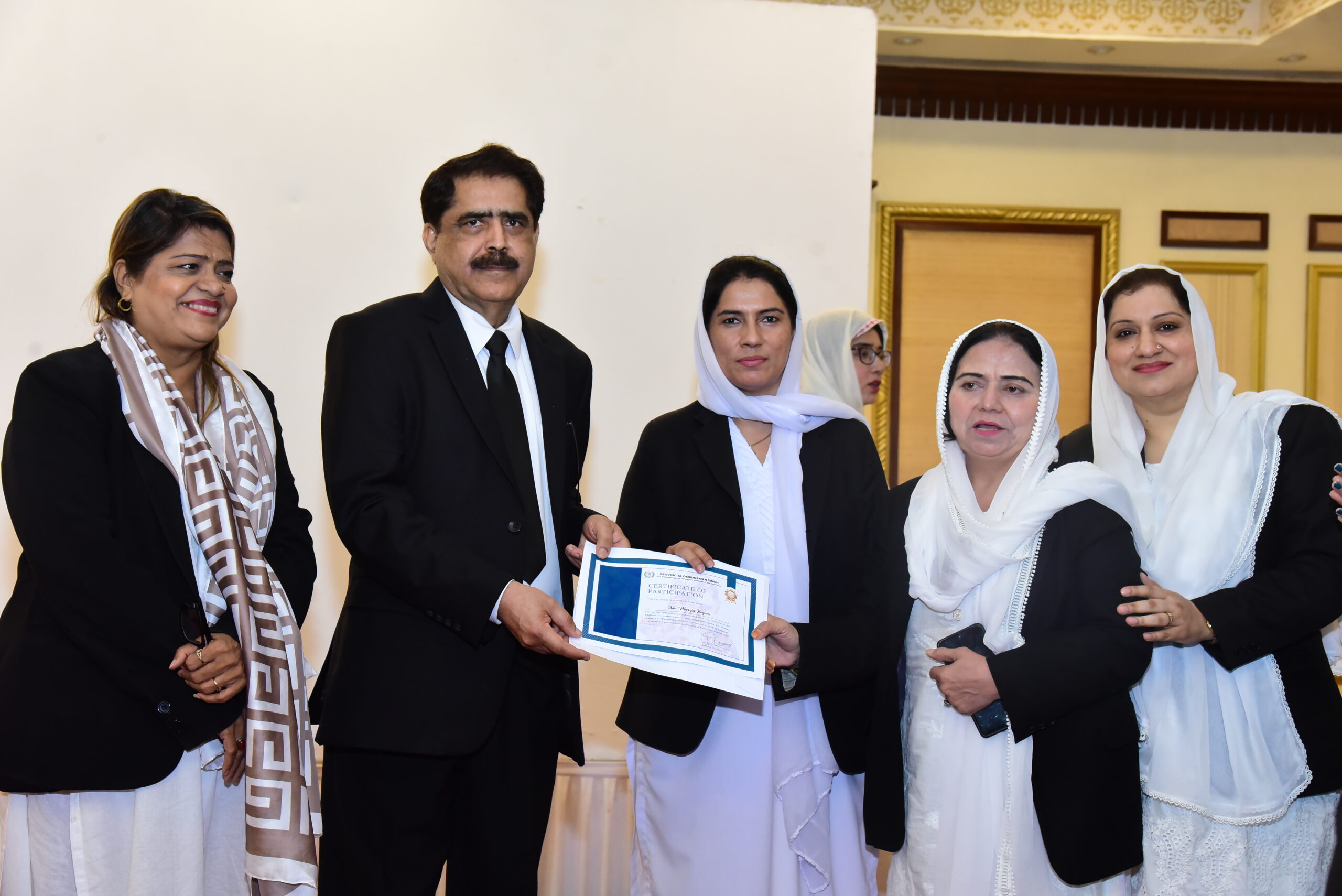 Mr. Manthar Ali Jatoi, (Consultant), Provincial Ombudsman (PHWWP) awarding Certificate to the Ms. Mumtaz Noorani, (Public Prosecutor) Provincial Ombudsman (PHWWP).