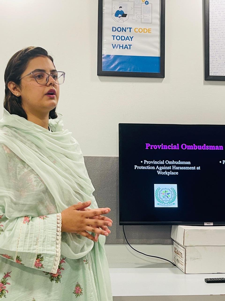 Ms. Shakira Tariq, Advocate High Court, presenting her thoughts on Harassment / Discrimination Faced by Female Lawyers at the workplace.