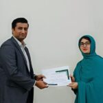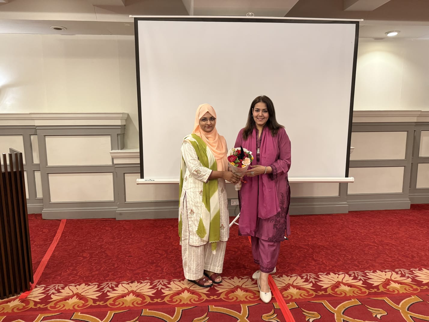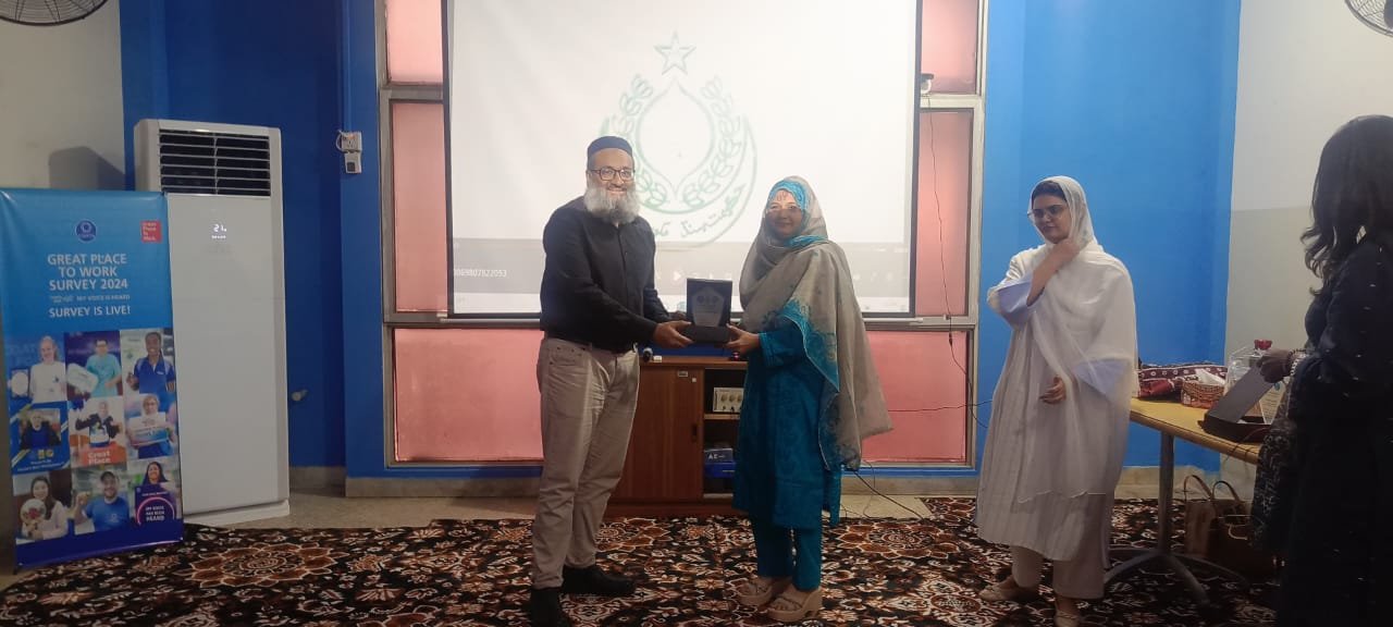 Mr. Manthar Ali Jatoi, (Consultant) awarding Souvenir to the Guest, Ms. Beenish Mansoor Ali, Assistant Manager HR, “Mamji Hospital, Karachi”.