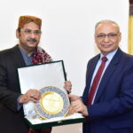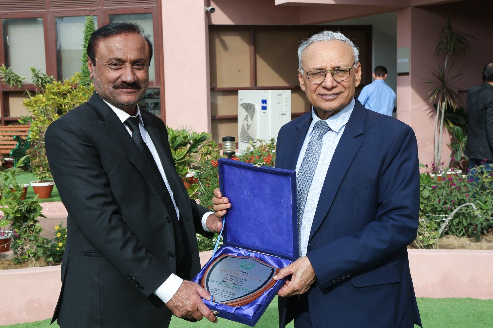 Mr. Manthar Ali Jatoi, (Consultant) presenting souvenir to the Chief Guest, Brig (R) Dr. Riaz ul Haque, Chief Executive, “Hamdard University Hospital”.