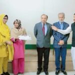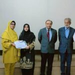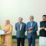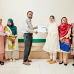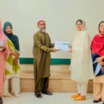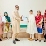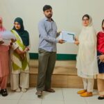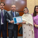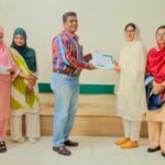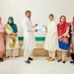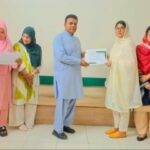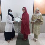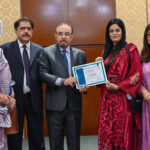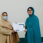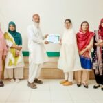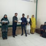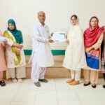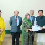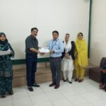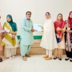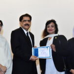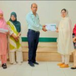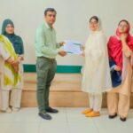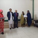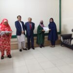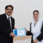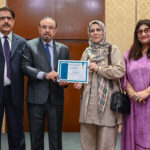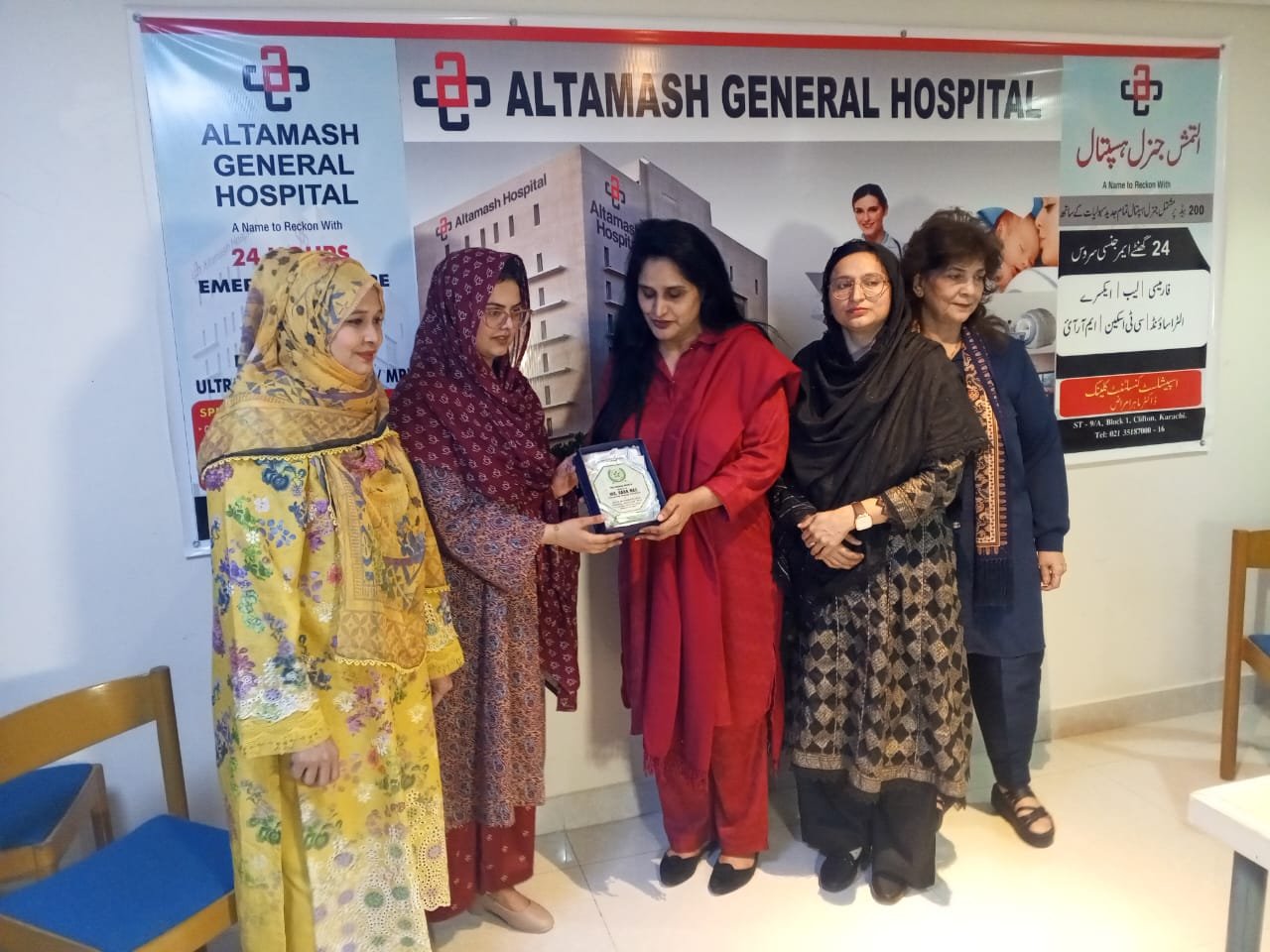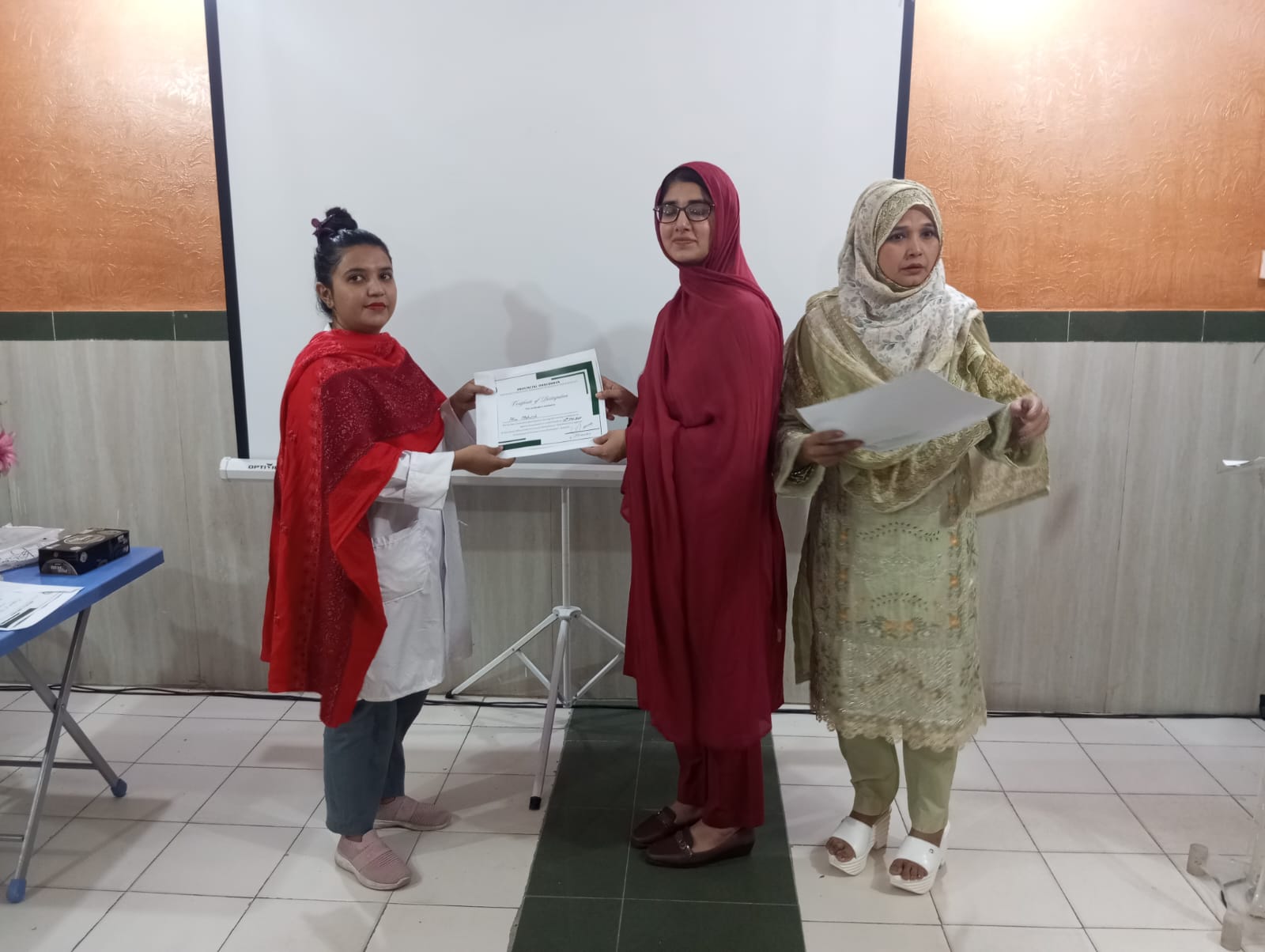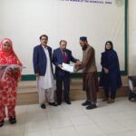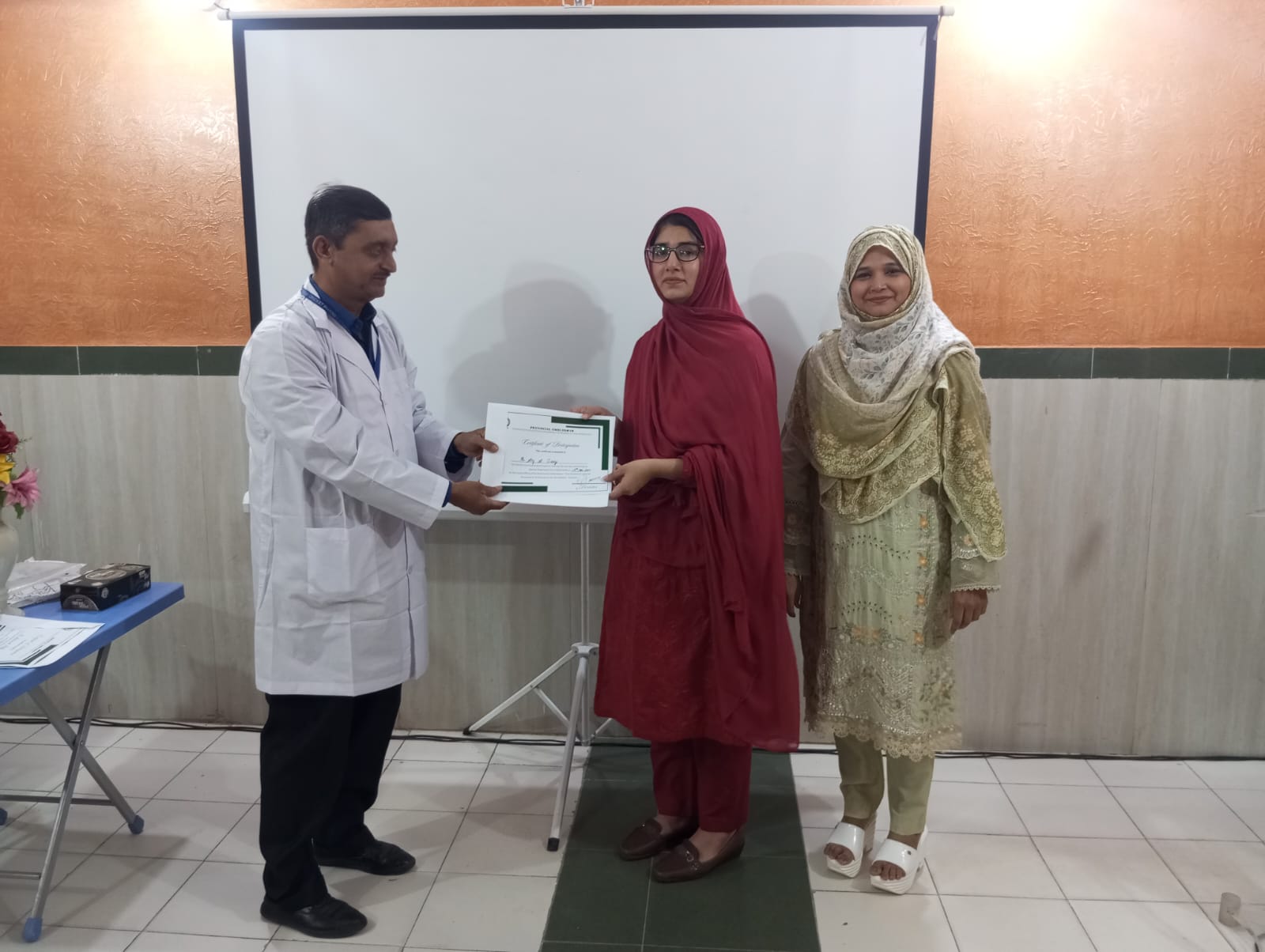 Ms. Zainab Shah, Assistant Director (Awareness) awarding Certificate to the Chief Guest, Major (R) Dr. Irfanullah Khoso, (Administrator),”Goolbanoo & Dr. Burjor Anklesaria Nursing Home.”