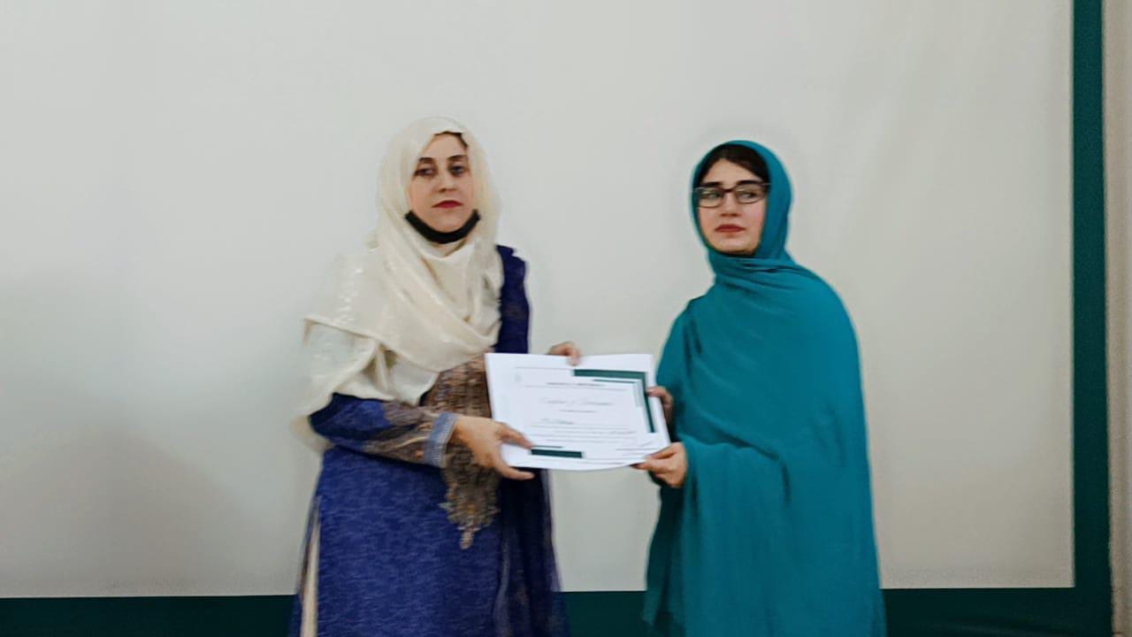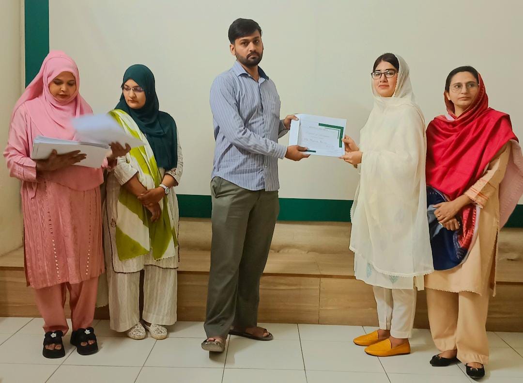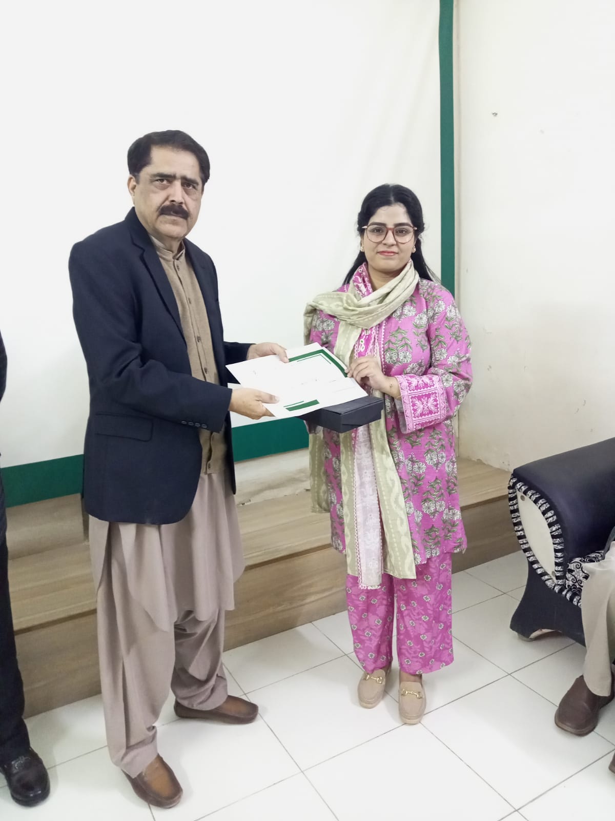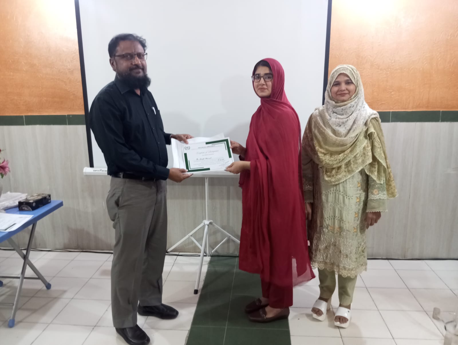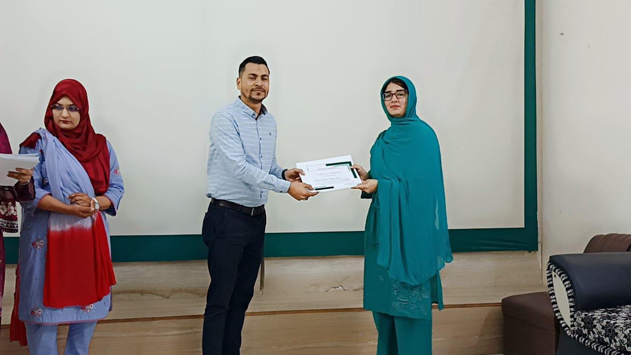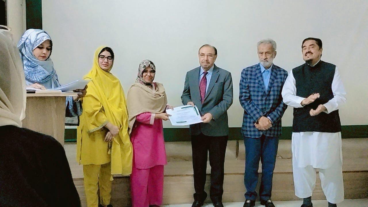 Ms. Zainab Shah, Assistant Director awarding Souvenir & Certificate to the participants.