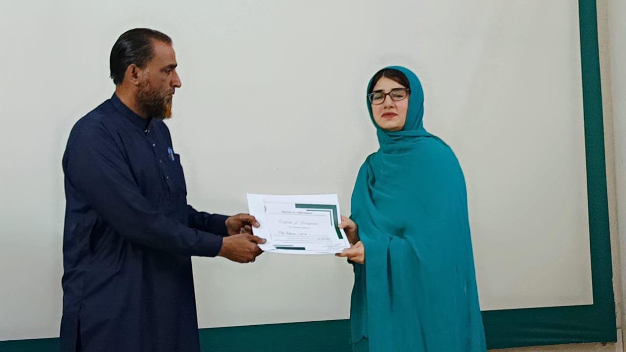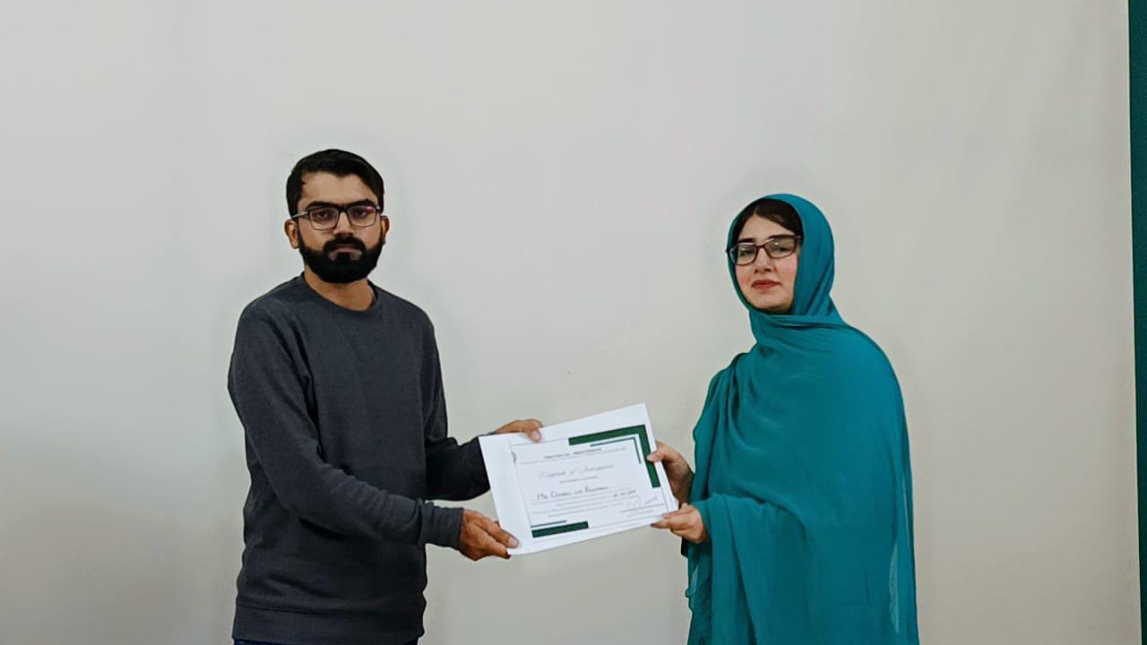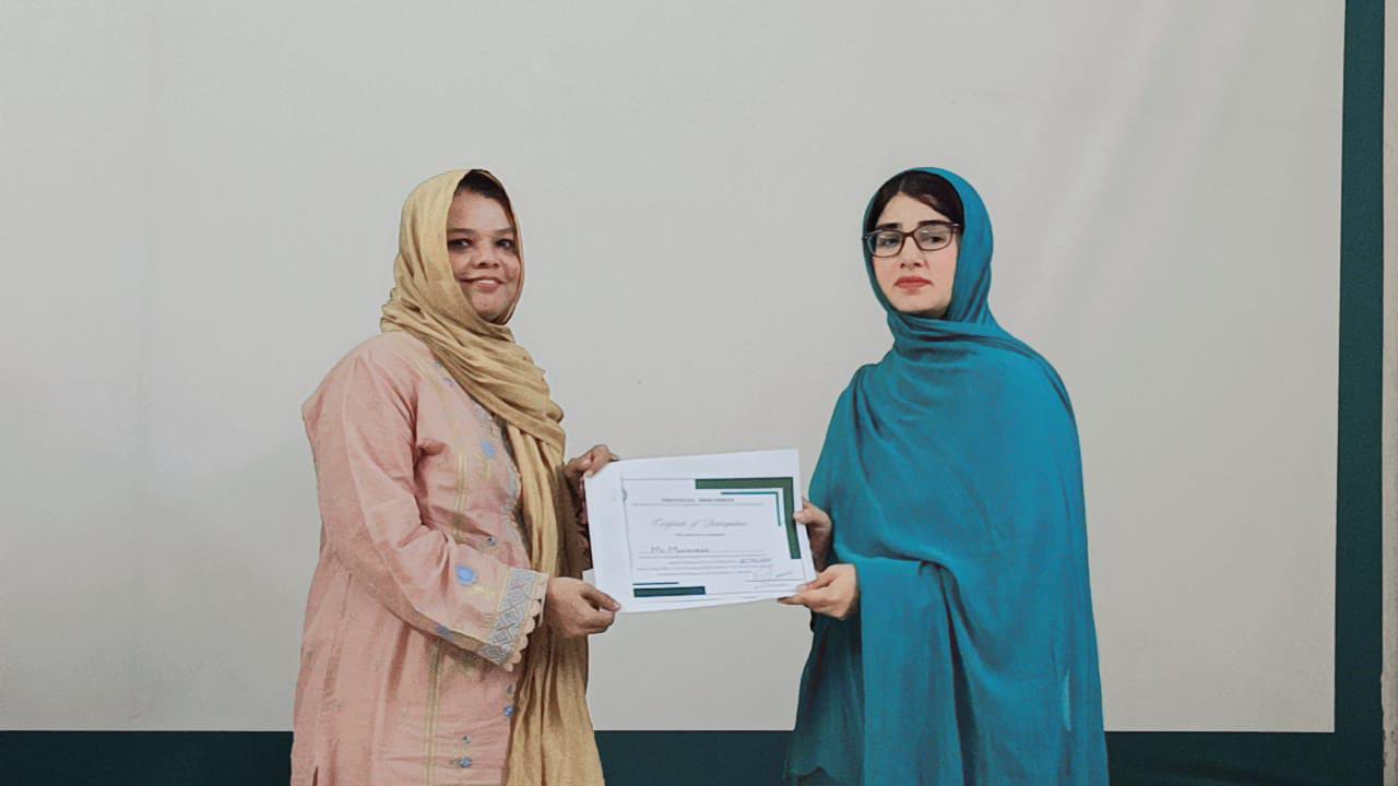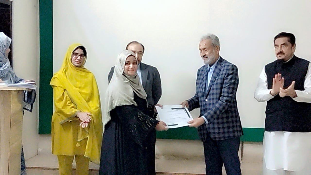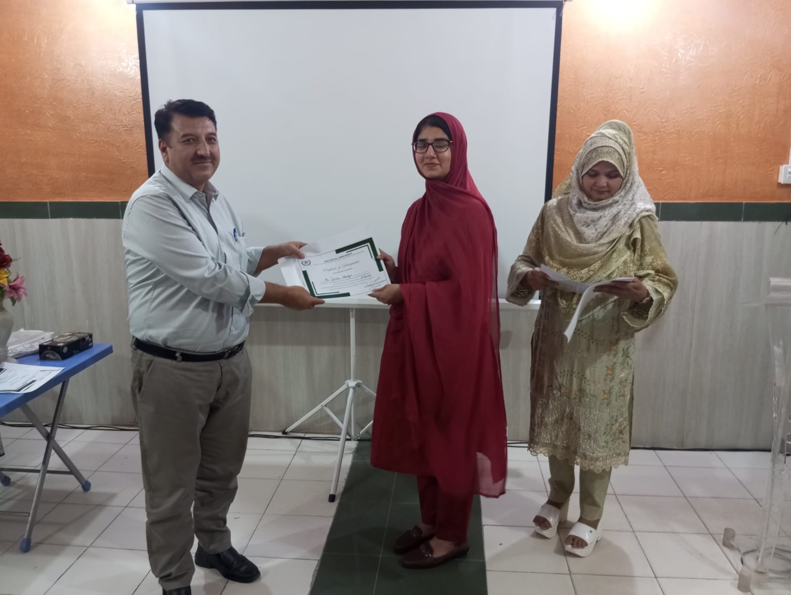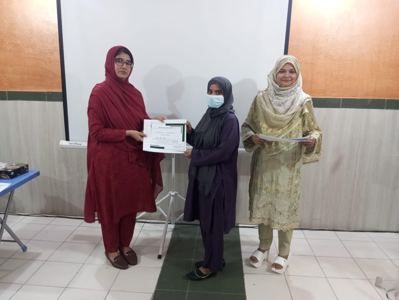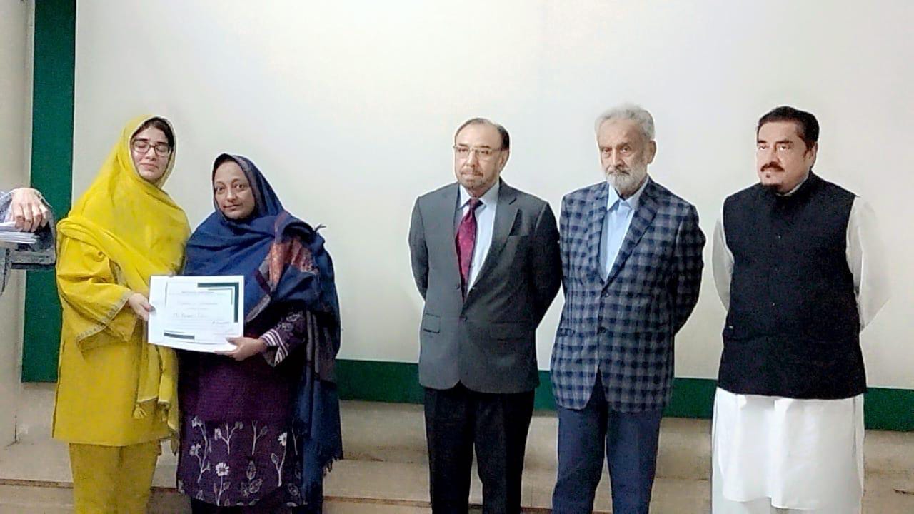 Ms. Zainab Shah, Assistant Director awarding Souvenir & Certificate to the participants.