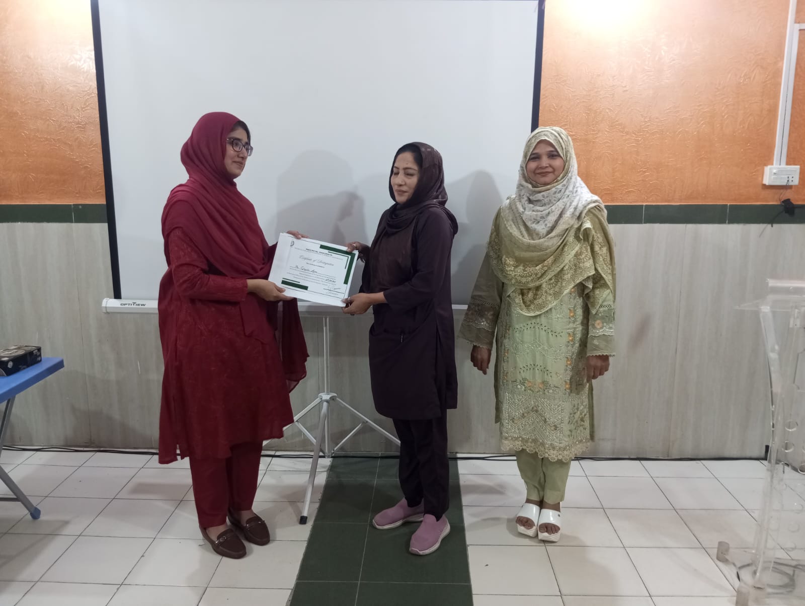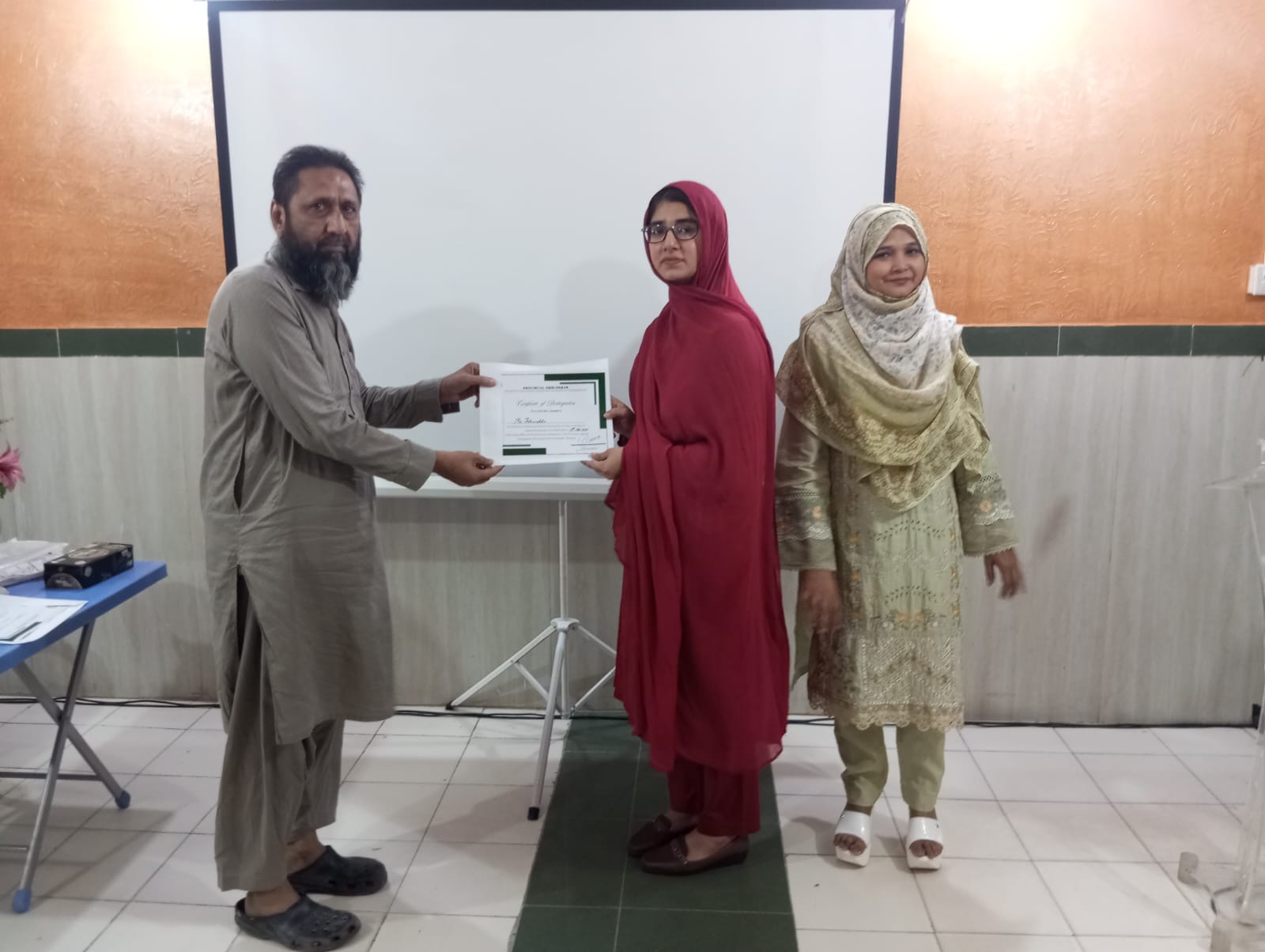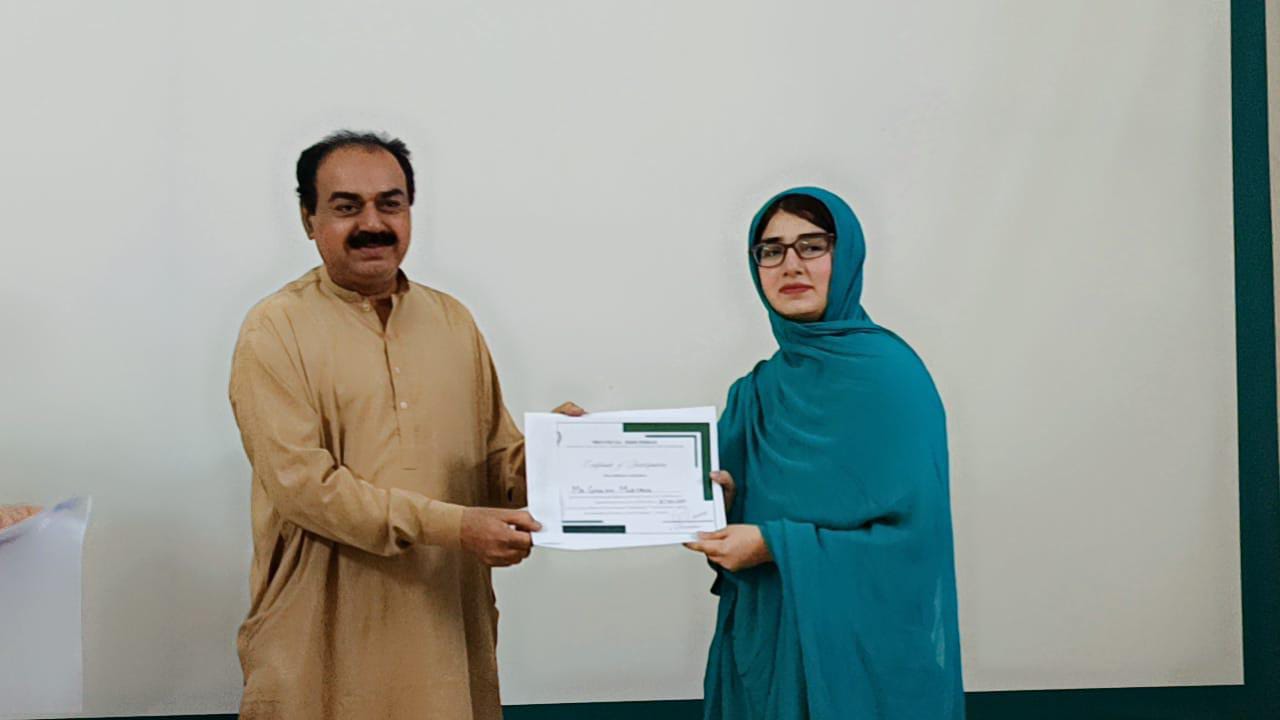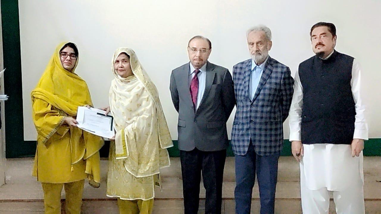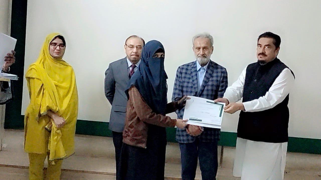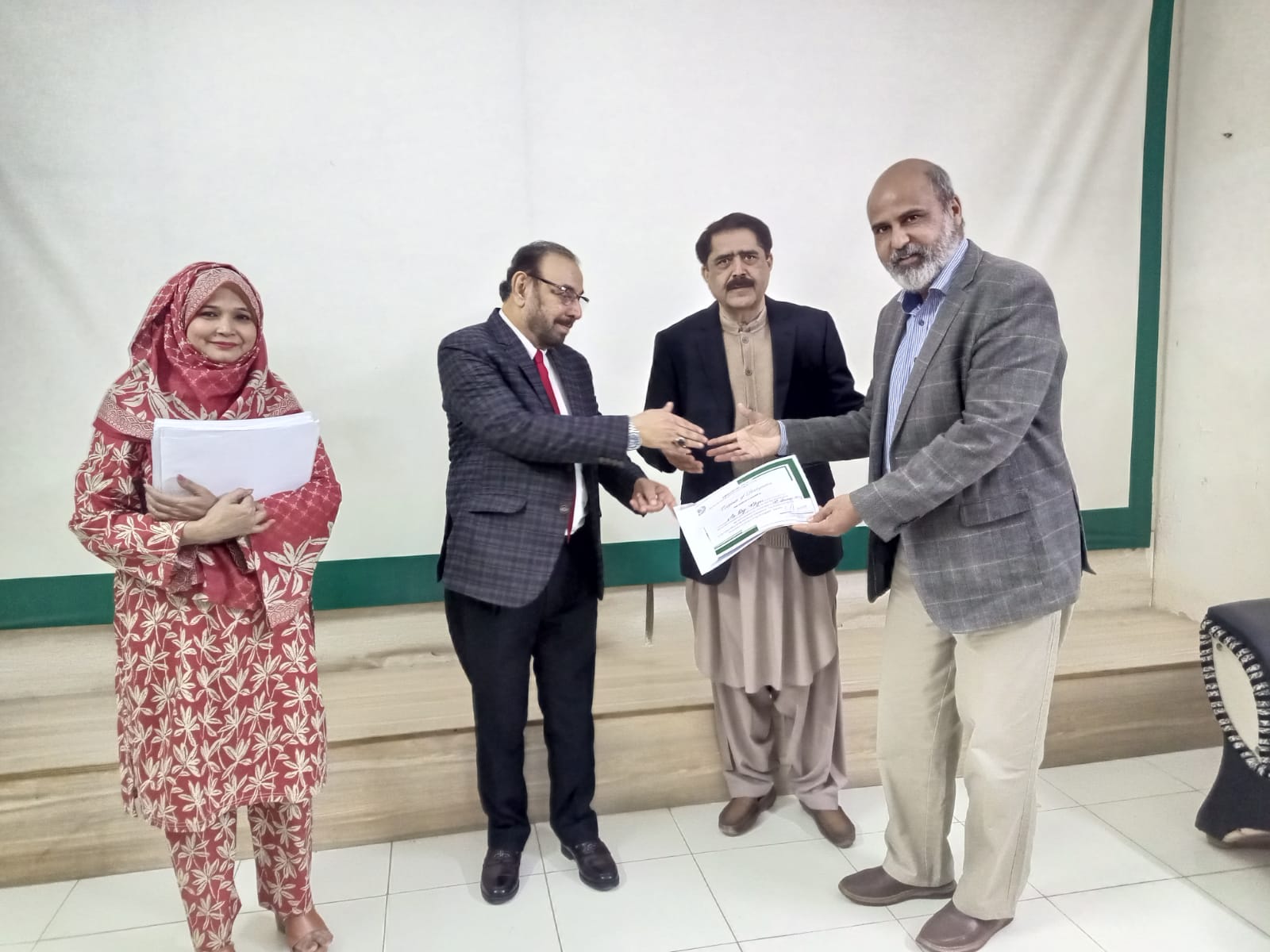 Ms. Zainab Shah, Assistant Director awarding Souvenir & Certificate to the participants.