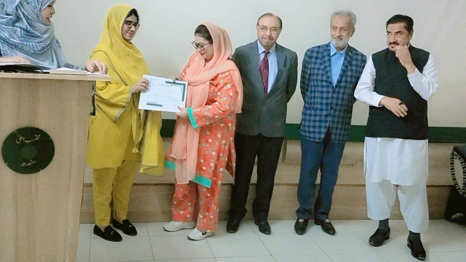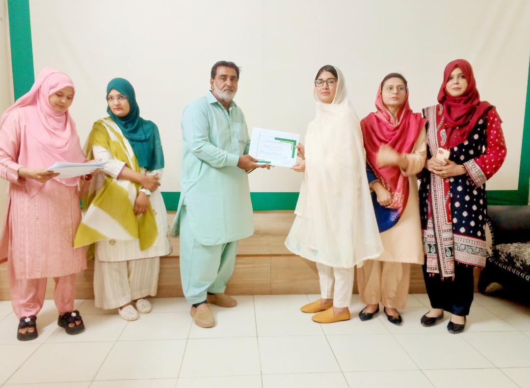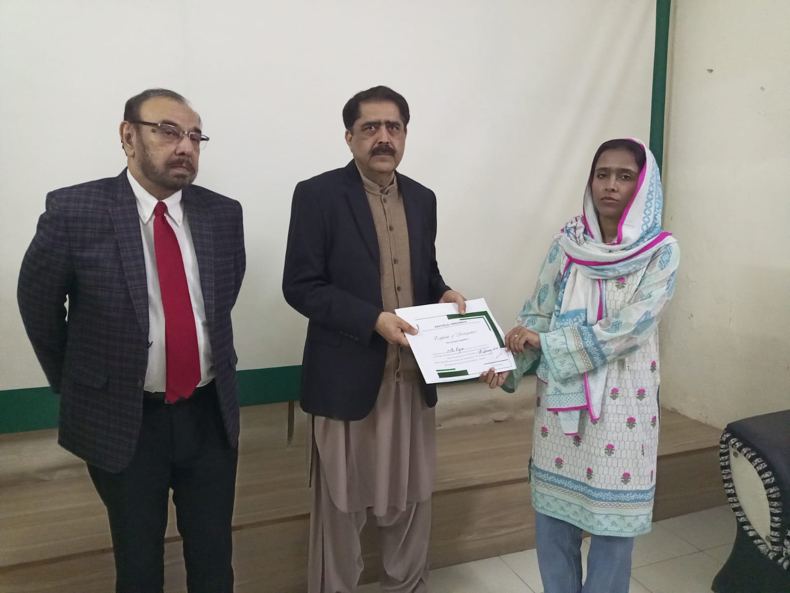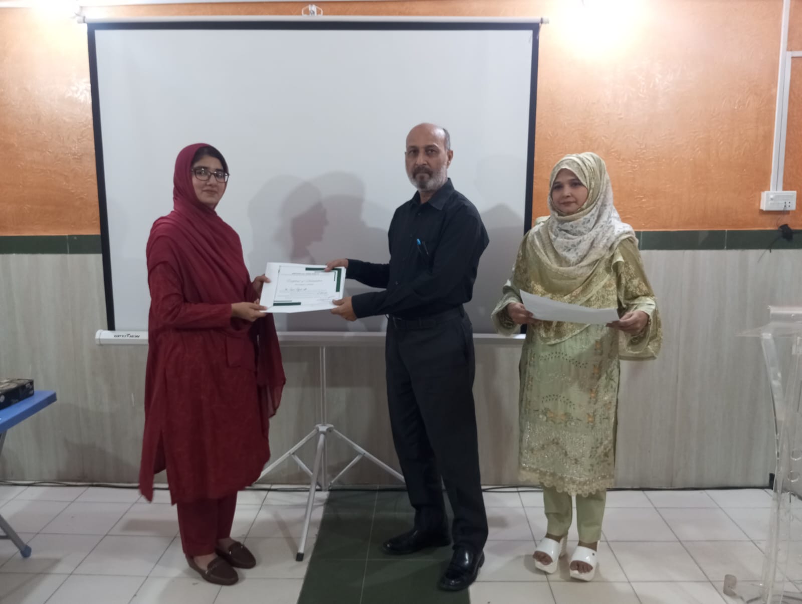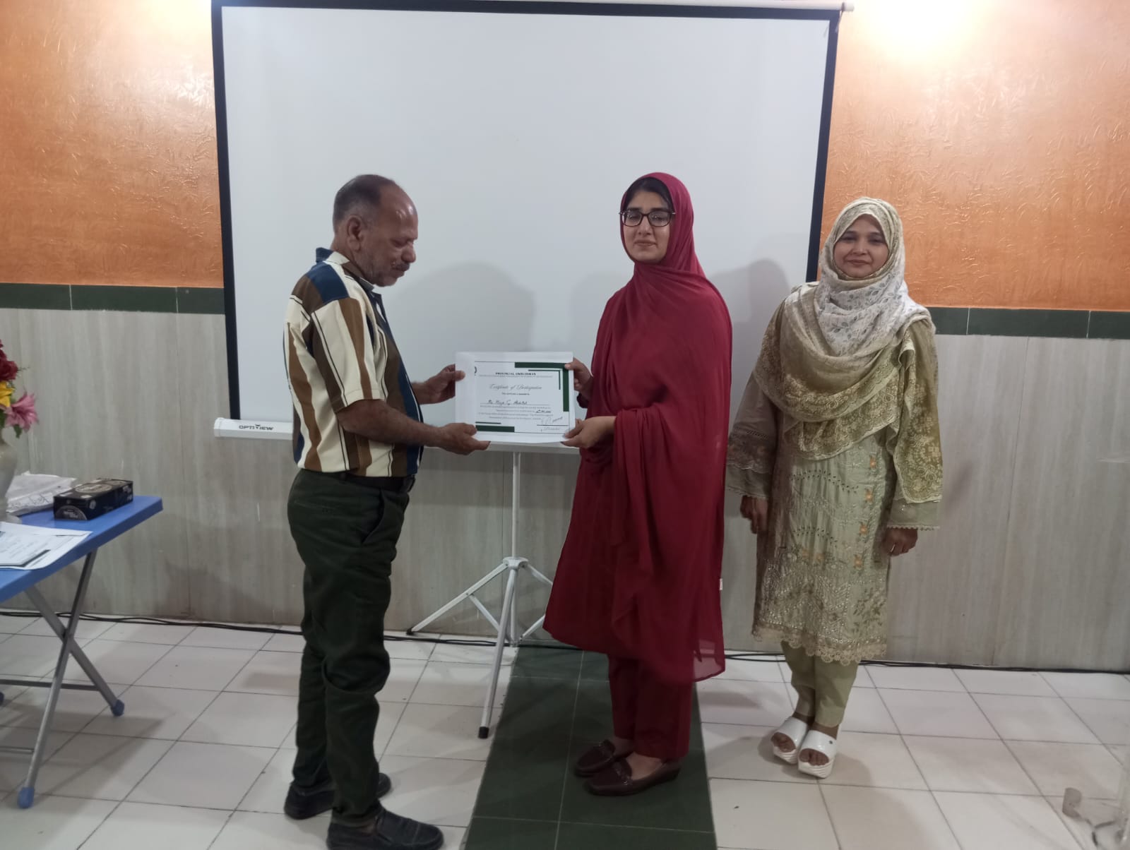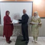 Ms. Zainab Shah, Assistant Director awarding Souvenir & Certificate to the participants.