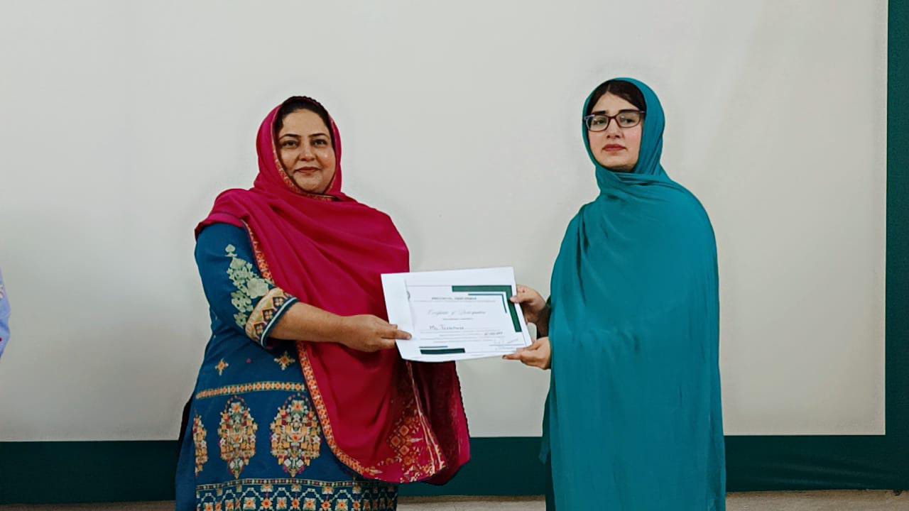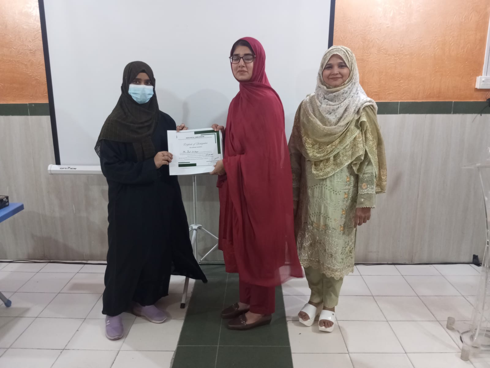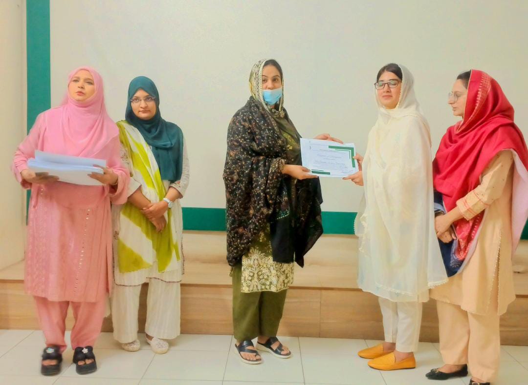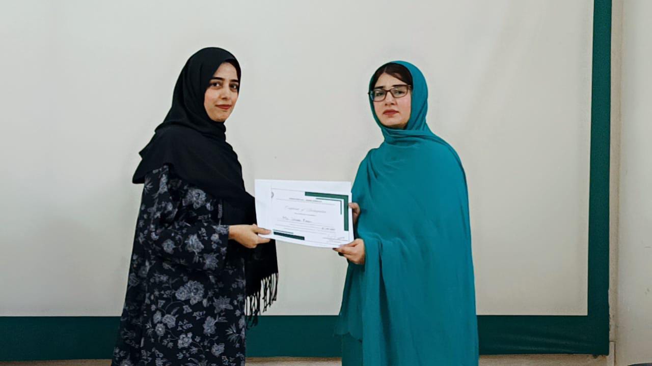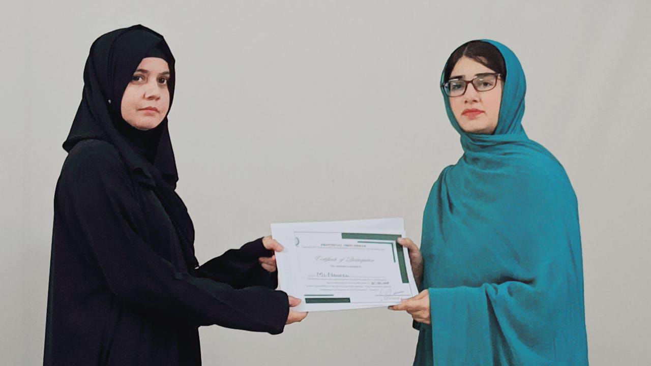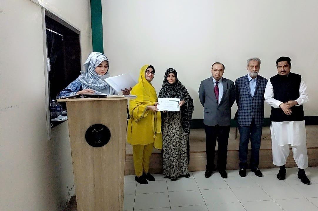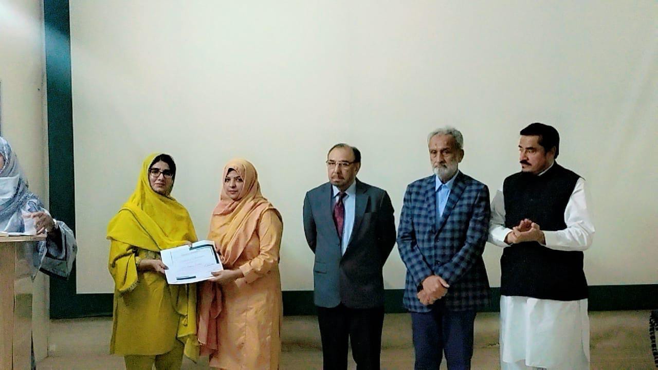Ms. Zainab Shah, Assistant Director awarding Souvenir & Certificate to the participants.