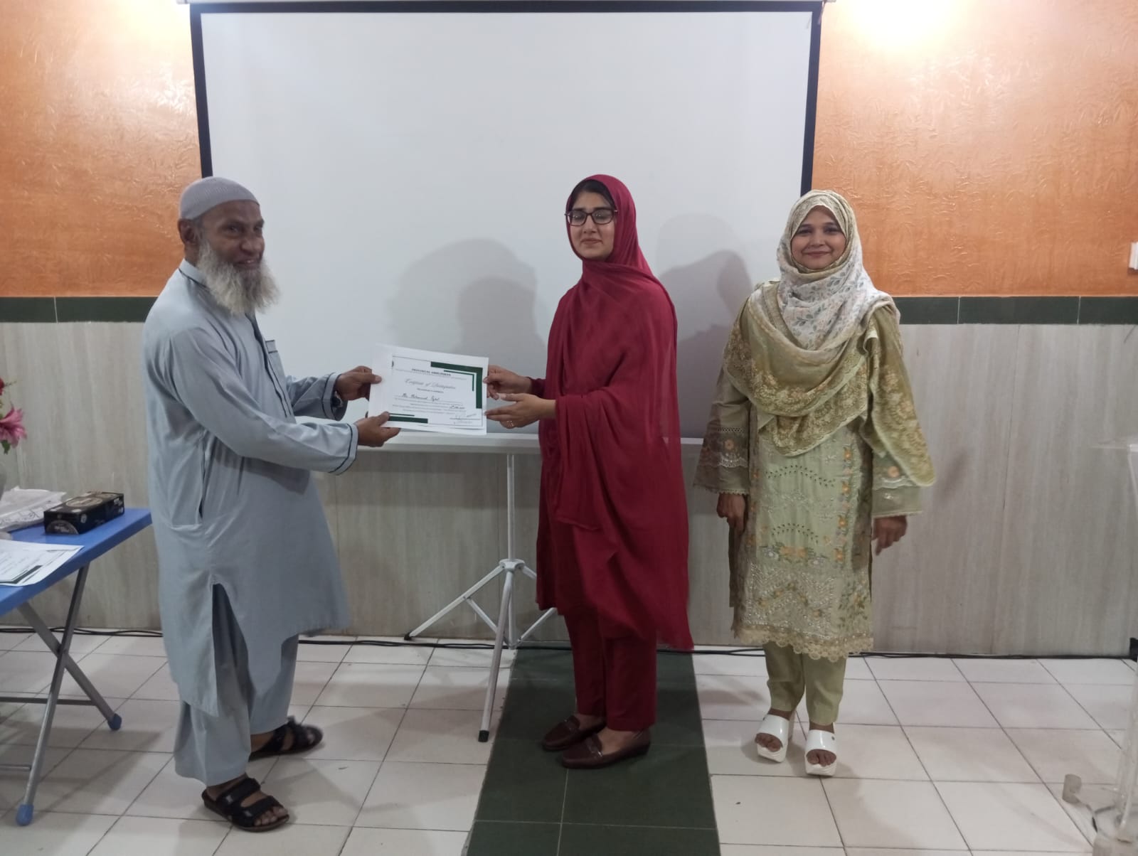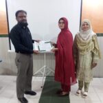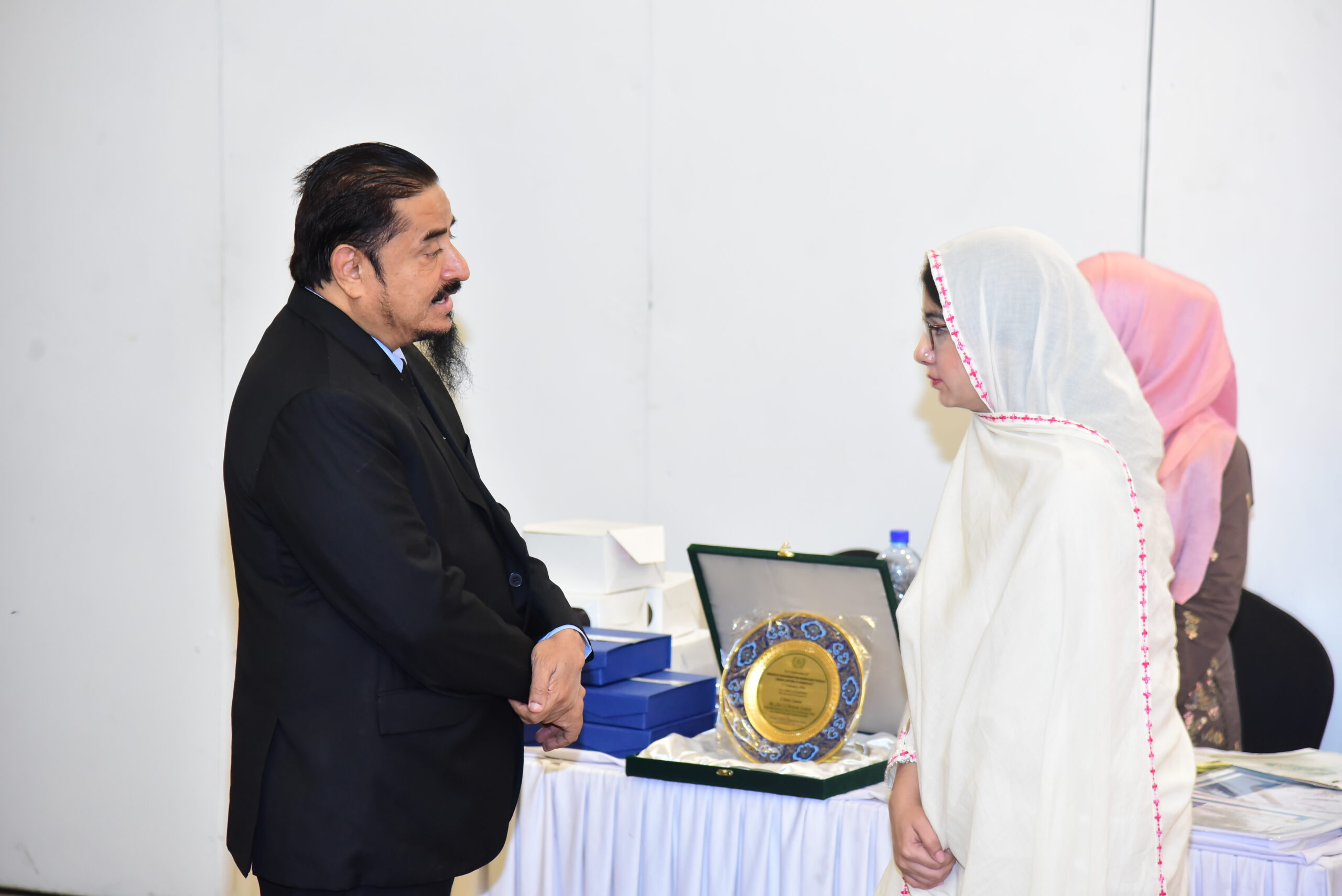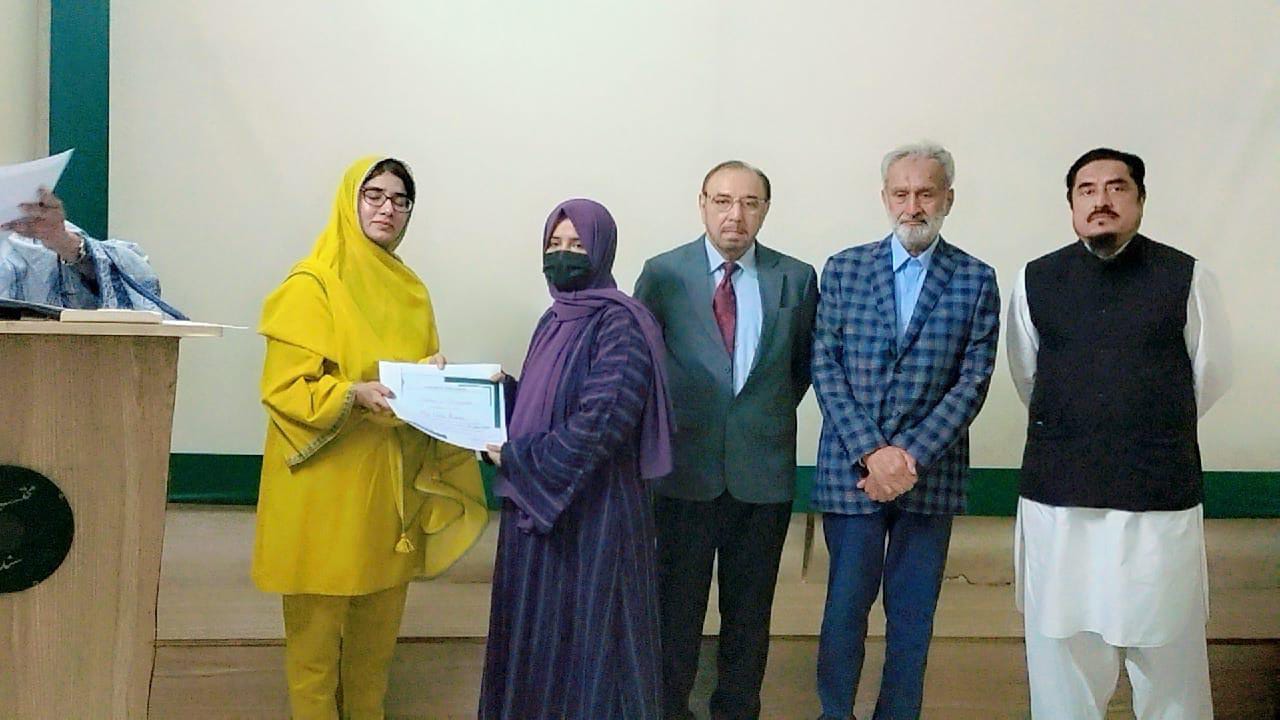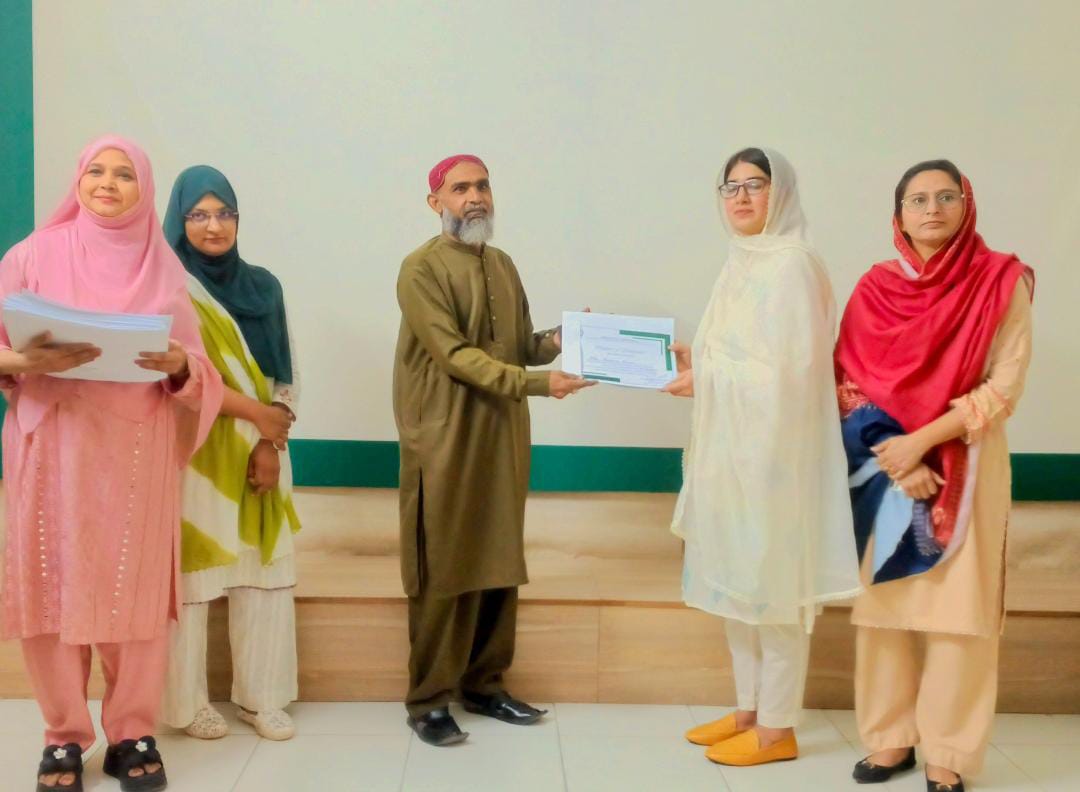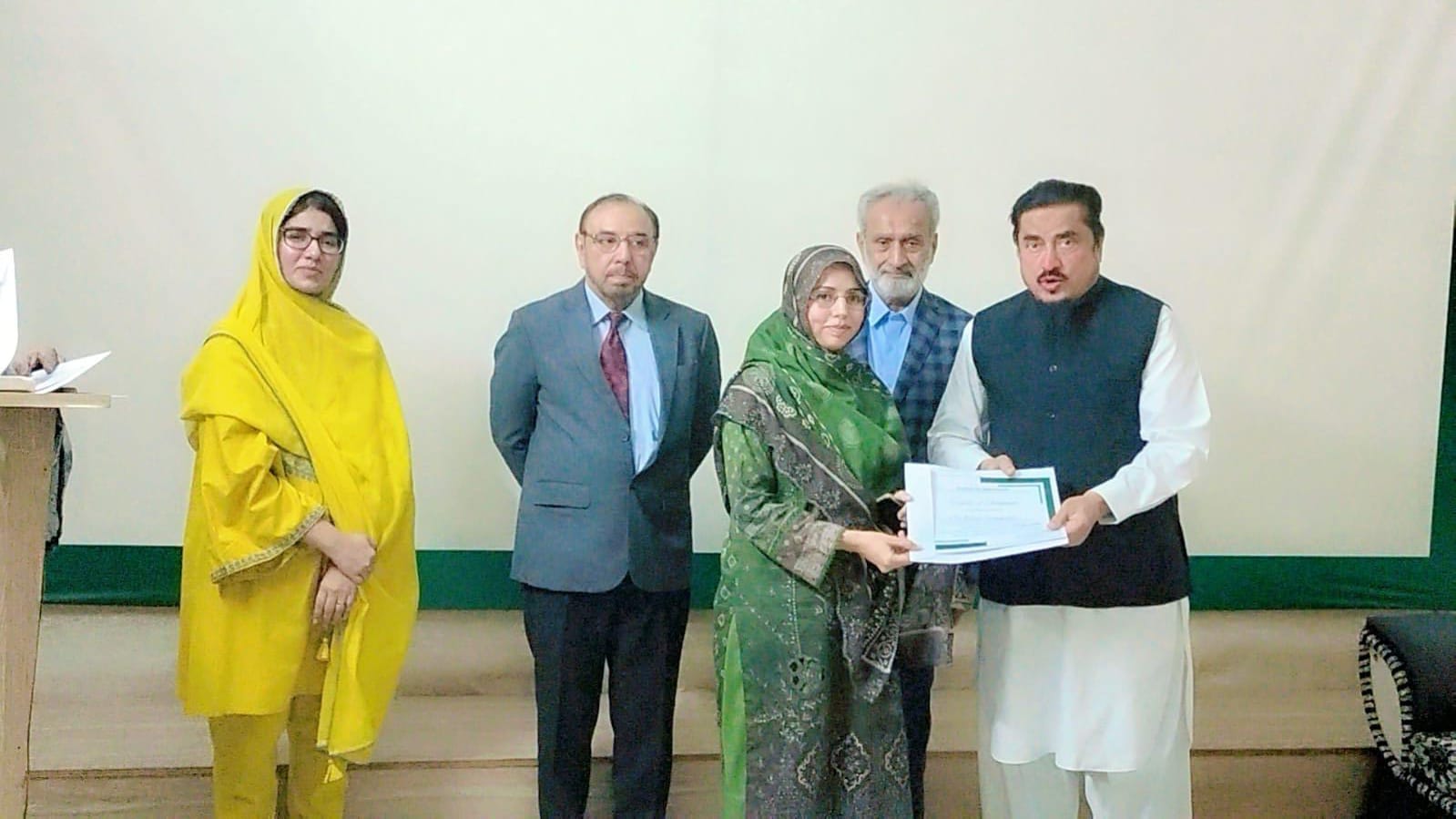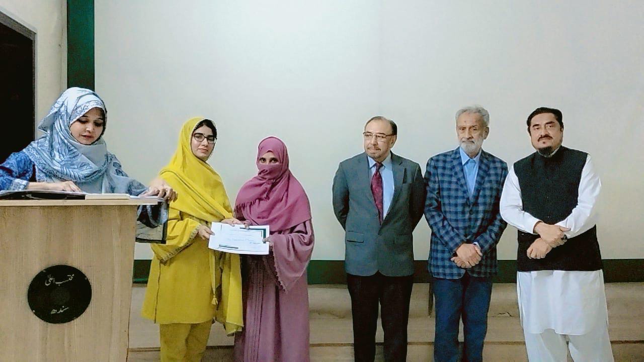 Ms. Zainab Shah, Assistant Director awarding Souvenir & Certificate to the participants.
