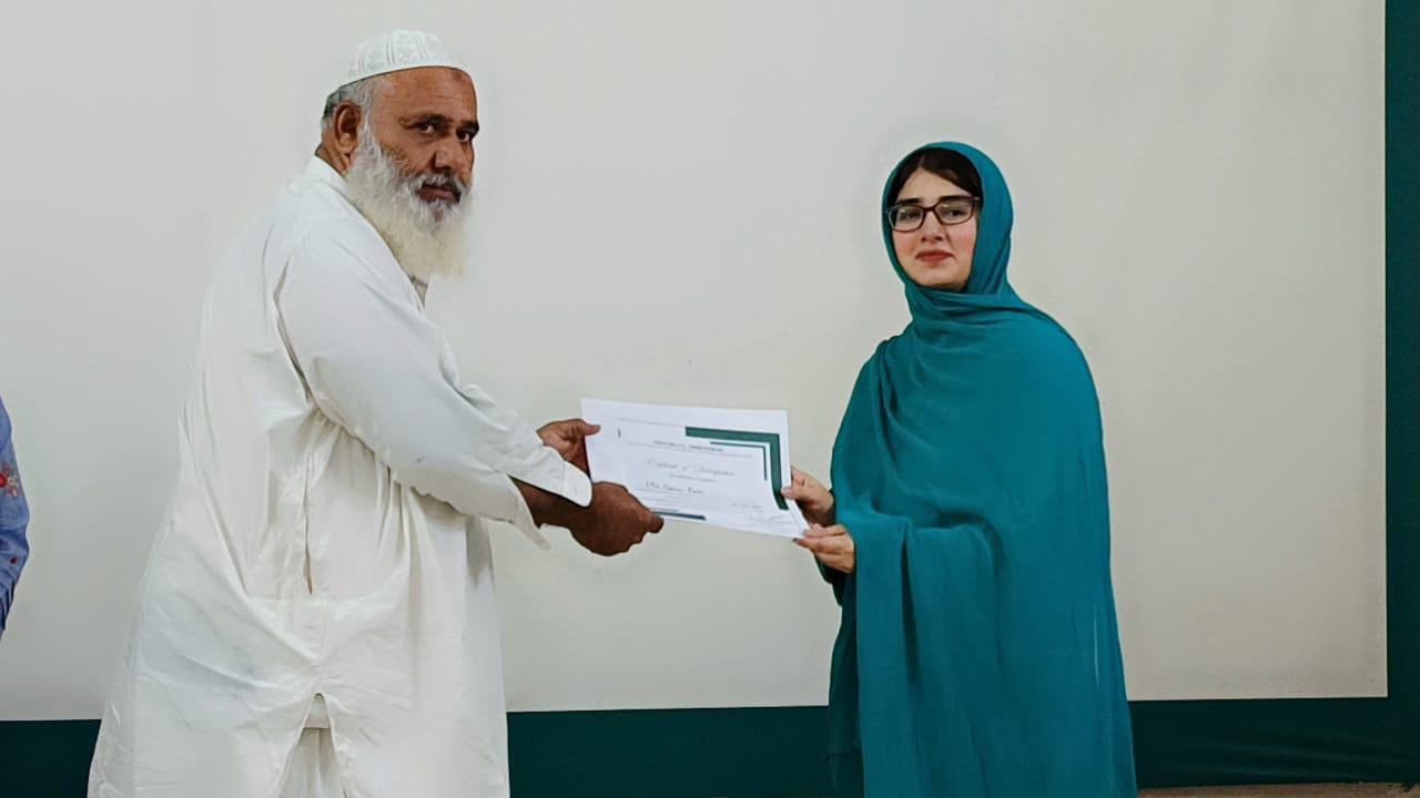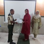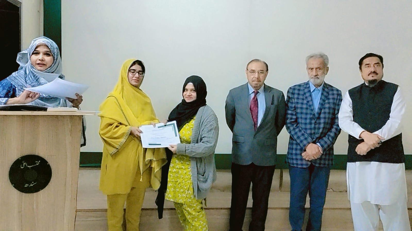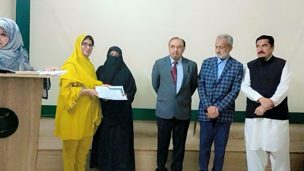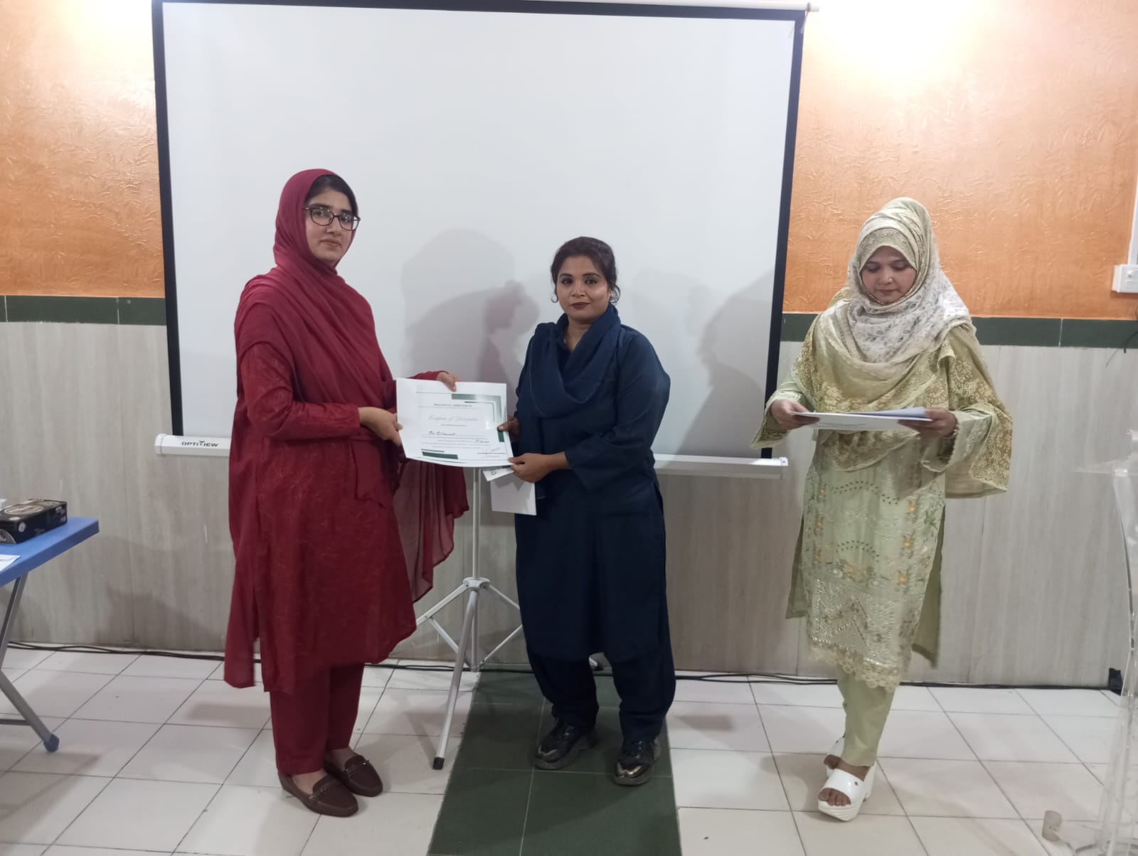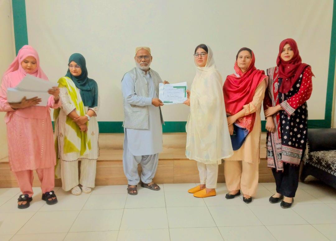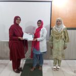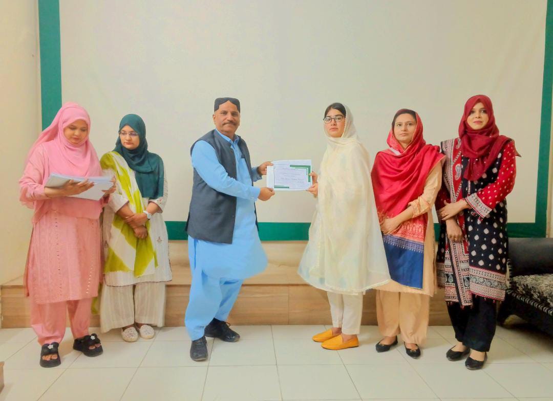 Ms. Zainab Shah, Assistant Director awarding Souvenir & Certificate to the participants.