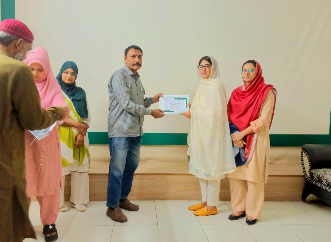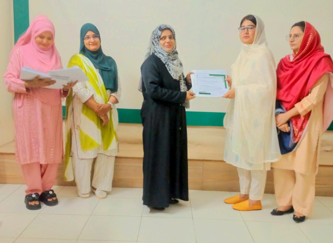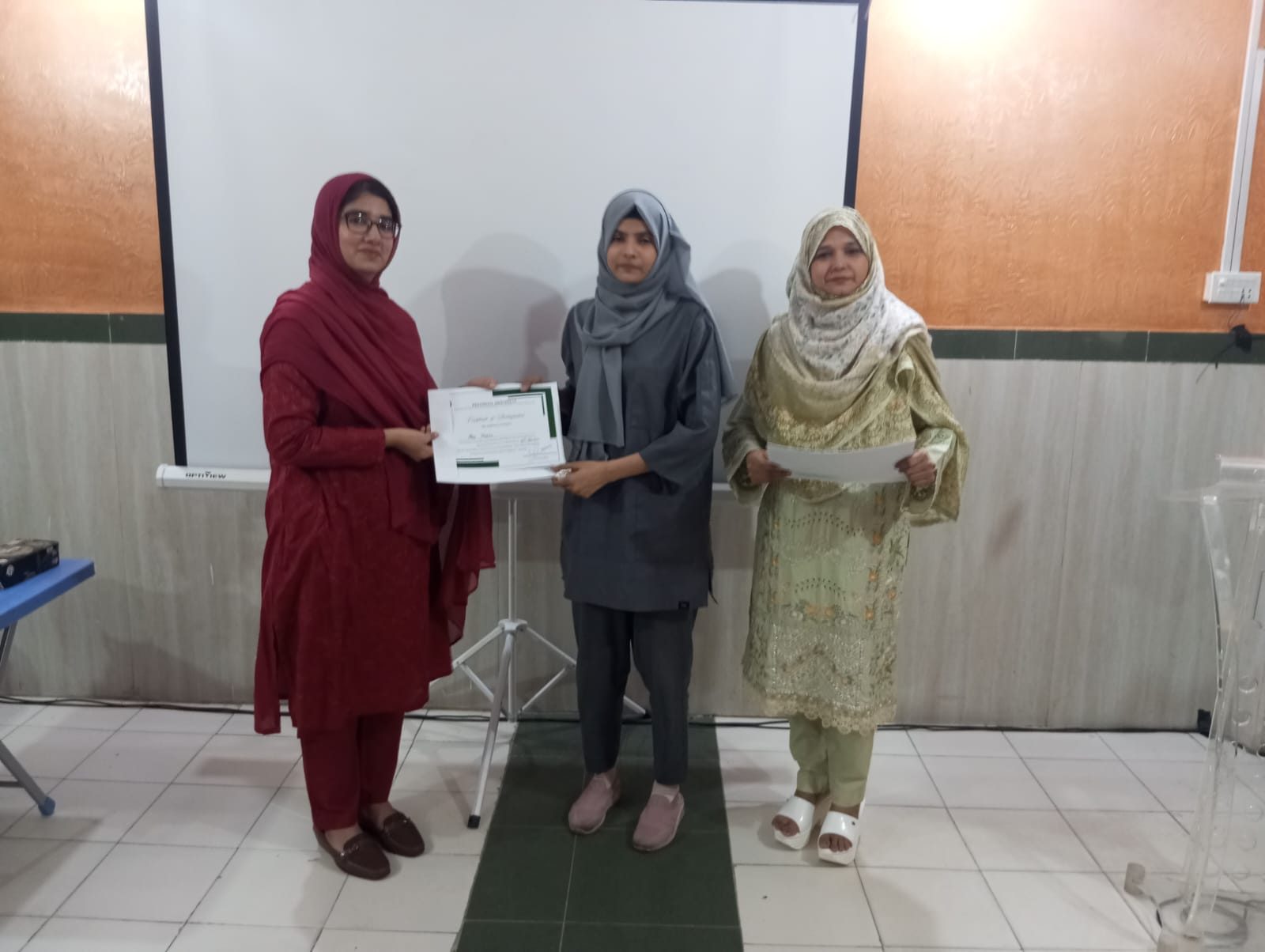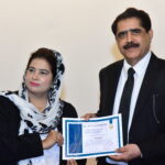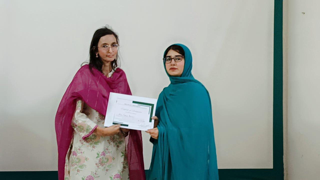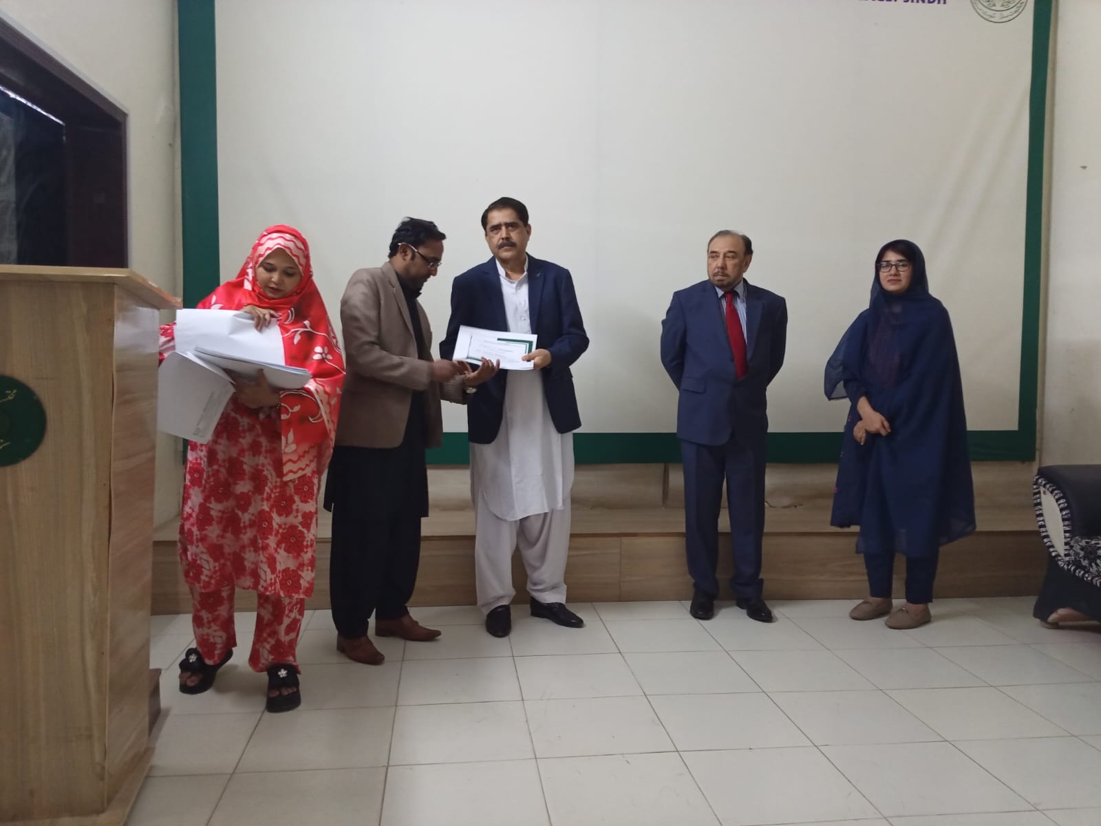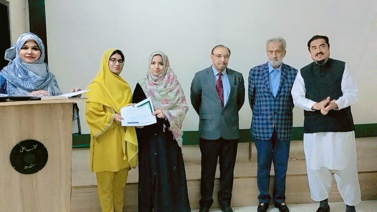 Ms. Zainab Shah, Assistant Director awarding Souvenir & Certificate to the participants.