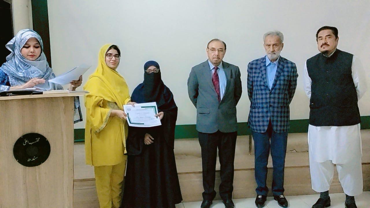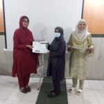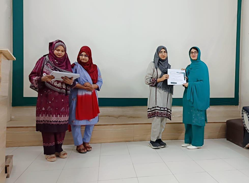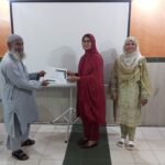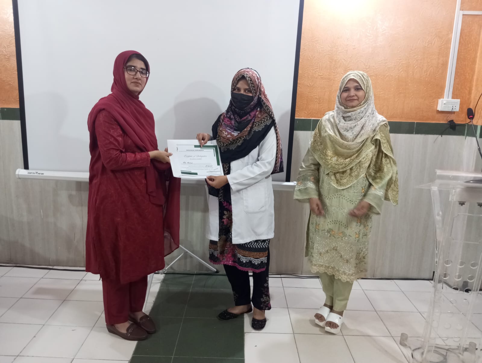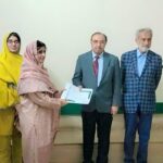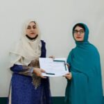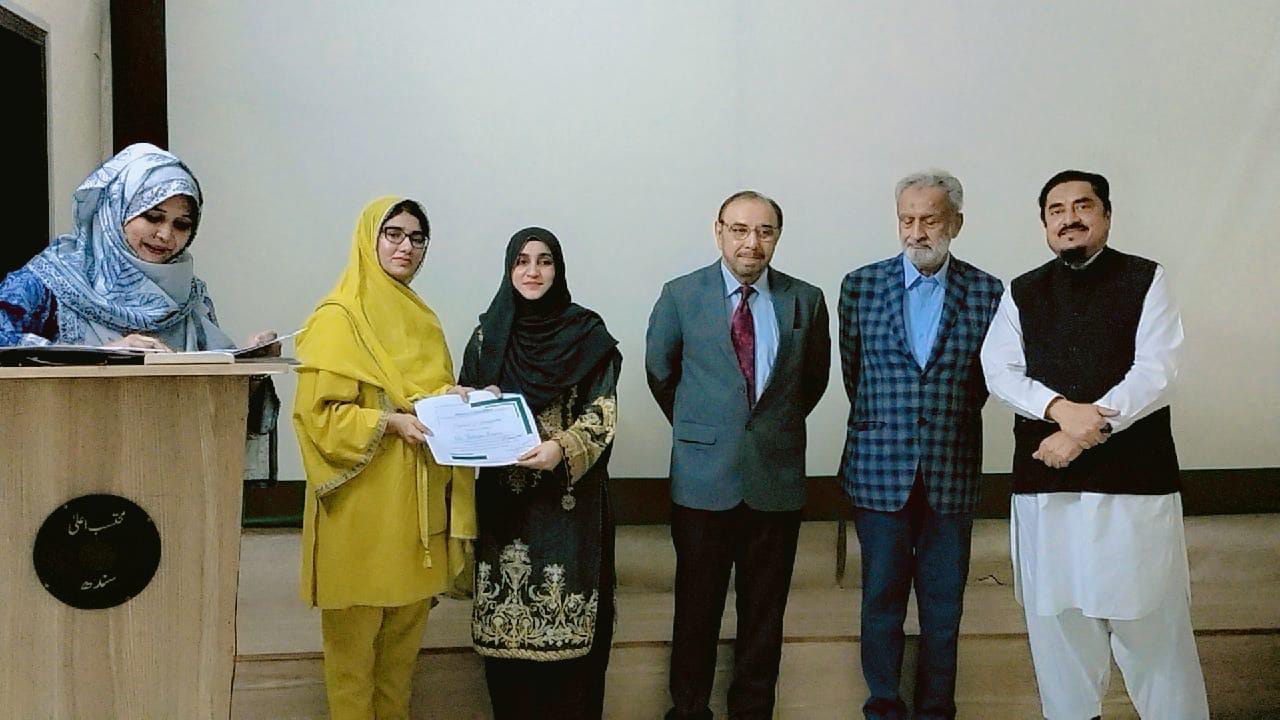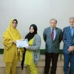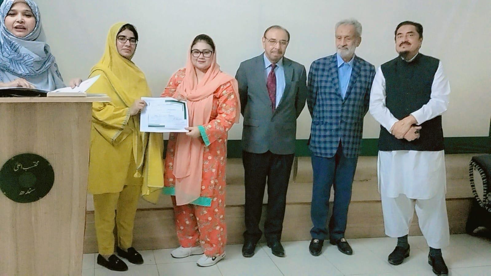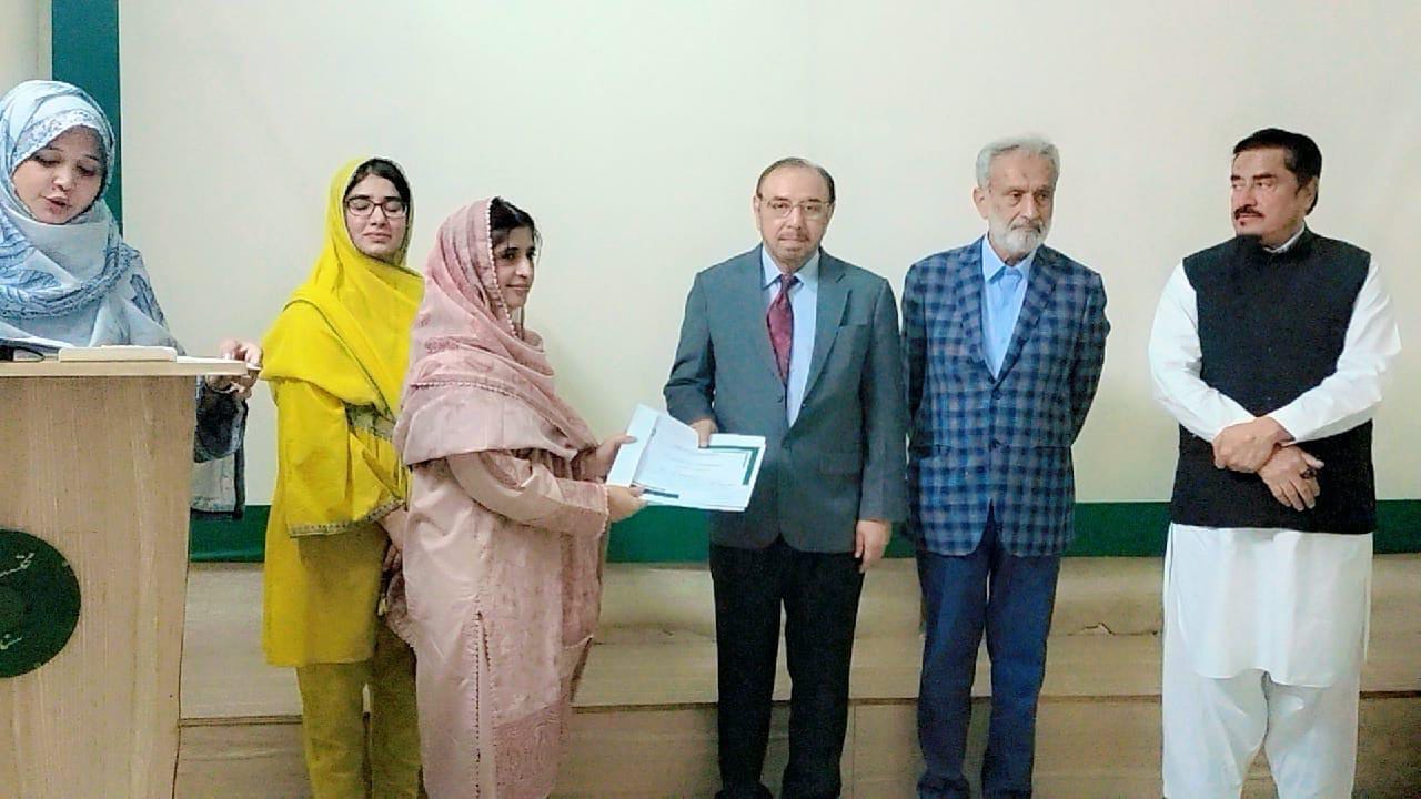 Ms. Zainab Shah, Assistant Director awarding Souvenir & Certificate to the participants.
