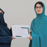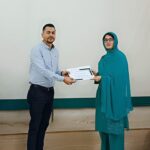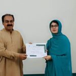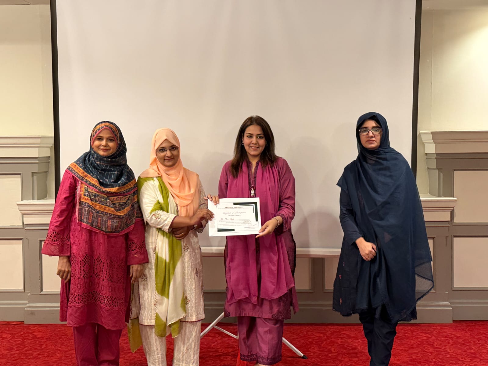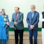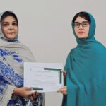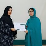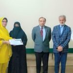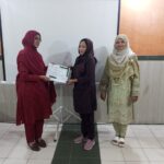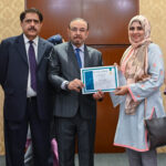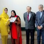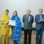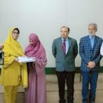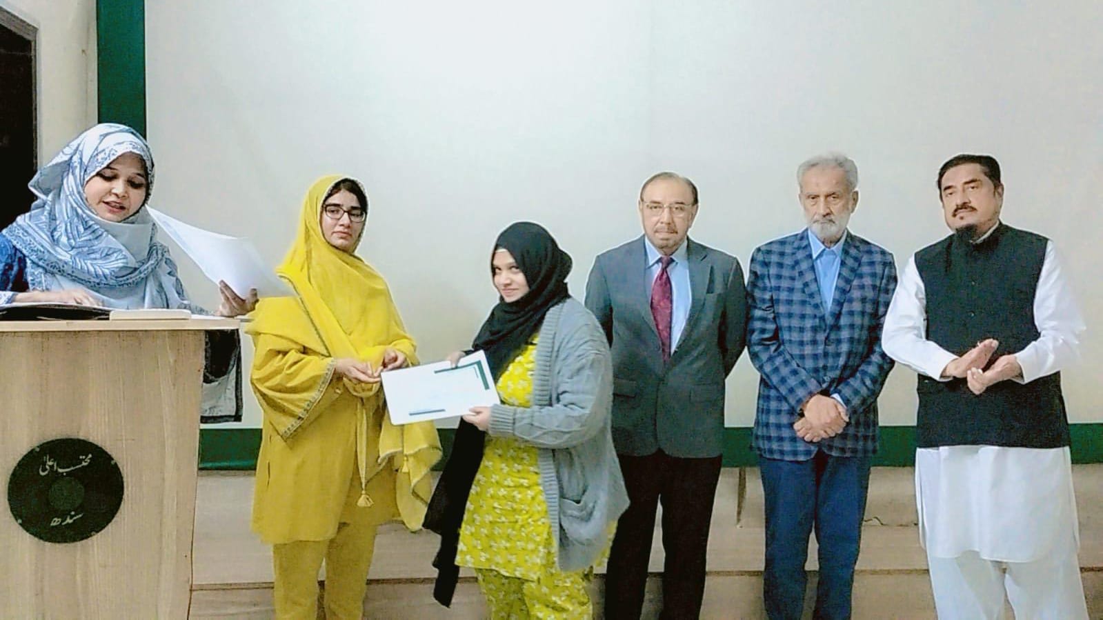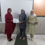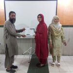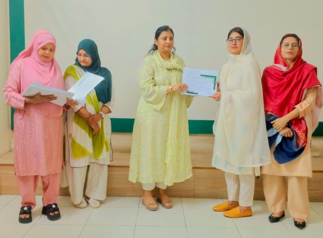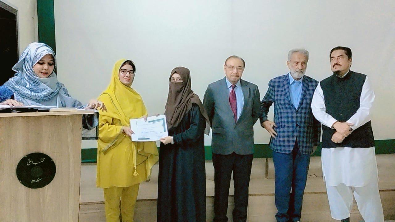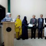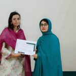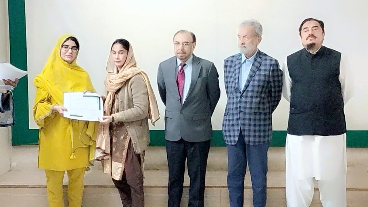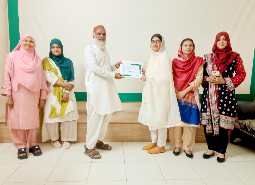 Ms. Zainab Shah, Assistant Director awarding Souvenir & Certificate to the participants.
