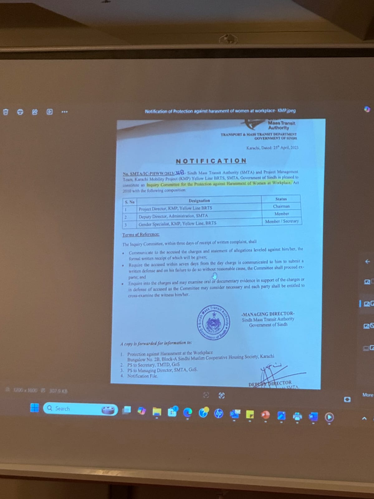 The Office of the Provincial Ombudsman for the Protection against Harassment of Women at the Workplace, Sindh organized a Seminar on