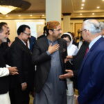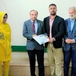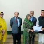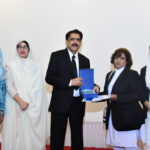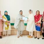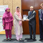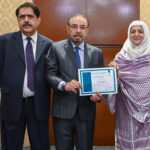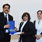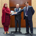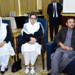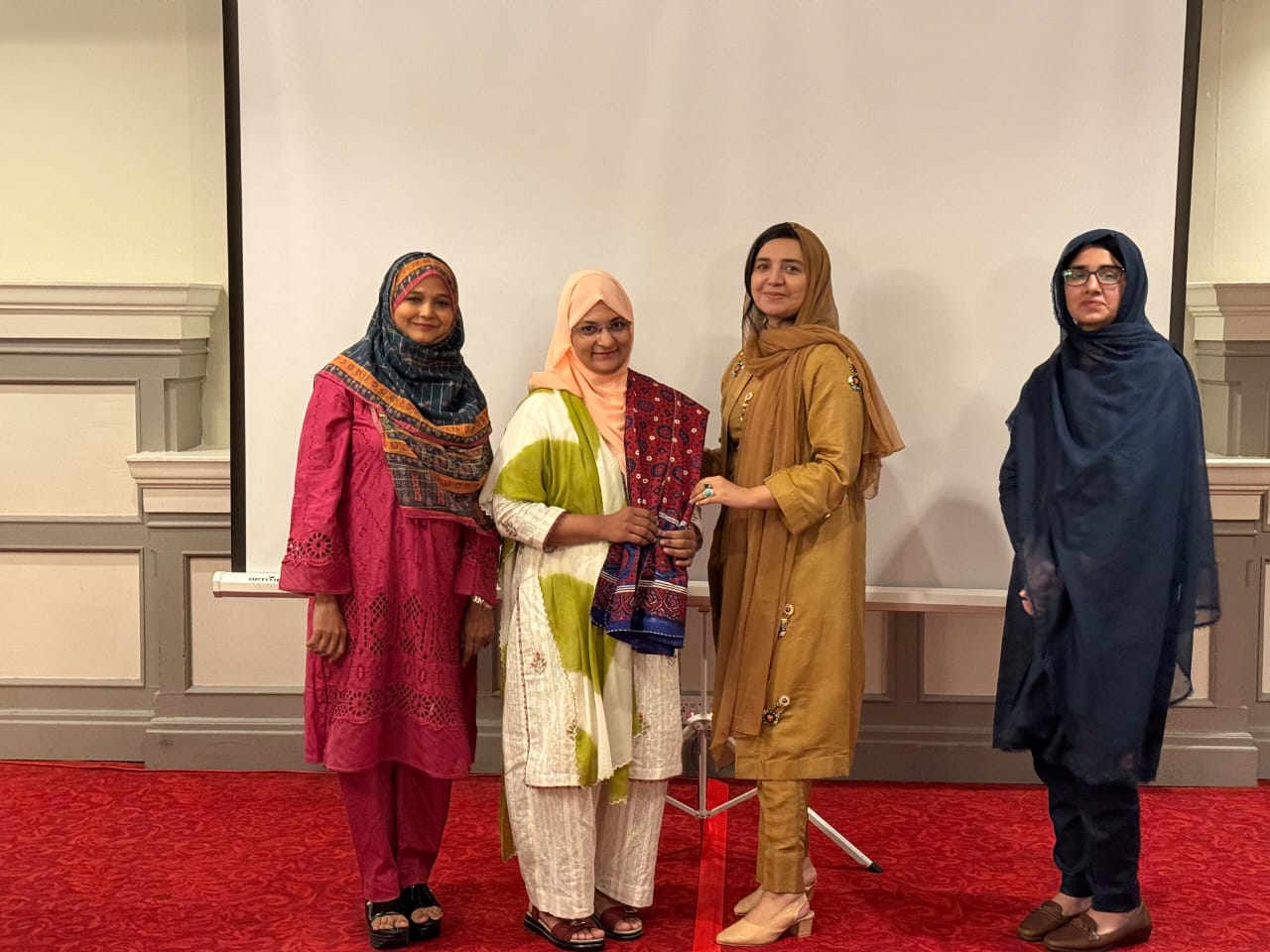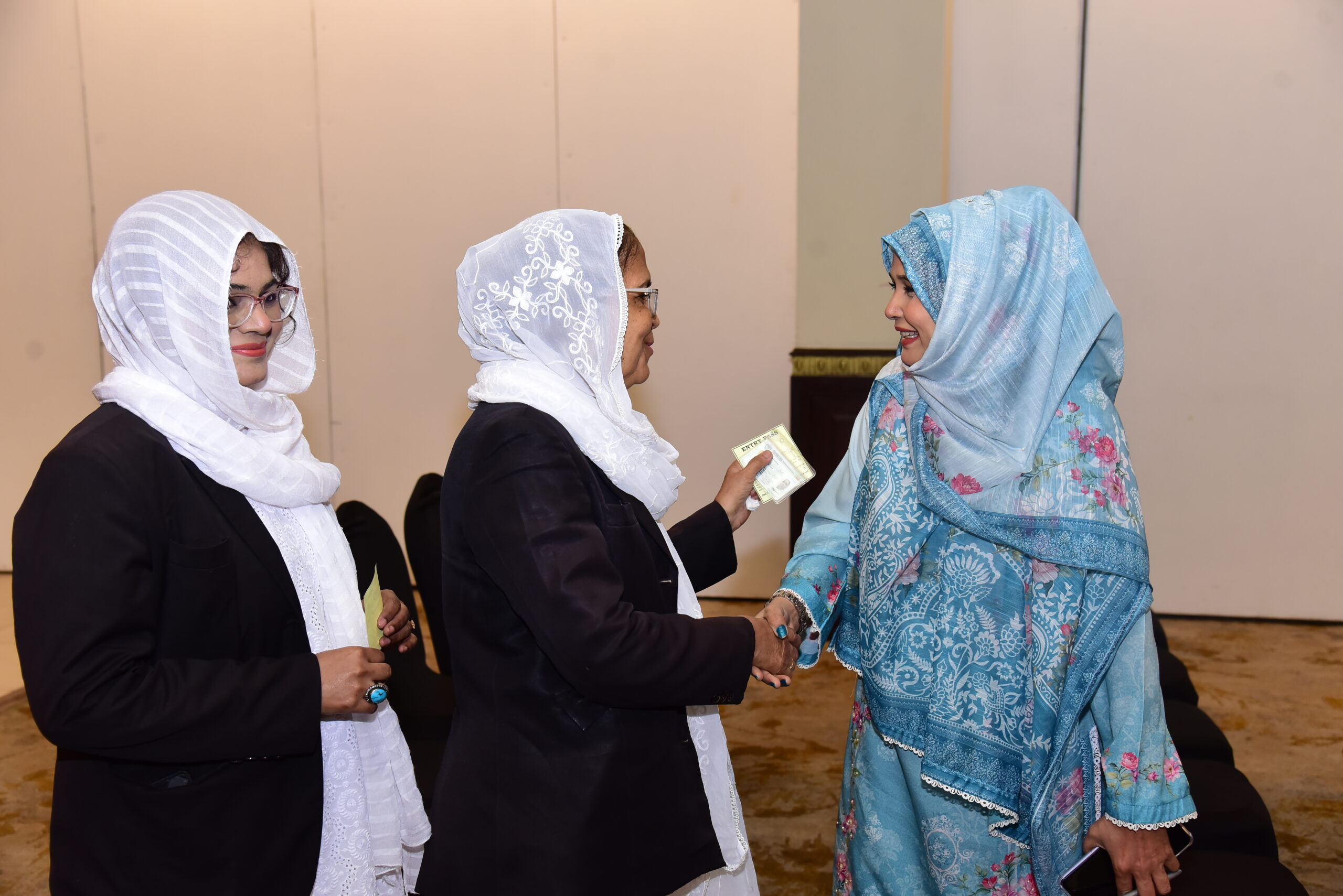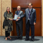 Mr. Manthar Ali Jatoi, (Consultant) and Mr. Bashir Ahmed Khoso, (Consultant) Provincial Ombudsman (PHWWP) presenting souvenirs to Ms. Huma Ikramullah, Advocate, Parliamentary Strengthening Expert, Associate Secretary General Religions for Peace Asia.