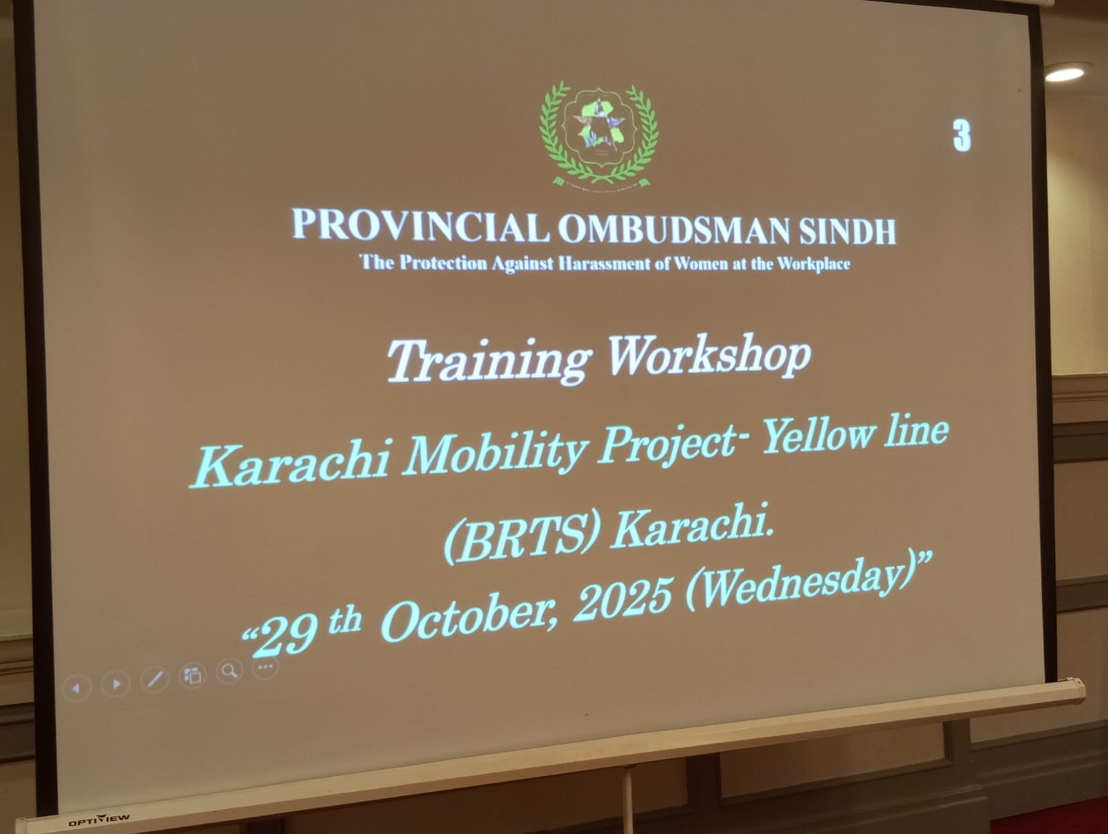 Awareness and Training Workshop “Sindh Mass Transit Authority, Government of Sindh, Karachi,” on 29th October, 2025.