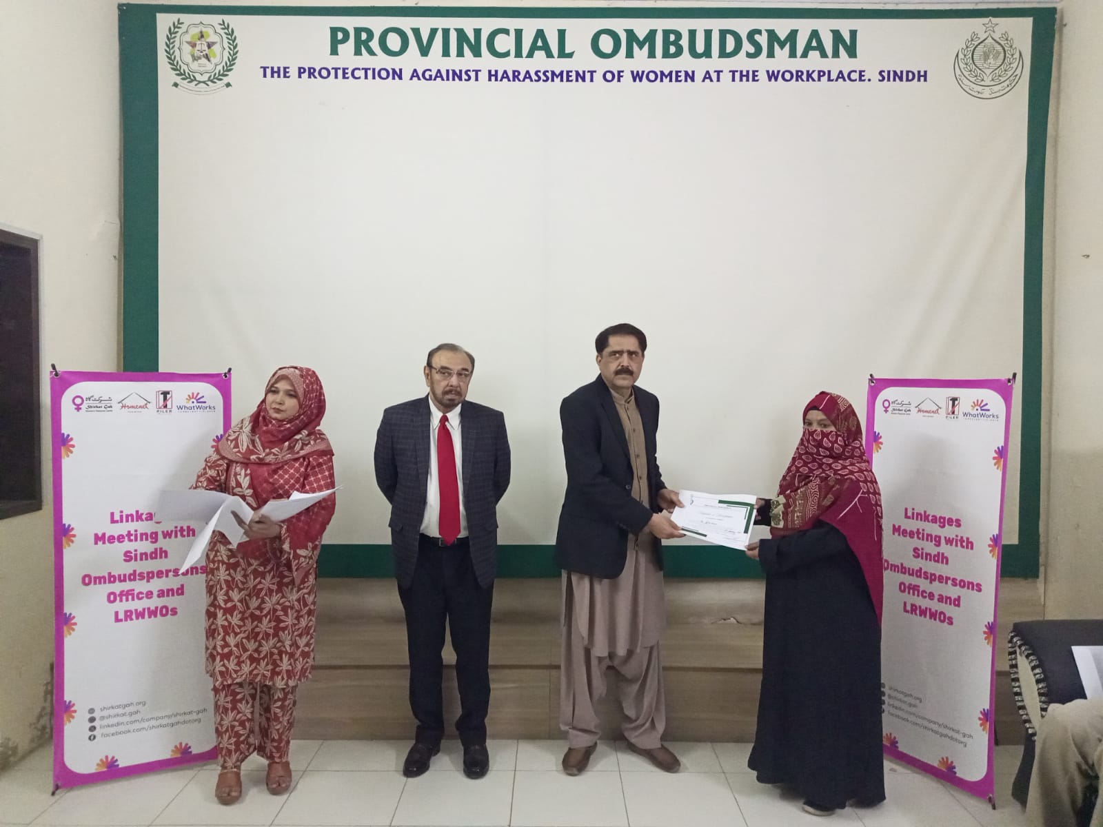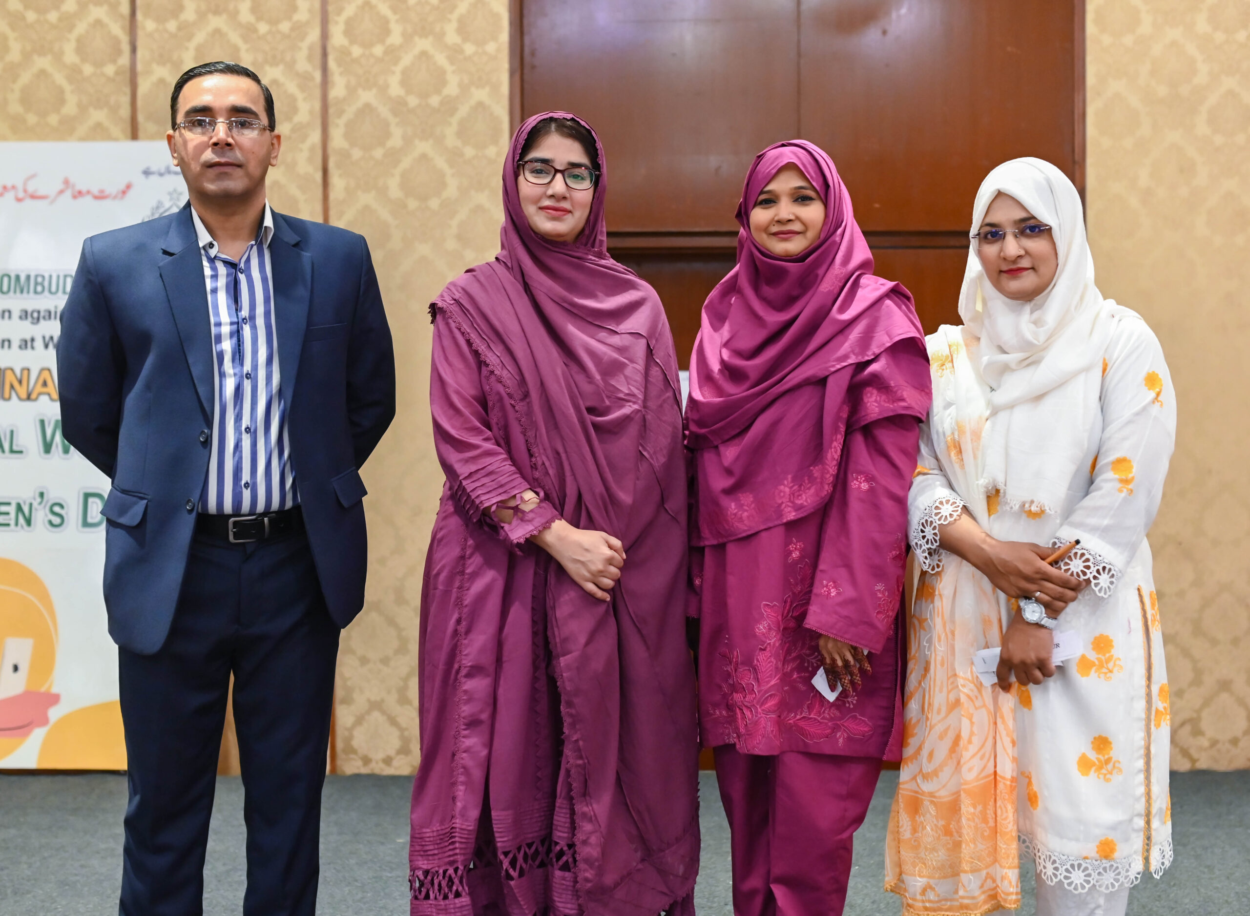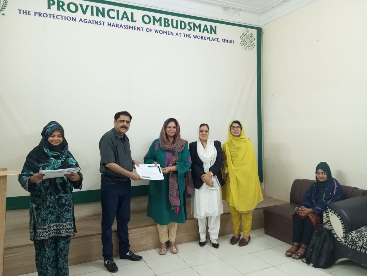 Mr. Muneer Ahmed Channa, Registrar, Ms. Zainab Shah (AD, Awareness), Ms. Kousar Parveen, AD (Admn) with Ms. Afsheen Naz Provincial Ombudsman (PHWWP).