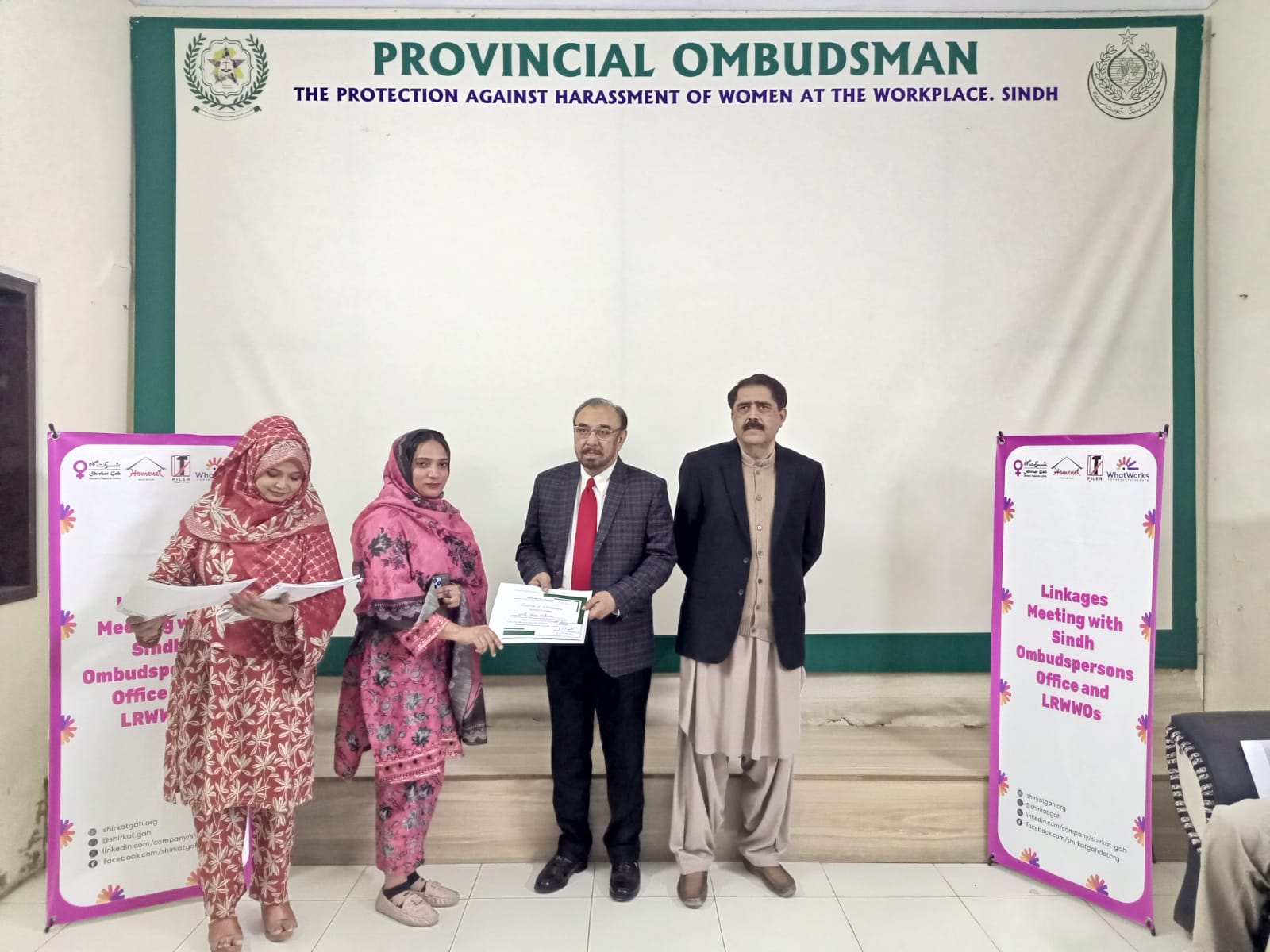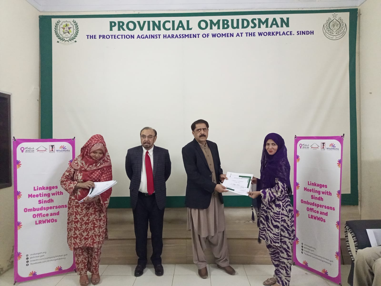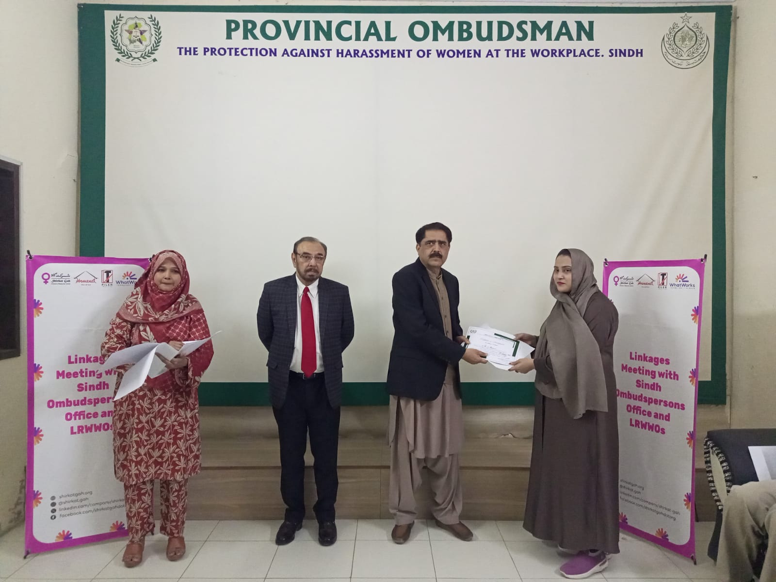 Mr. Muneer Ahmed Channa, Registrar, Ms. Zainab Shah (AD, Awareness), Ms. Kousar Parveen, AD (Admn) with Ms. Afsheen Naz Provincial Ombudsman (PHWWP).
