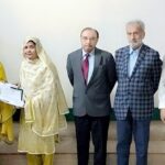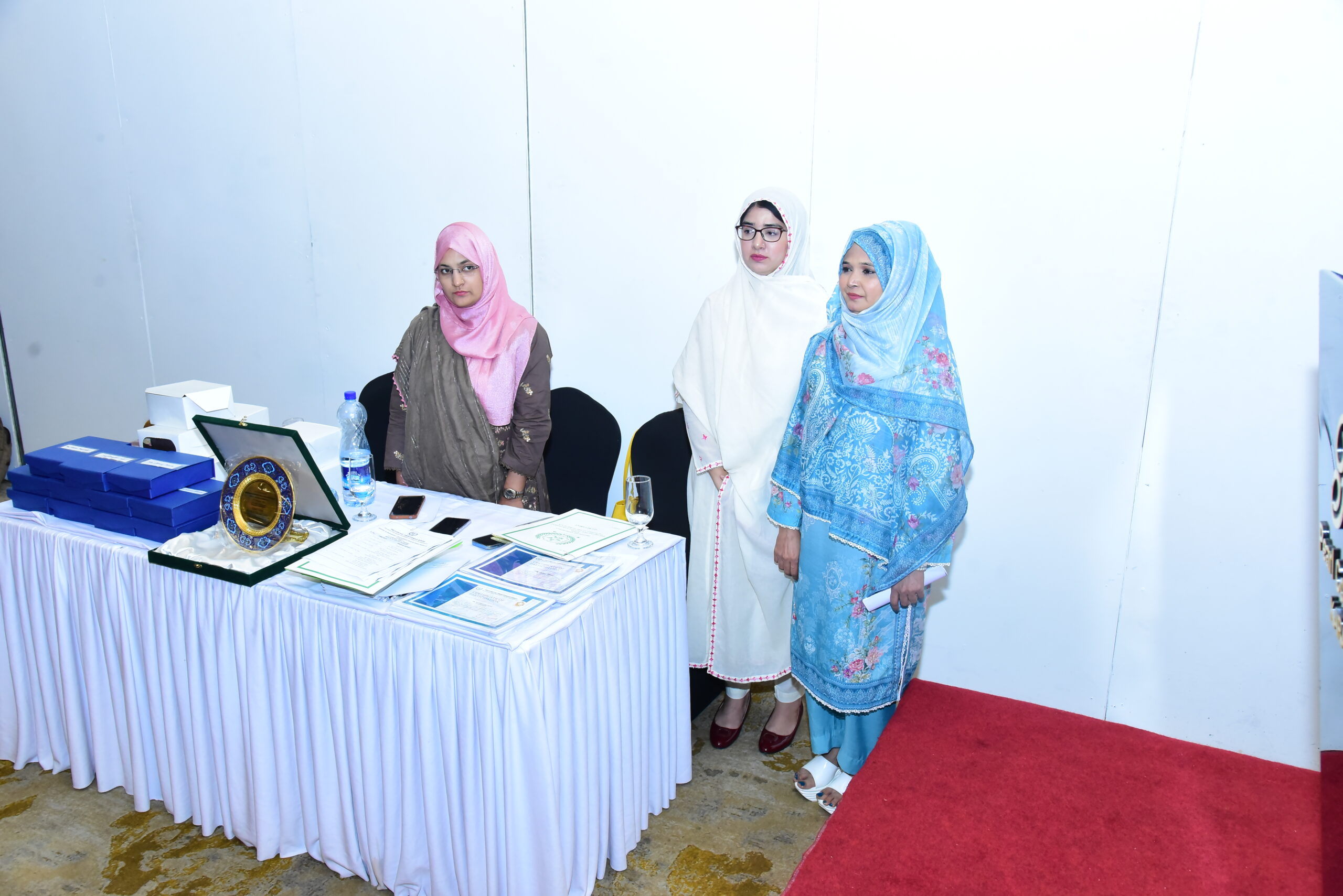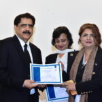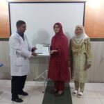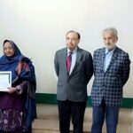 Mr. Manthar Ali Jatoi, (Consultant) awarding Souvenir & Certificate to the Chief Guest, Dr. Shireen Mansoor, Medical Superintendent, “Mamji Hospital, Karachi”.