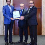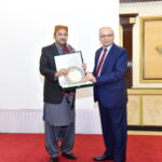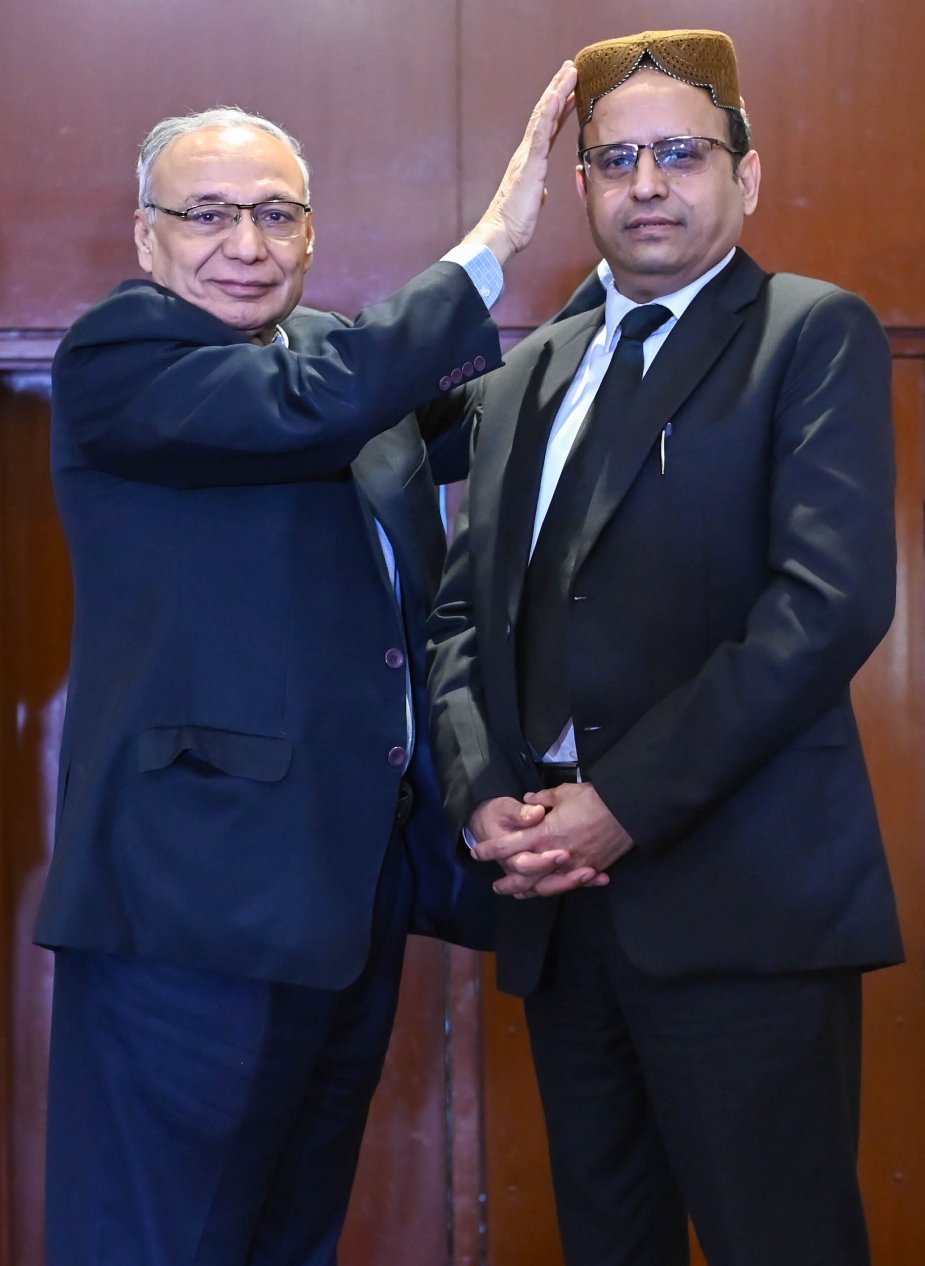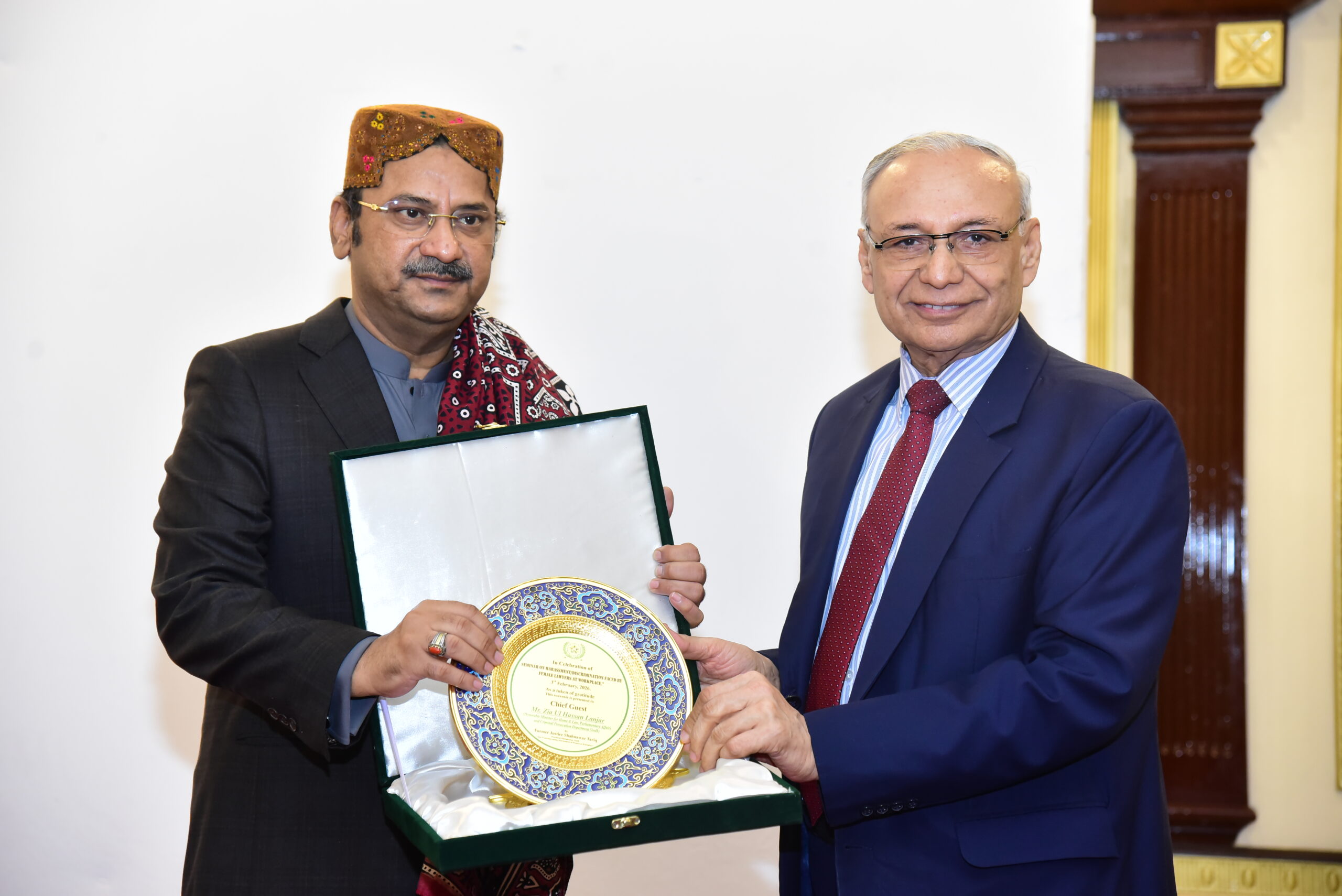 Hon’ble Ombudsman Justice (R) Shahnawaz Tariq presenting Ajrak & Sindhi Topi to Chief Guest Honorable Mr. Justice Zafar Ahmed Rajput, Chief Justice, High Court of Sindh.