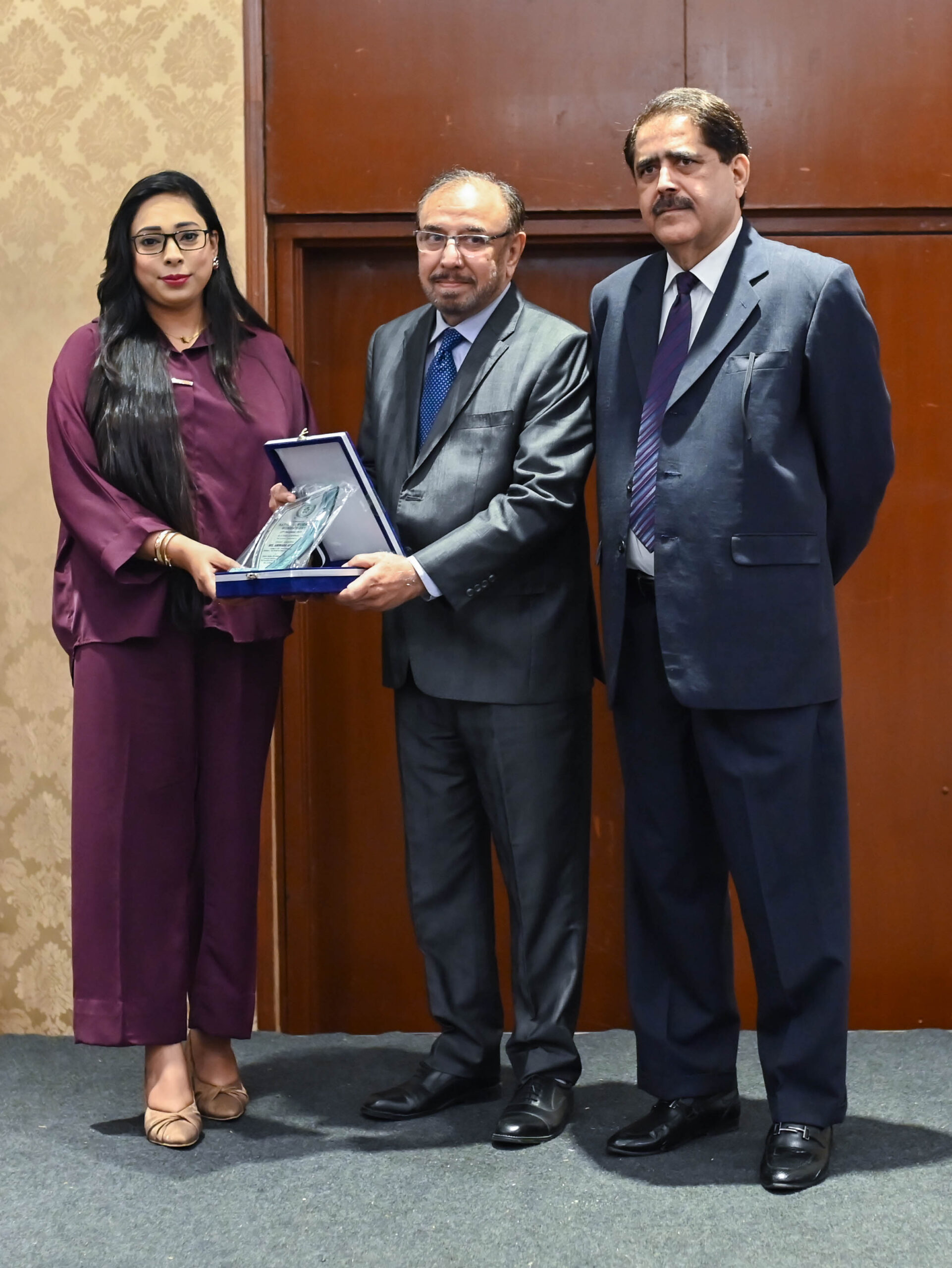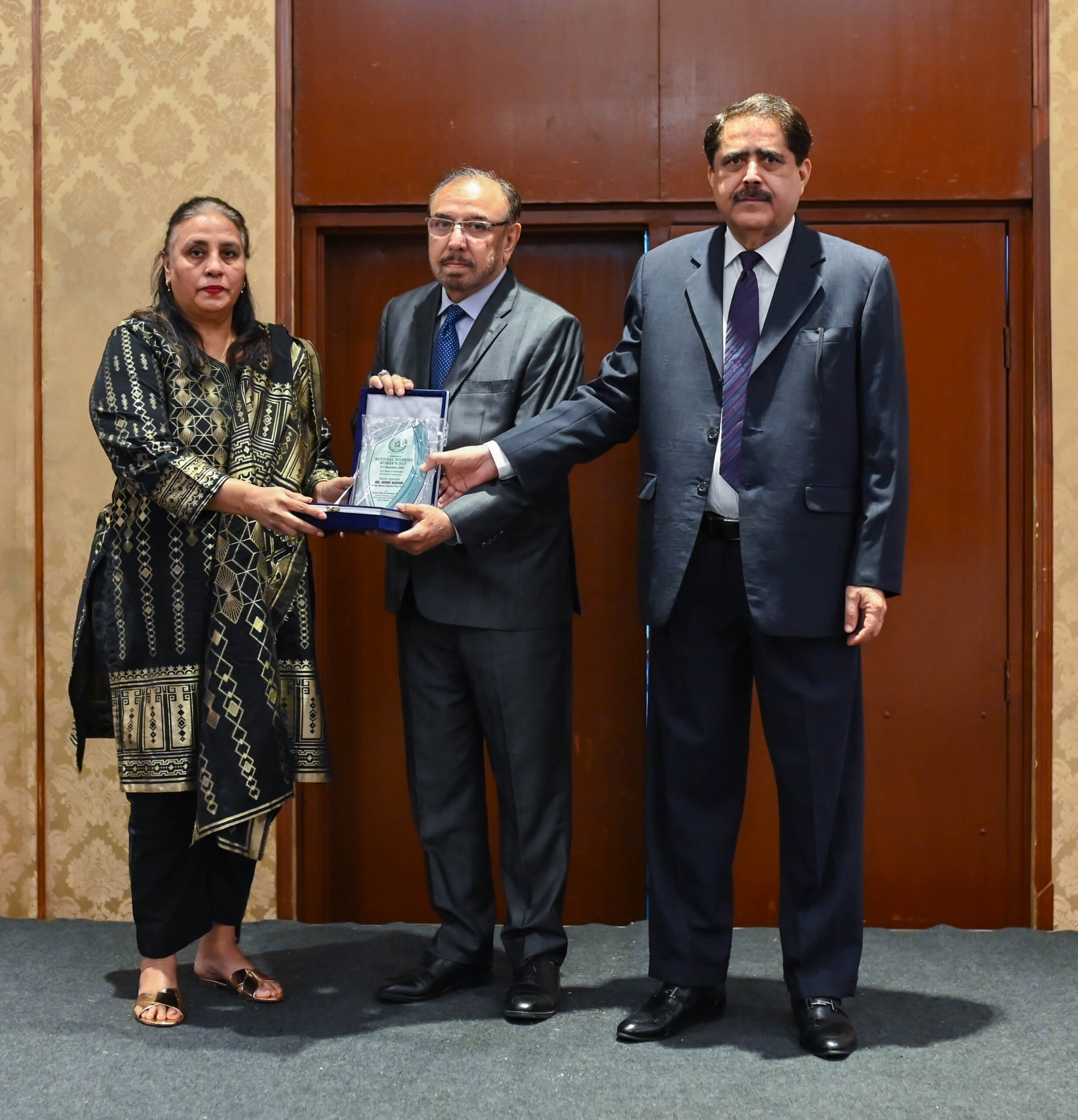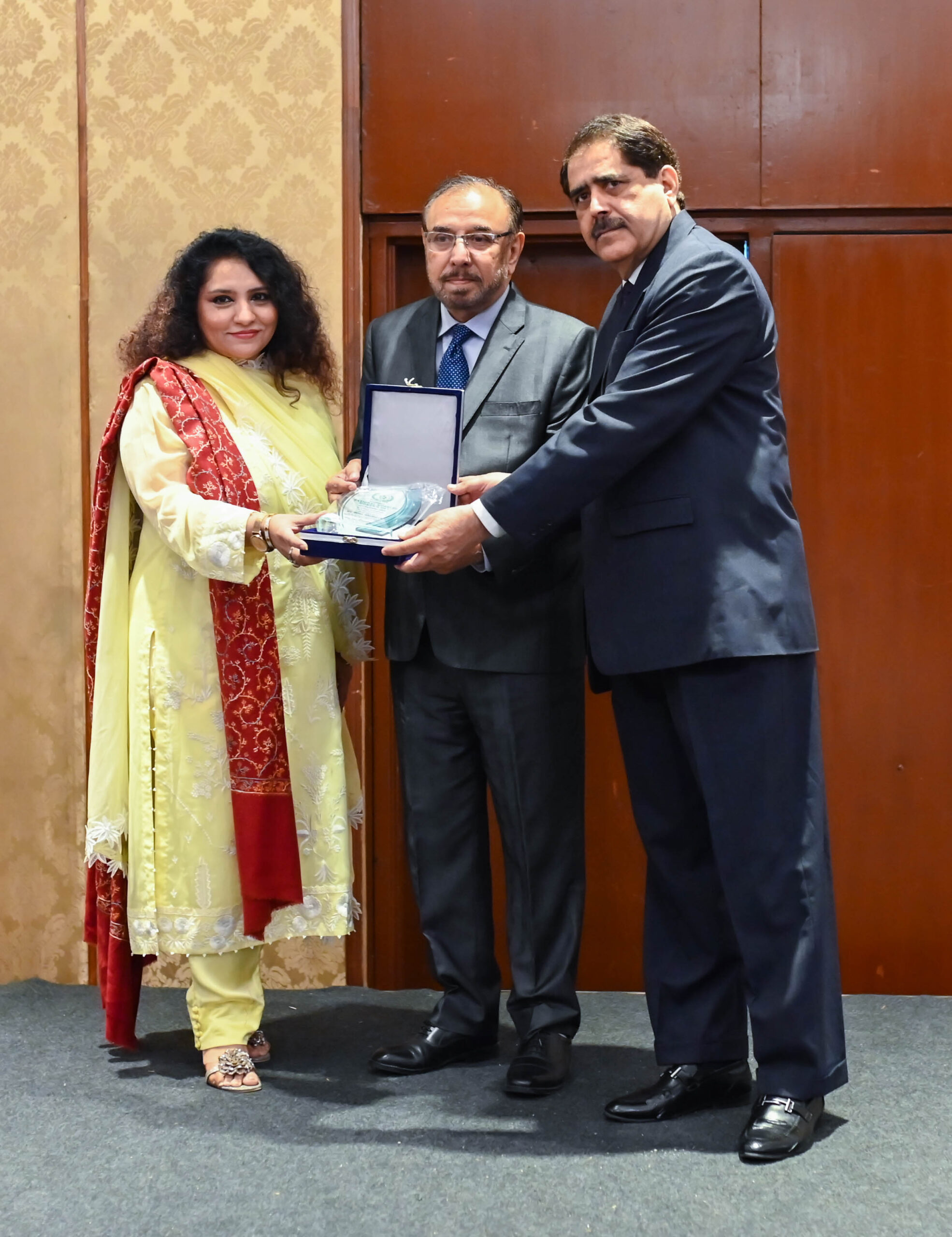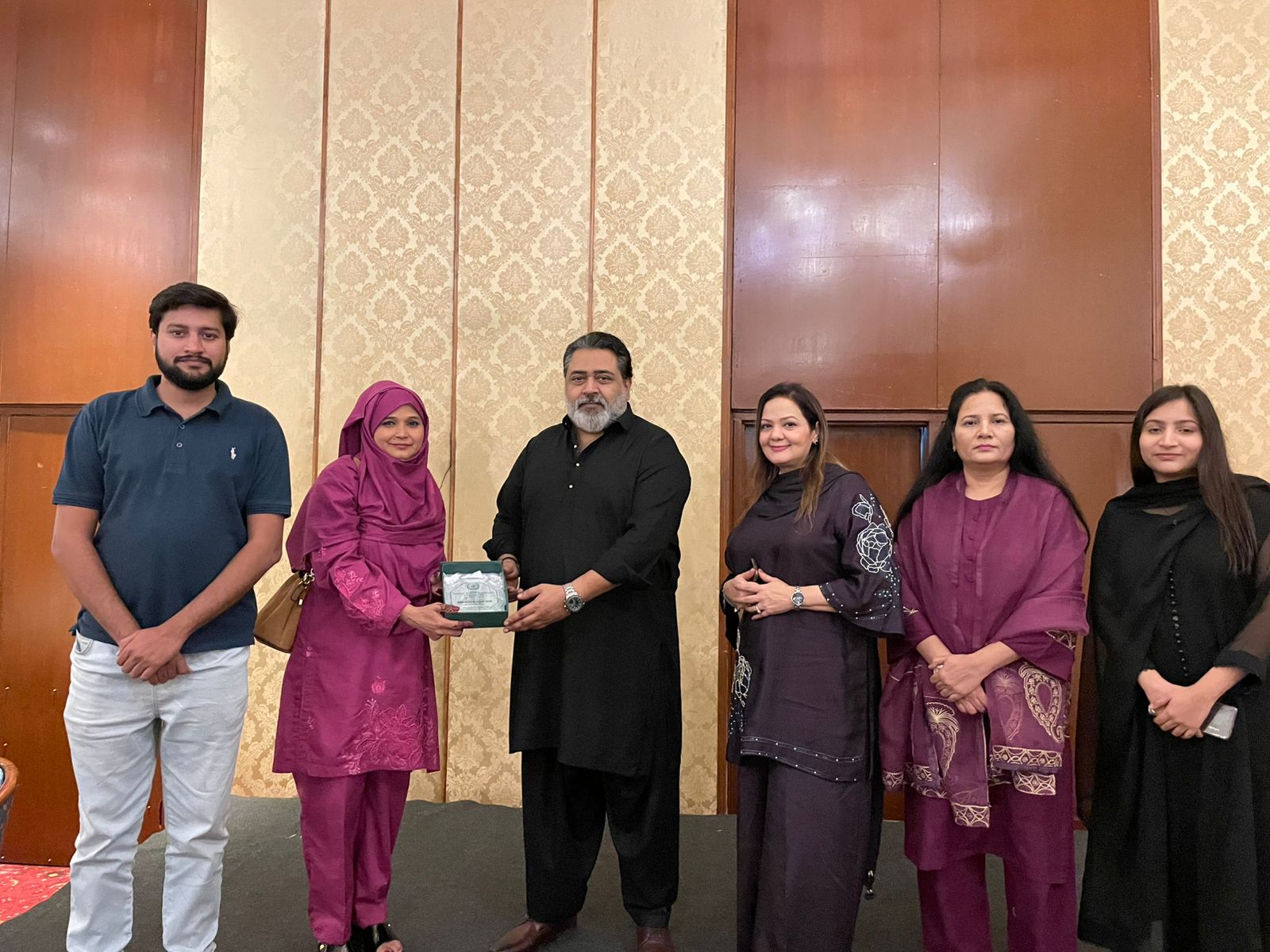 Mr. Manthar Ali Jatoi, (Consultant) and Mr. Bashir Ahmed Khoso, (Consultant) Provincial Ombudsman (PHWWP) presenting souvenirs to Dr. Bilquis Shaikh, Founder of Naturalize and Popular media Personality.