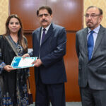 Mr. Manthar Ali Jatoi, (Consultant) and Mr. Bashir Ahmed Khoso, (Consultant) Provincial Ombudsman (PHWWP) presenting souvenirs to Ms. Ammara Aftab, Founder & CEO – Pro AI Global, Pakistan’s First Female AI Trainer & Consultant.