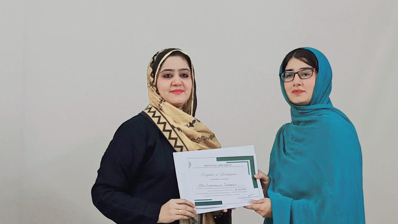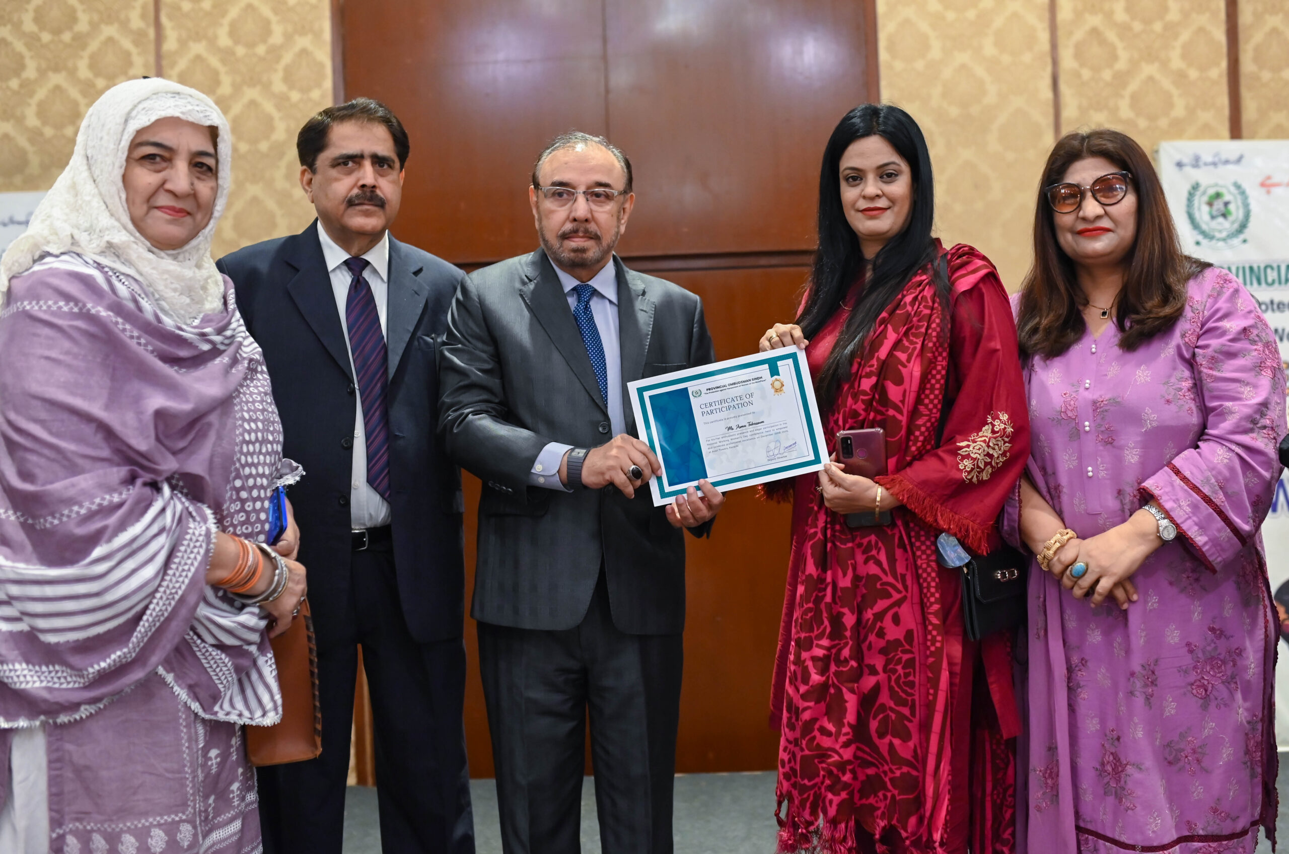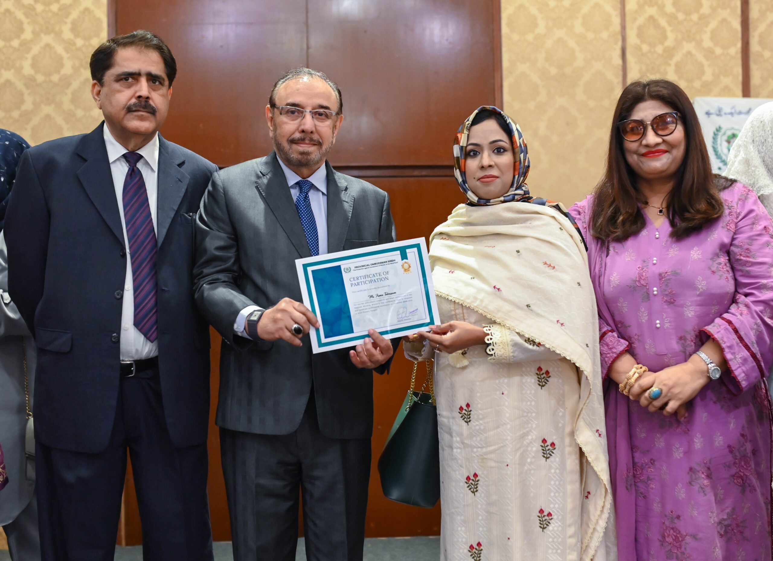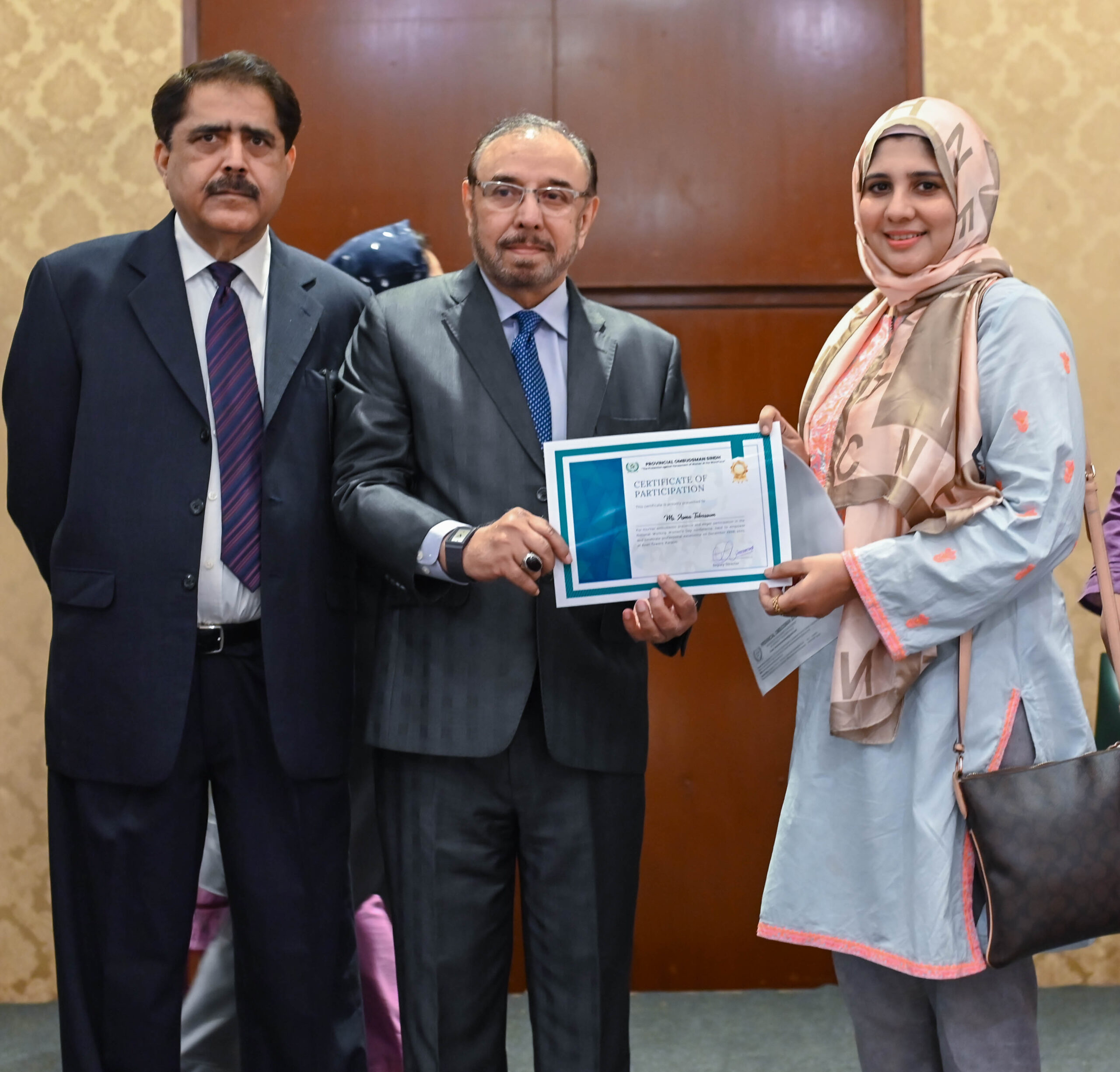 Ms. Zainab Shah, Assistant Director (Awareness) awarding Certificate to the participants.