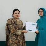 Ms. Zainab Shah, Assistant Director (Awareness) awarding Souvenir & Certificate to the participants.