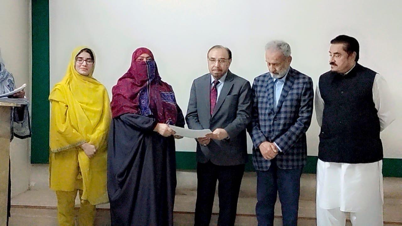 Mr. Manthar Ali Jatoi, (Consultant) and Mr. Bashir Ahmed Khoso, (Consultant) Provincial Ombudsman (PHWWP) presenting souvenirs to Dr. Asma Tabassum, Director, Sohail University.