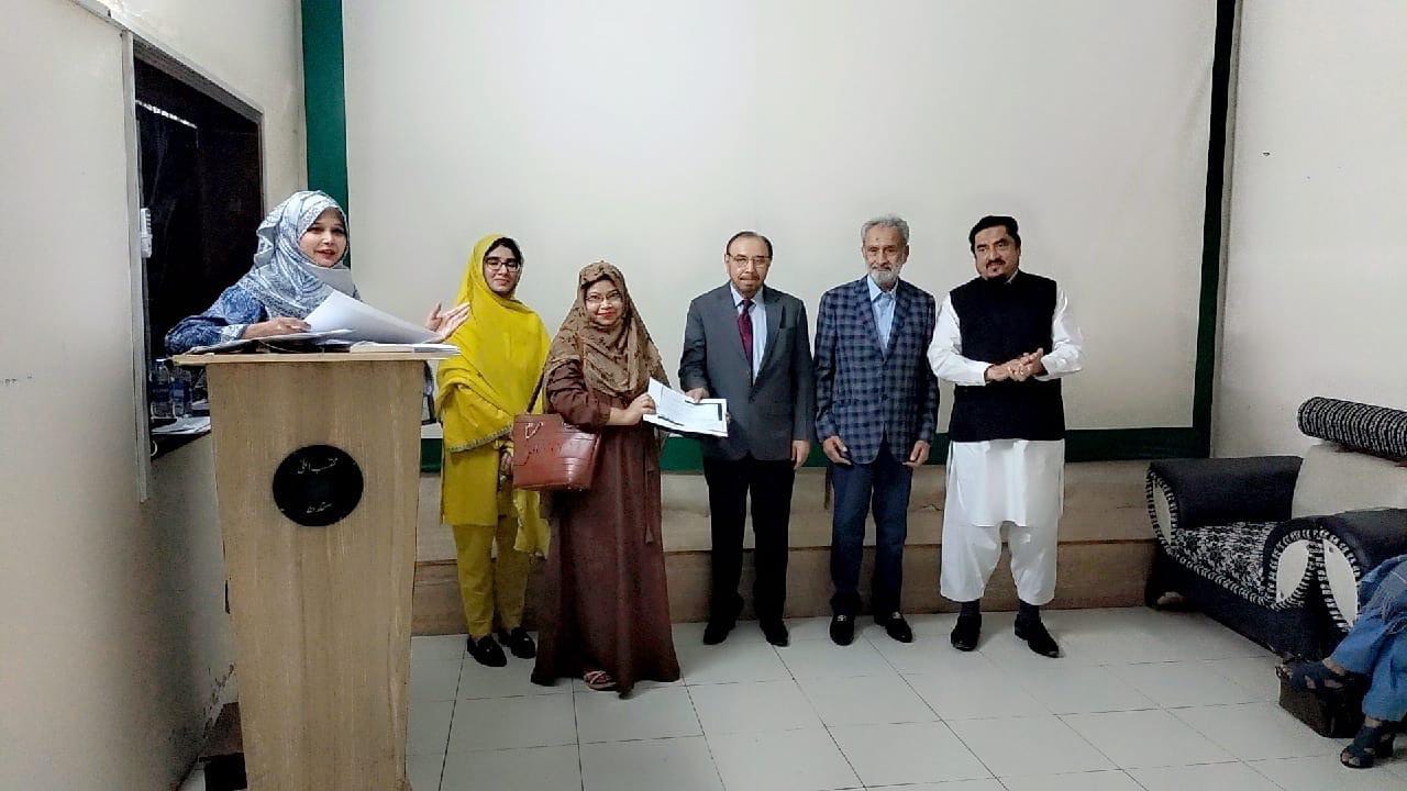 Mr. Bashir Ahmed Khoso, (Consultant) Provincial Ombudsman (PHWWP) awarding Souvenir to the Guest, Dr. Asma Tabassum, Director ORIC “Sohail University”. Karachi.