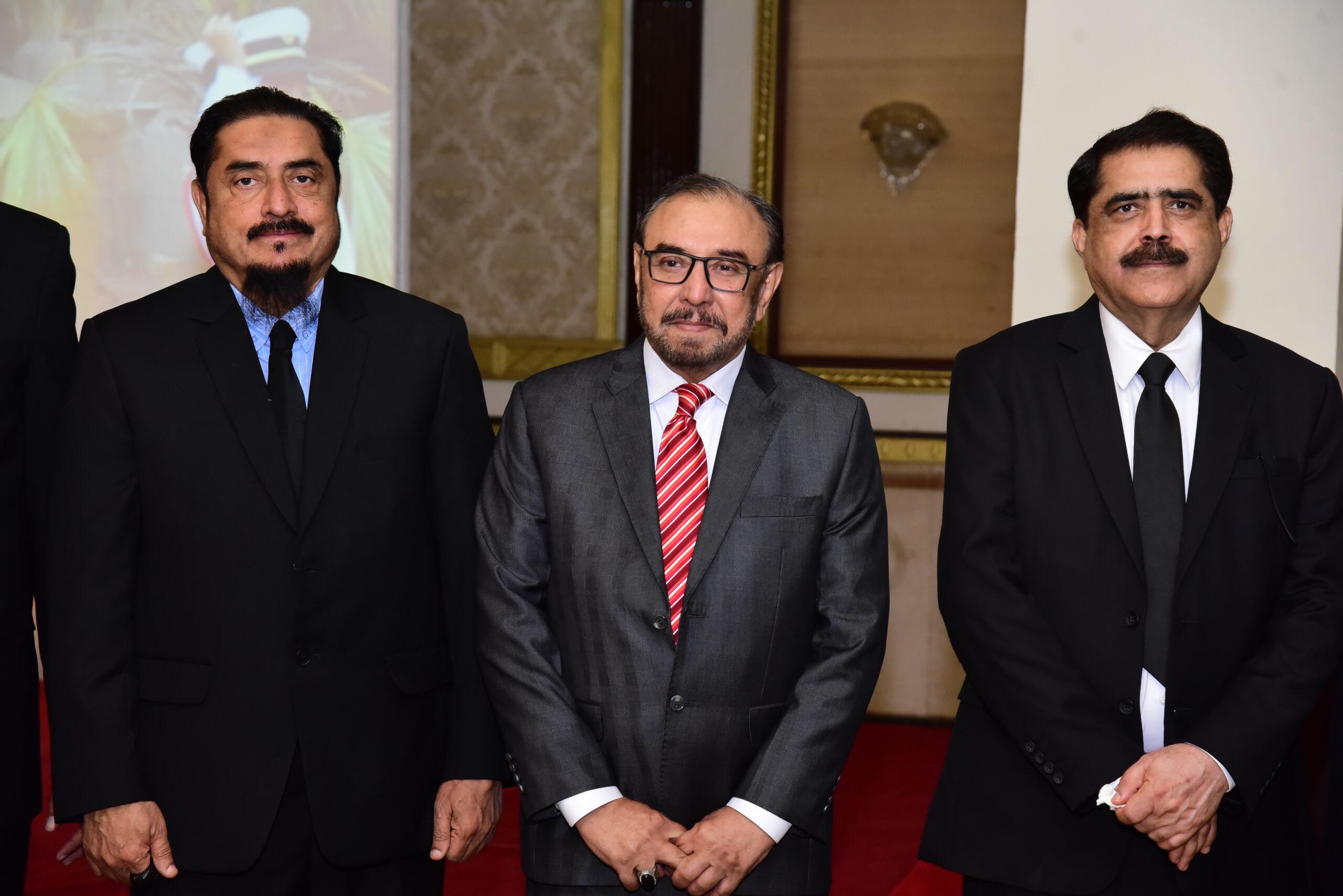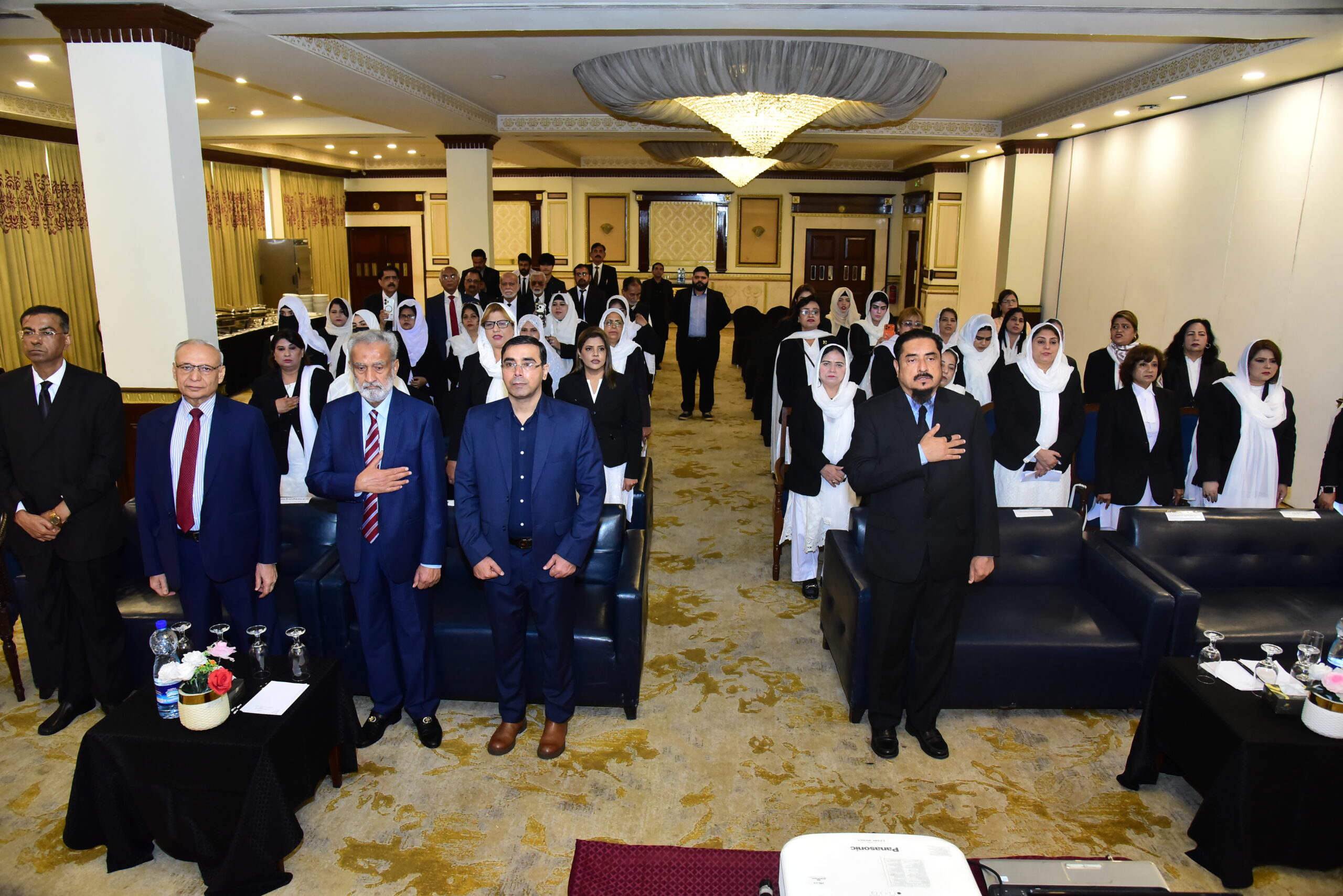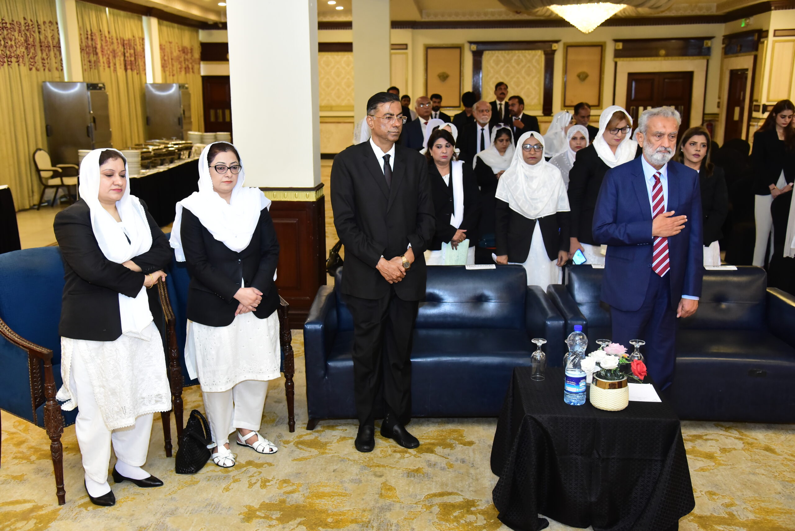 Honorable Ombudsman, Justice (R) Shahnawaz Tariq, Worthy Registrar, District & Session Judges (Consultant) and officers of Provincial Ombudsman (PHWWP) department standing in the honour of National Anthem of Pakistan.