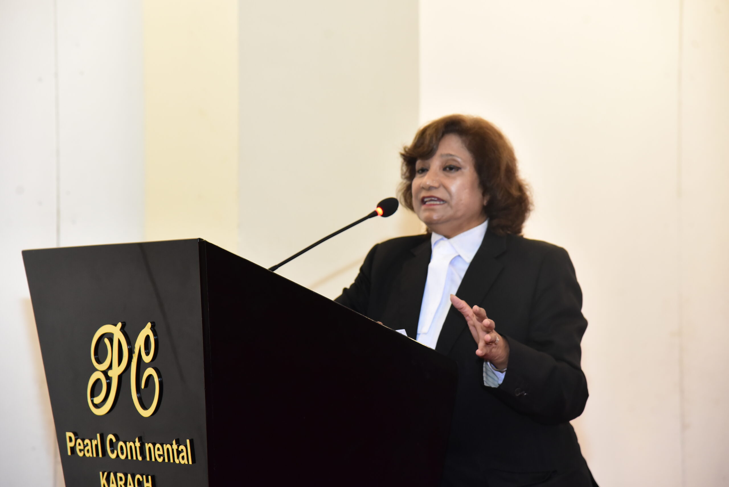 Ms. Musarrat Khan, Advocate High Court, Former Treasurer KBA, Karachi Bar Association, sharing her thoughts on the topic of the seminar.