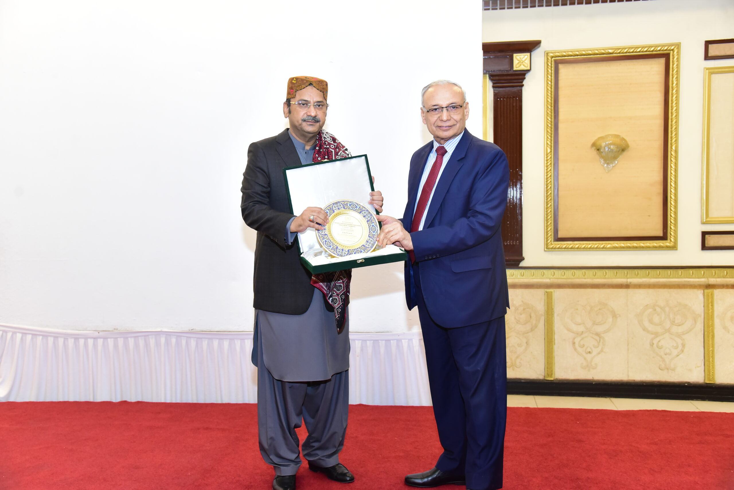 Hon’ble Ombudsman Justice (R) Shahnawaz Tariq presenting Souvenirs to Chief Guest Honorable Mr. Zia Ul Hassan Lanjar, Honorable Minister for Home & Law, Parliamentary Affairs and Criminal Prosecution Department Sindh.