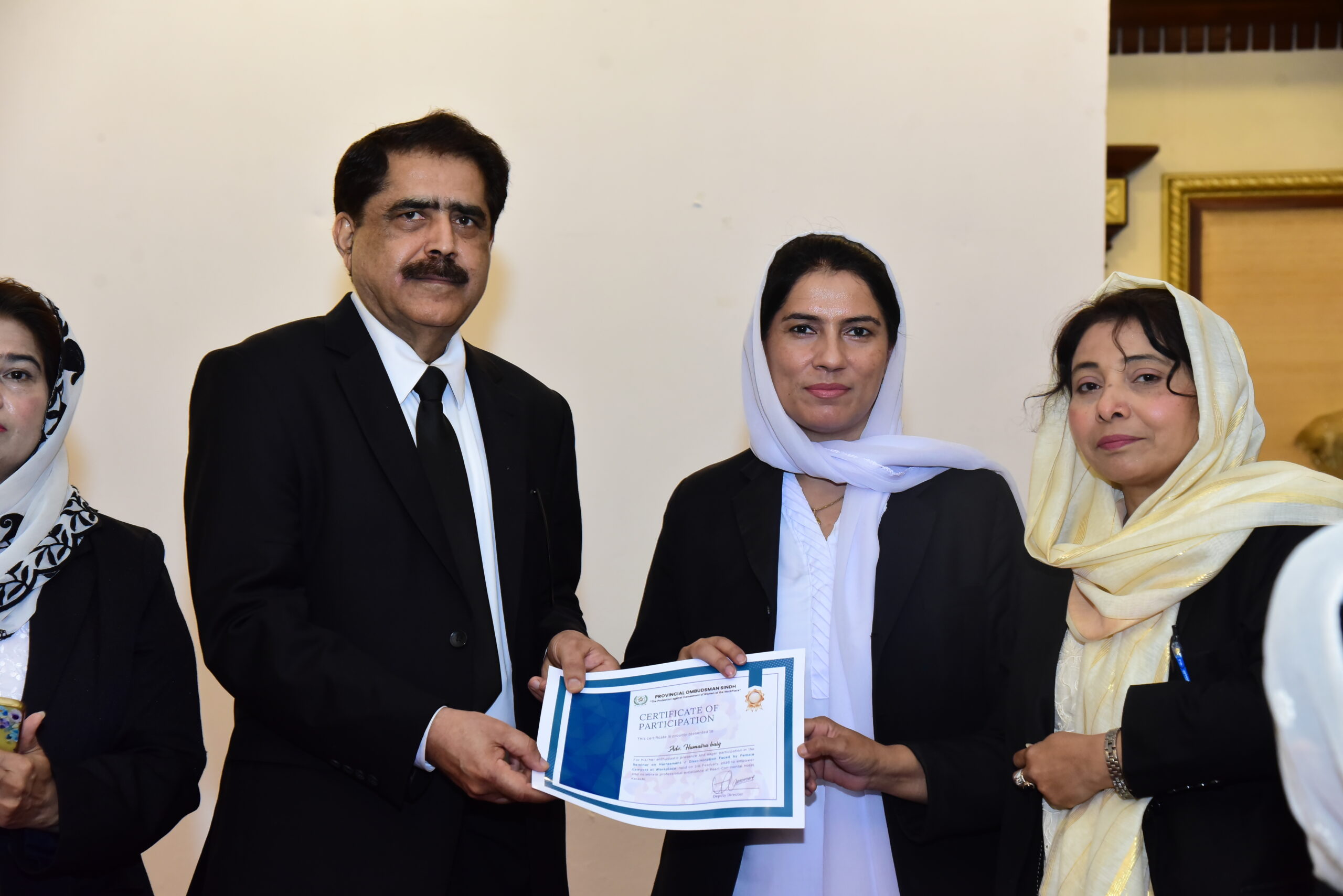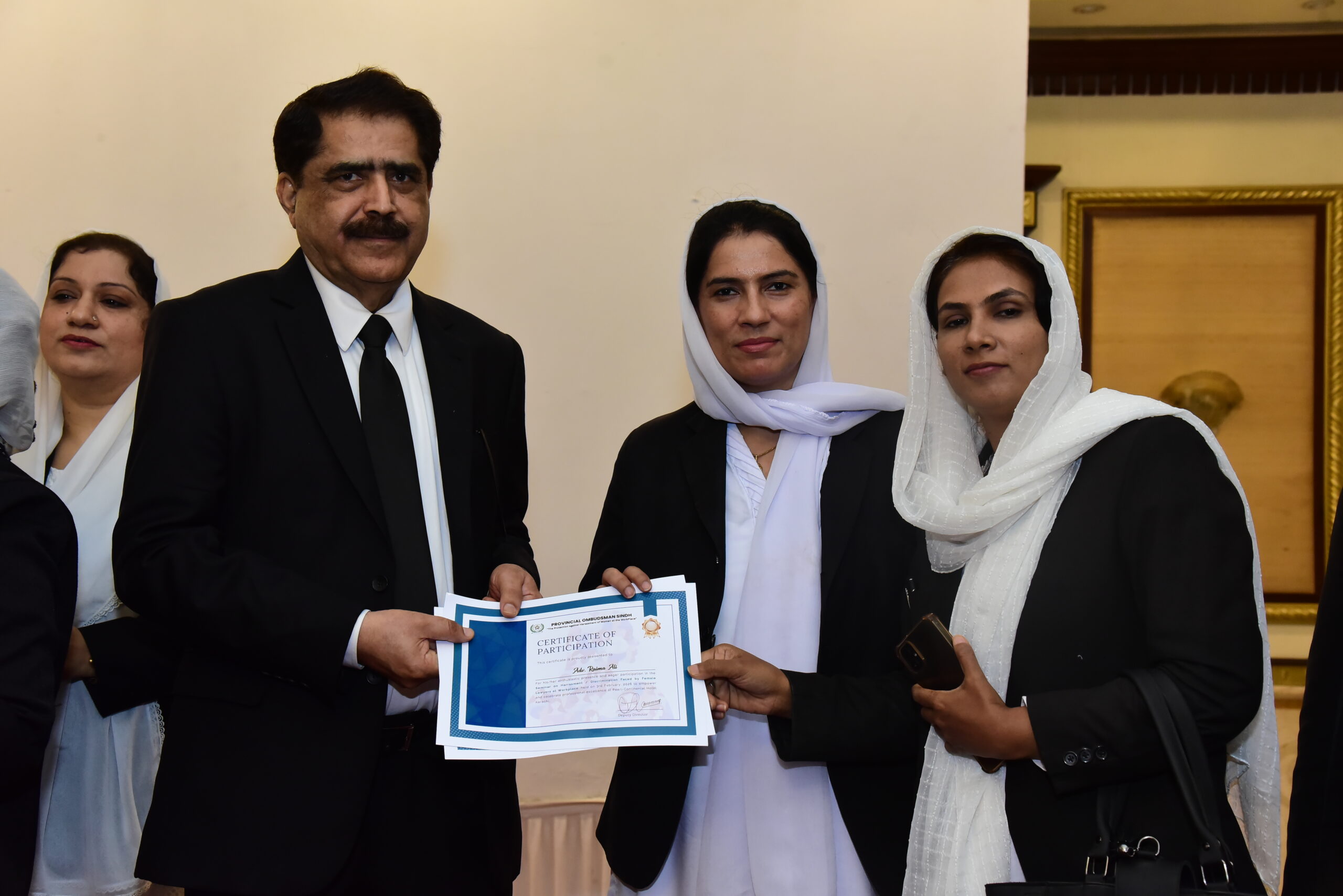 Mr. Manthar Ali Jatoi, (Consultant), Provincial Ombudsman (PHWWP) awarding certificates to the participants.