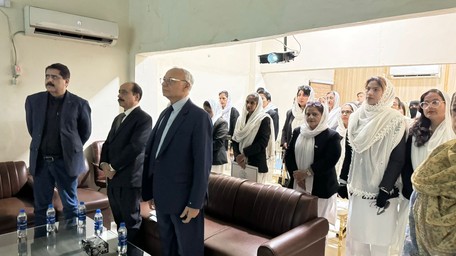 Honorable Ombudsman, Justice (R) Shahnawaz Tariq, Worthy Registrar, District & Session Judges (Consultant) and officers of Provincial Ombudsman (PHWWP) department standing in the honour of National Anthem of Pakistan.