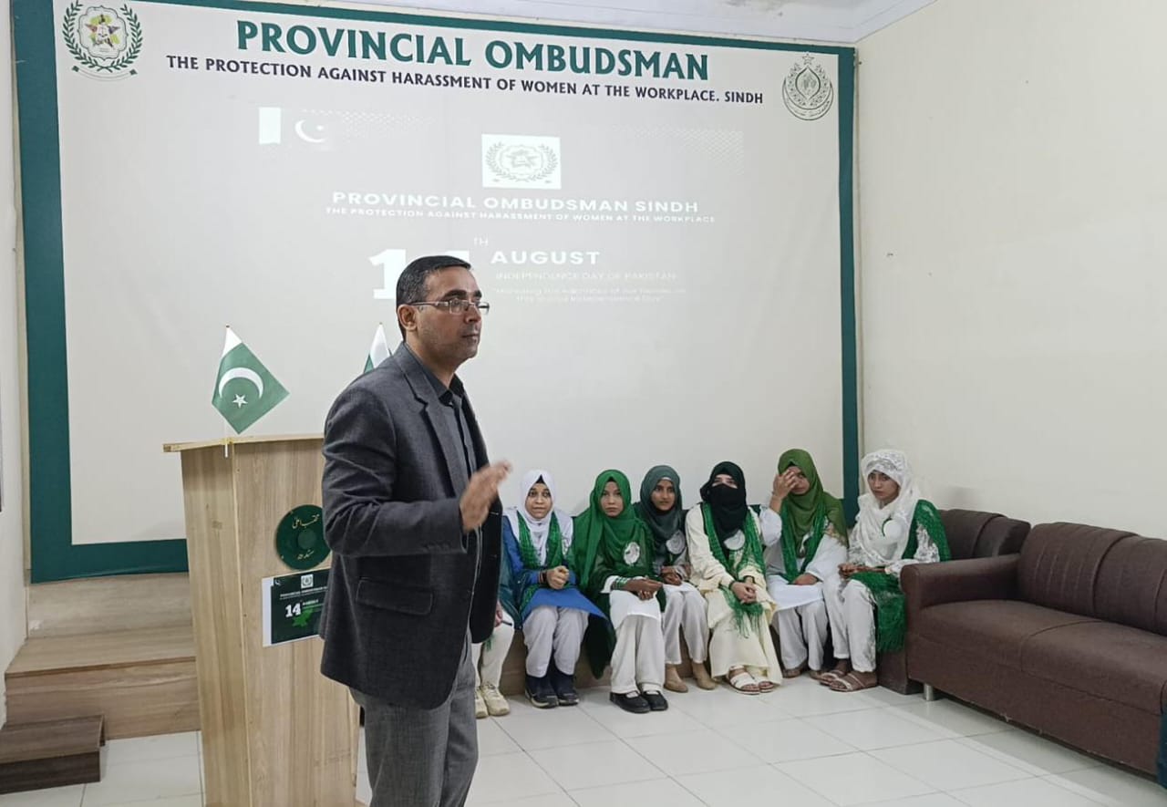The Office of the Provincial Ombudsman Sindh, "The Protection against Harassment of Women at the Workplace”, organized an event to commemorate Independence Day with Gulistan Shah Abdul Latif School, The Educators and Baldia School, held on August 13,2025.