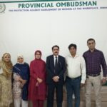 Hon’ble Justice (R) Shahnawaz Tariq (Provincial Ombudsman) with Mr. Manthar Ali Jatoi, District & Session Judge (Consultant), Mr. Bashir Ahmed Khoso, District & Session Judge (Consultant) & Mr. Muneer Ahmed Channa, Registrar, Provincial Ombudsman (PHWWP).