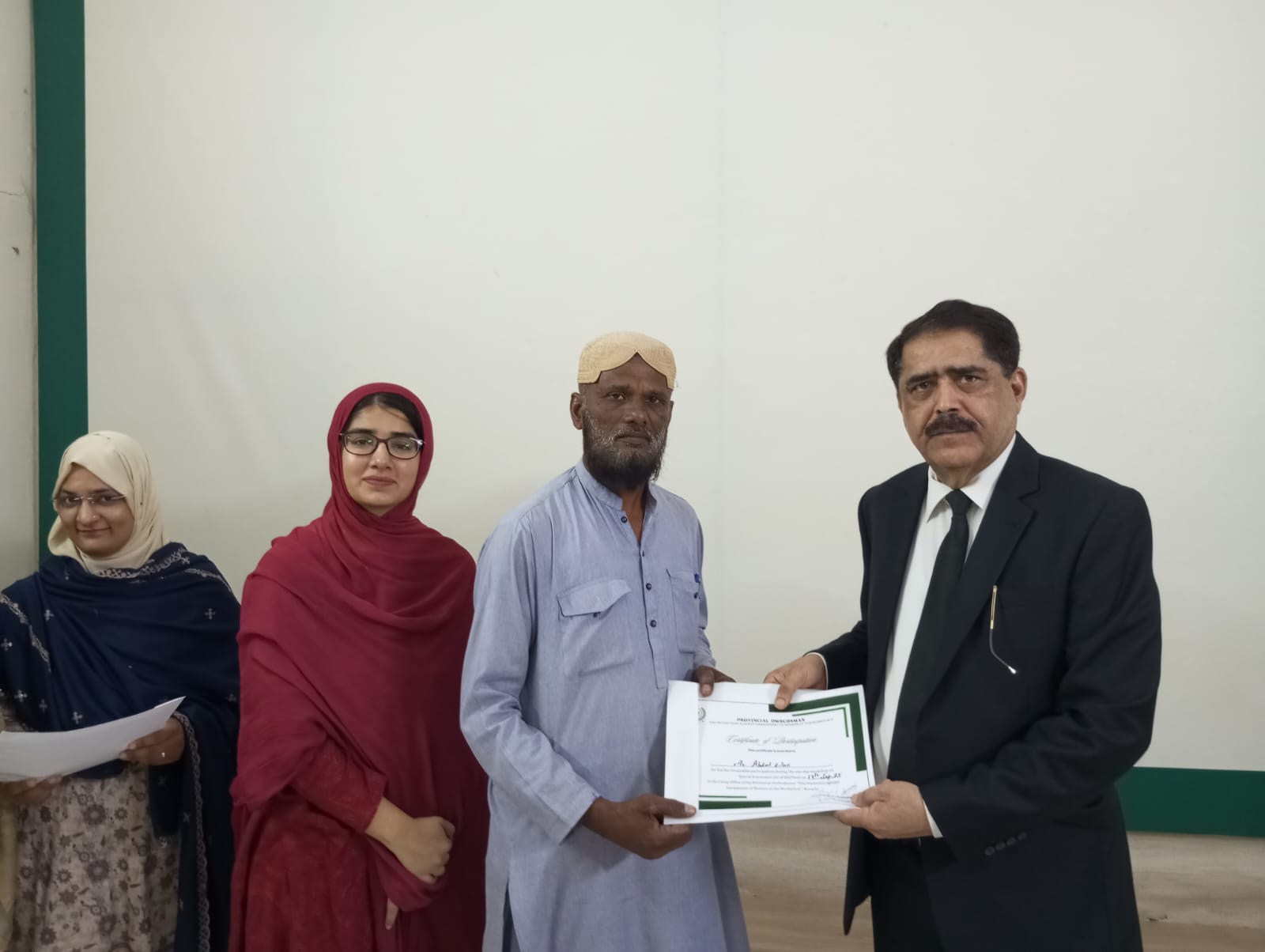 Mr. Manthar Ali Jatoi, (Consultant), Provincial Ombudsman (PHWWP) awarding certificates to the participants.