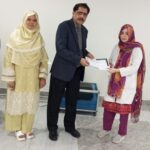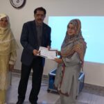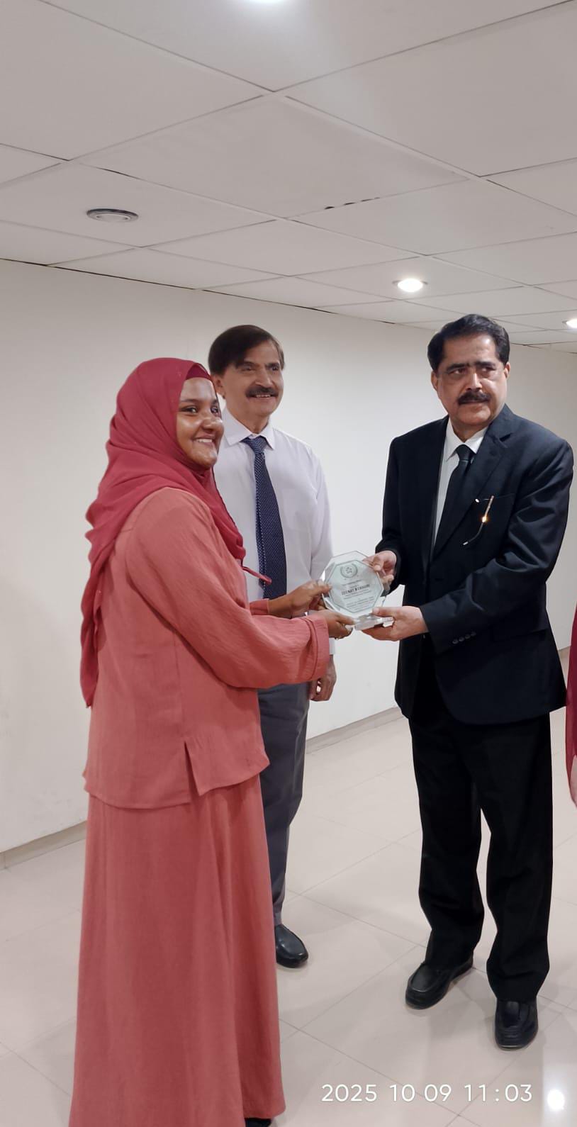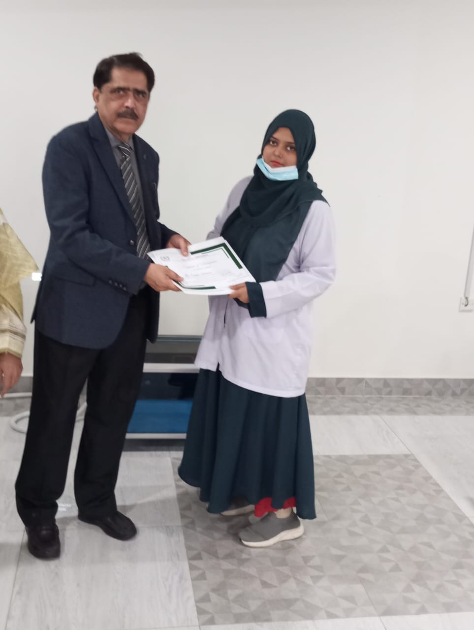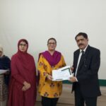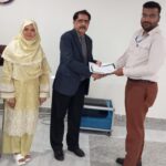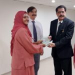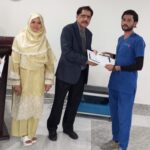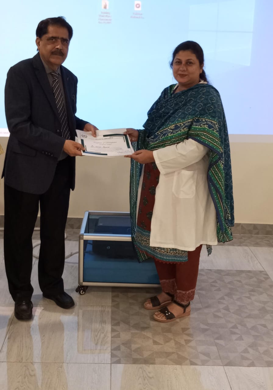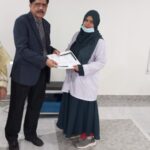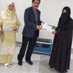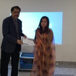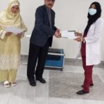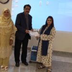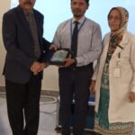 Mr. Manthar Ali Jatoi, (Consultant) awarding Souvenir & Certificate to the Chief Guest, Dr. Shireen Mansoor, Medical Superintendent, “Mamji Hospital, Karachi”.