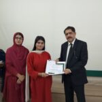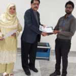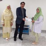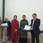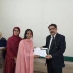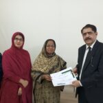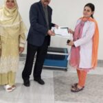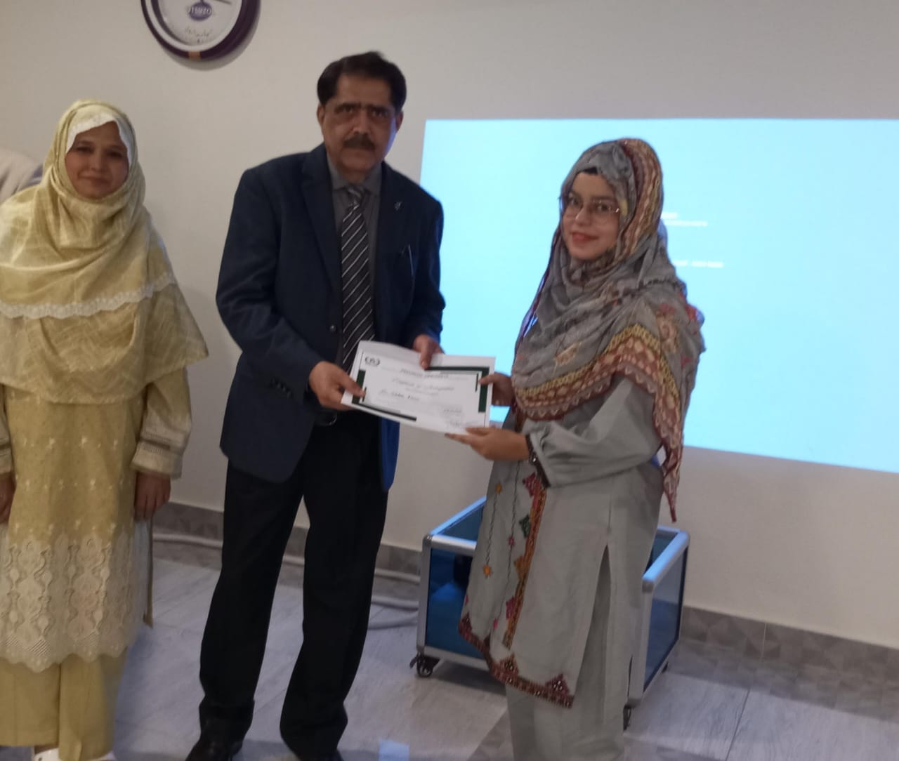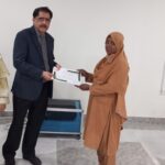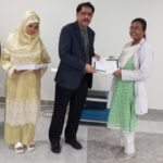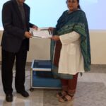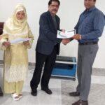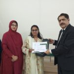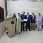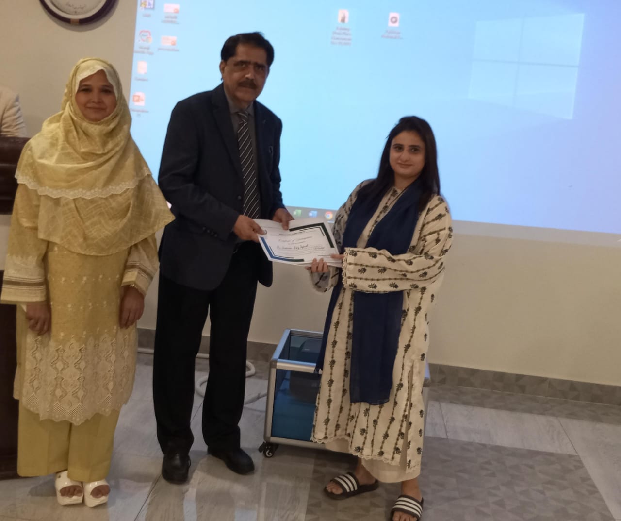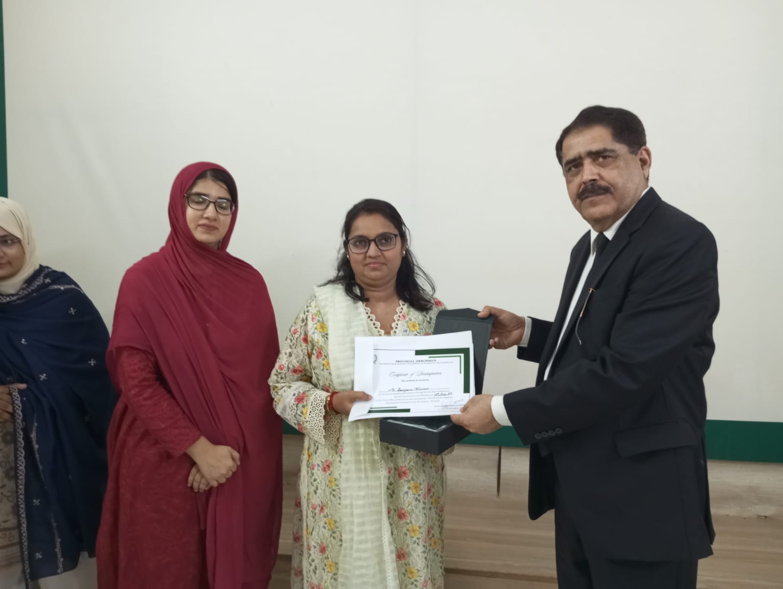 Mr. Manthar Ali Jatoi, (Consultant) awarding Souvenir & Certificate to the Chief Guest, Dr. Shireen Mansoor, Medical Superintendent, “Mamji Hospital, Karachi”.