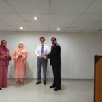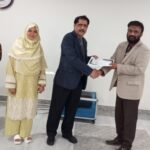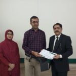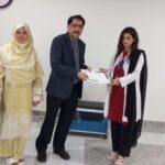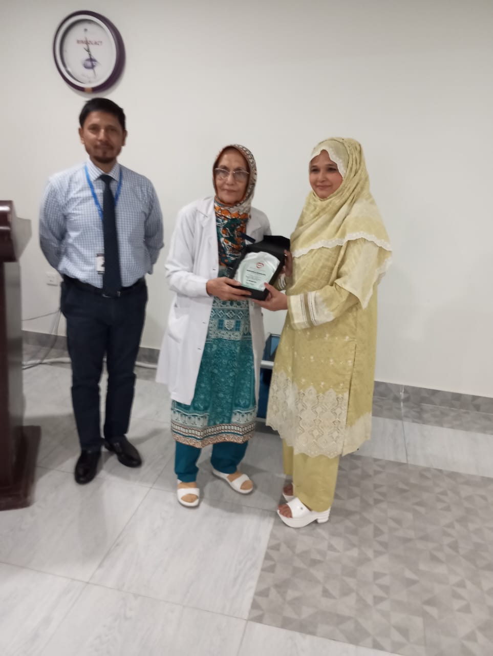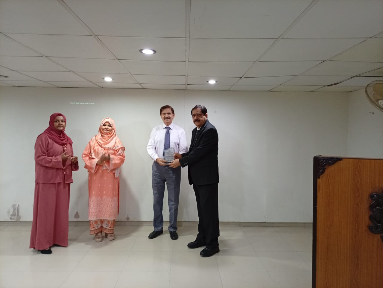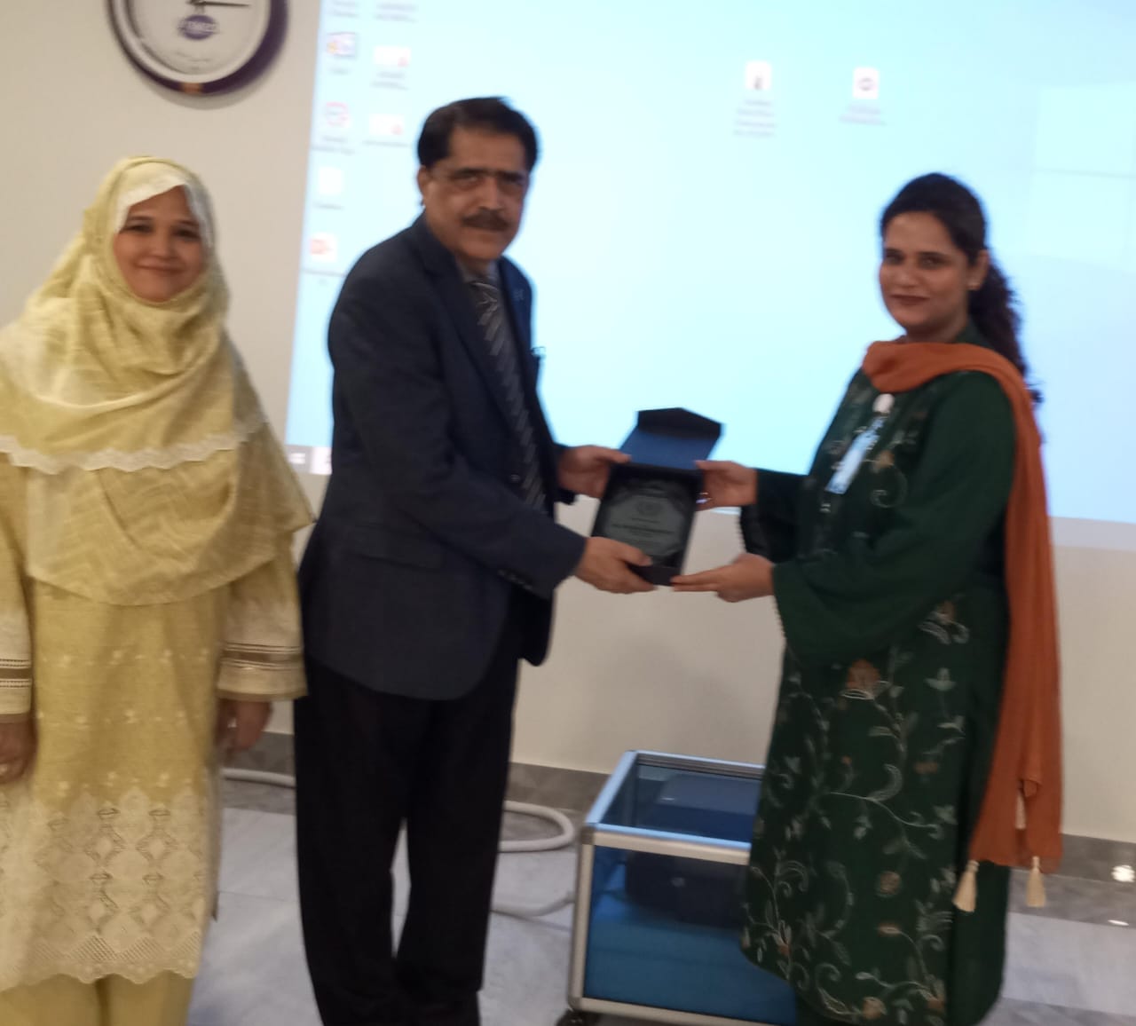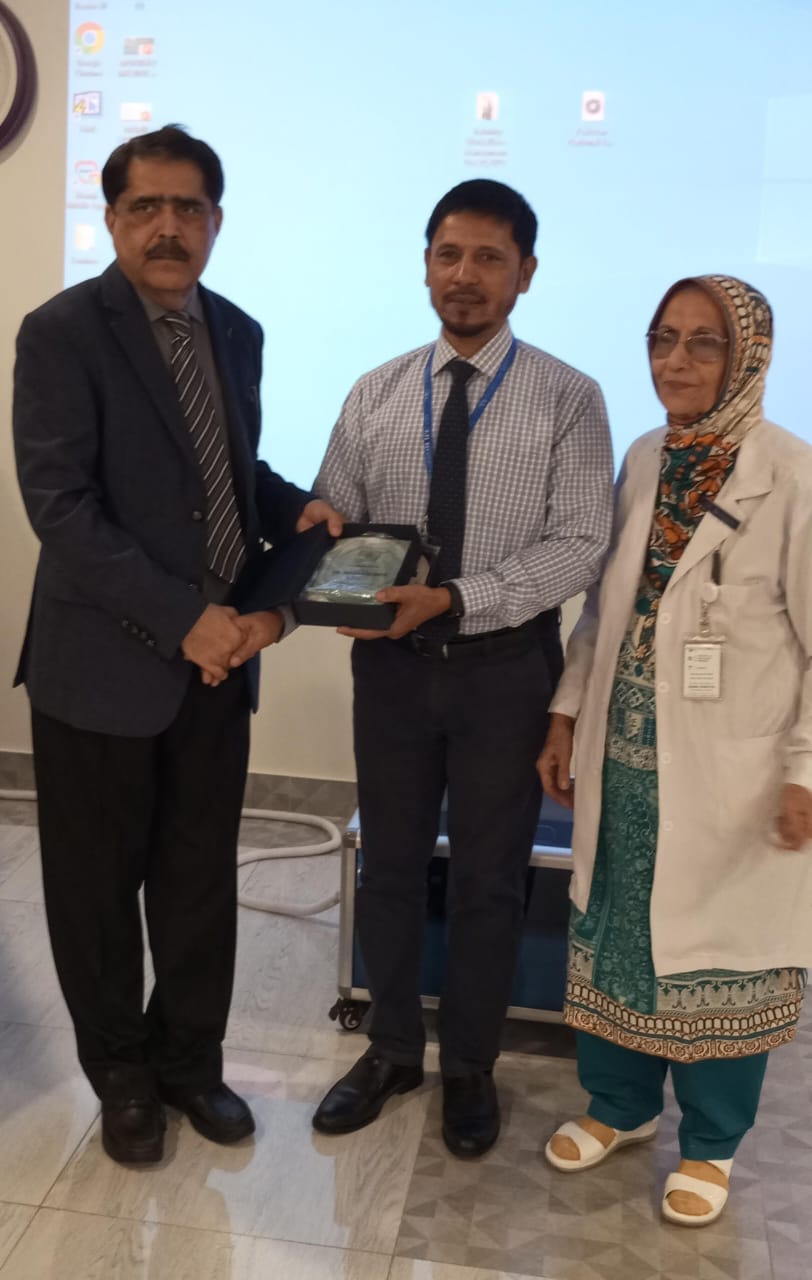 Mr. Manthar Ali Jatoi, (Consultant) awarding Souvenir to the Guest, Ms. Beenish Mansoor Ali, Assistant Manager HR, “Mamji Hospital, Karachi”.