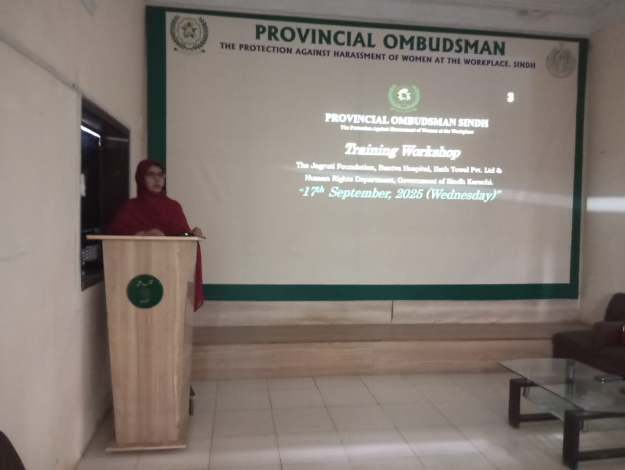Awareness and Training Workshop with "Human Rights Department, Government of Sindh, Bantva Hospital, The Jagruti Foundation, Director Education TMC Chanesar District East, Bath Towel (Pvt.) Ltd, Karachi", on 17th September, 2025.