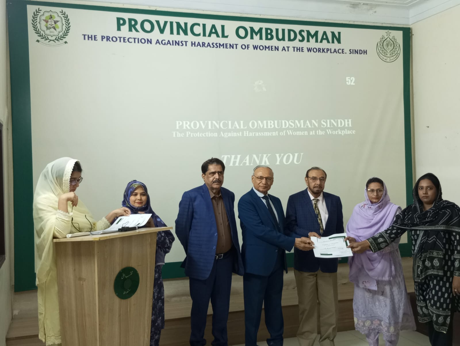 The Office of the Provincial Ombudsman for the Protection against Harassment of Women at the Workplace, Sindh organized a Seminar on