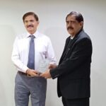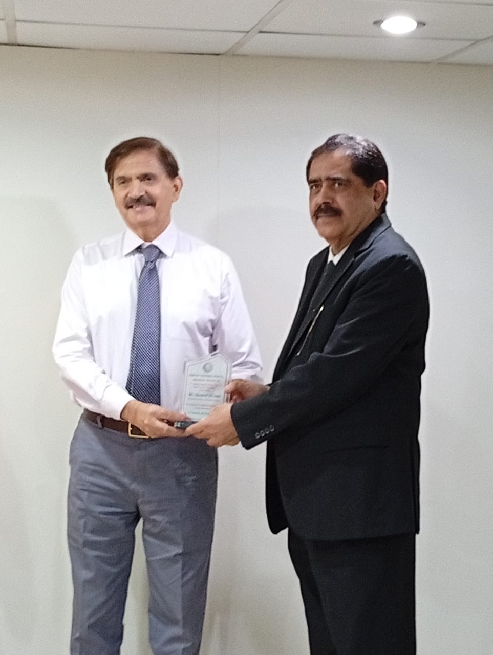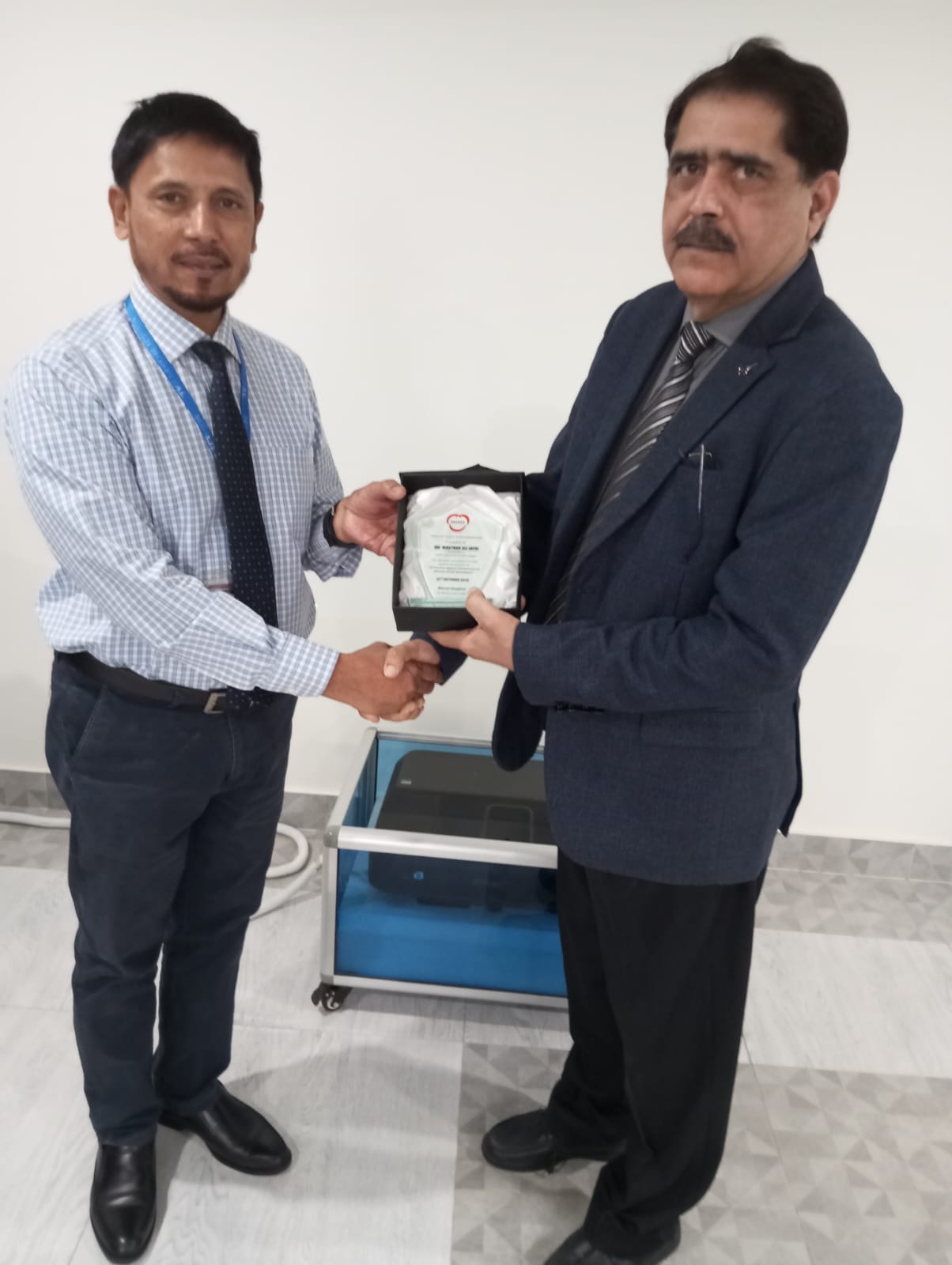 Mr. Manthar Ali Jatoi, (Consultant) presenting souvenir to the Chief Guest, Brig (R) Dr. Riaz ul Haque, Chief Executive, “Hamdard University Hospital”.